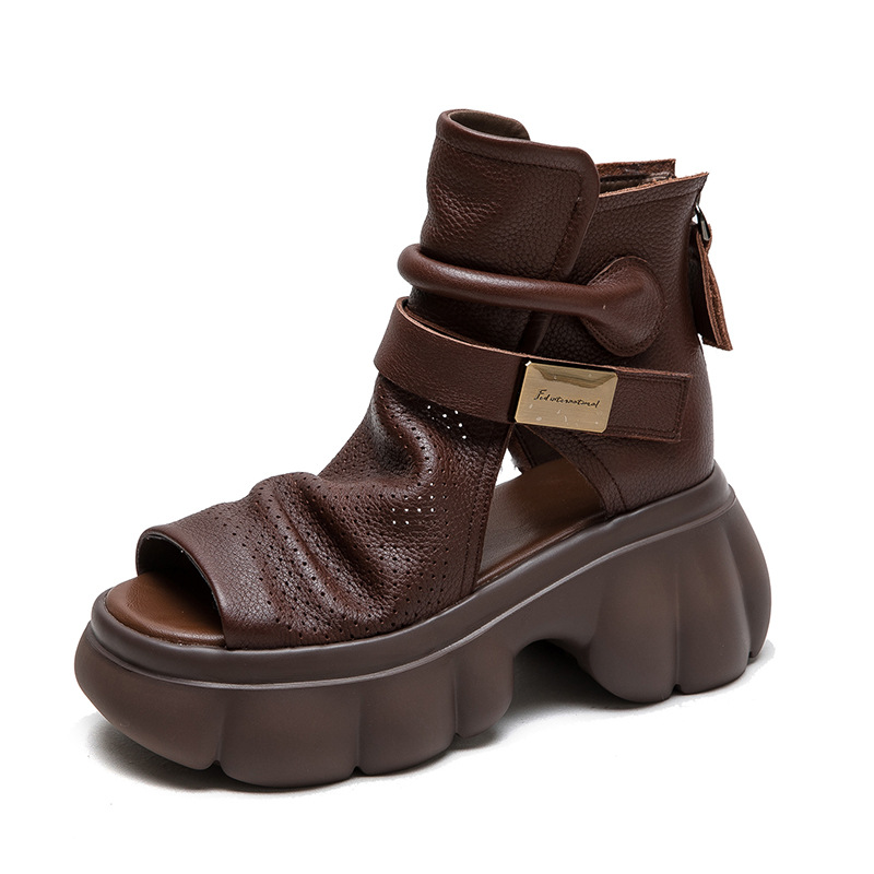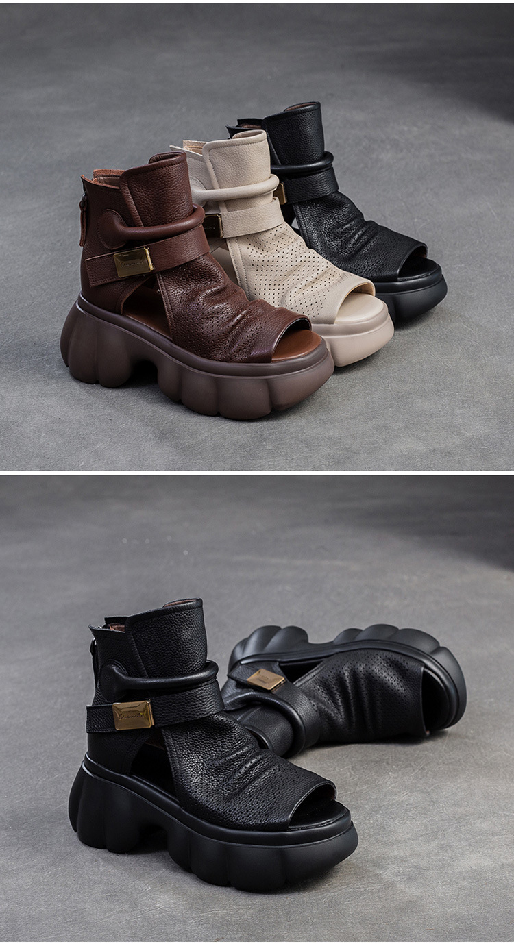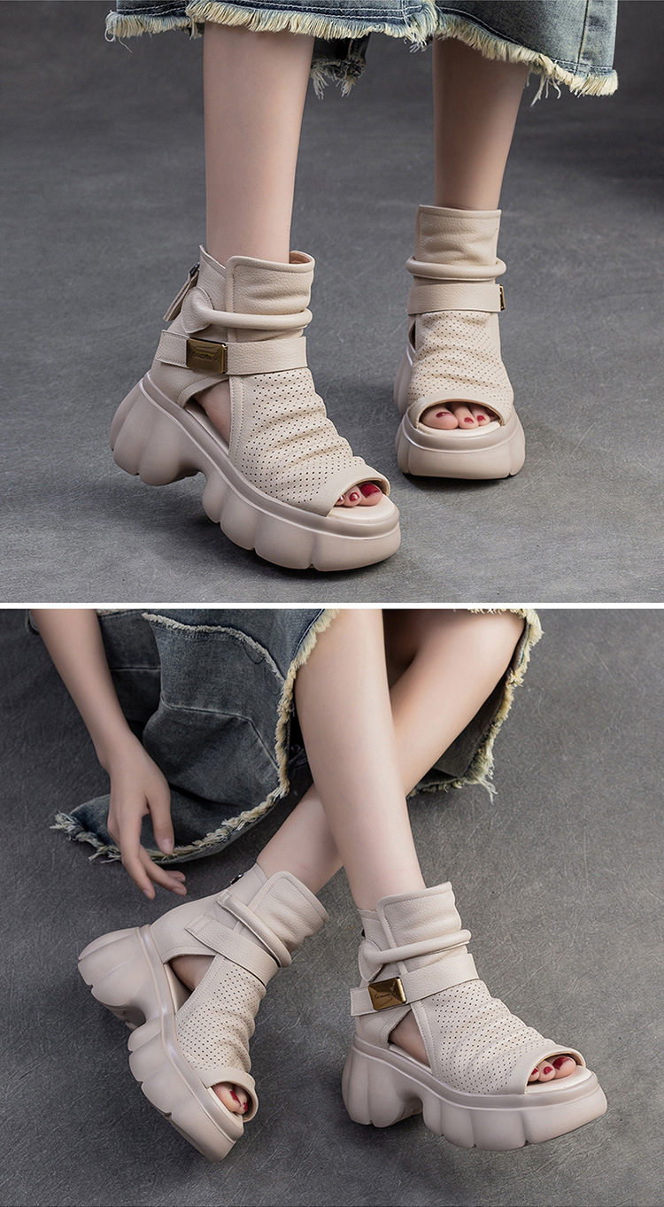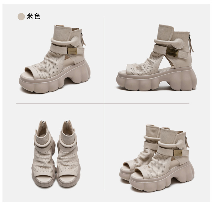 Đôi giày nữ thiết kế dáng bốt mát mẻ, phù hợp cho mùa hè. Sản phẩm có phần mũi khoét kiểu miệng cá và các lỗ thông hơi xung quanh, giúp đôi chân luôn khô ráo và dễ chịu. Kiểu dáng đơn giản, dễ dàng kết hợp với nhiều trang phục khác nhau như quần soóc hay váy ngắn. Bạn chỉ cần xỏ chân vào và đi, rất nhẹ nhàng và tiện lợi cho các hoạt động thường ngày. | Tên sản phẩm: Giày Dép Sandal Nữ Thoáng Khí Miệng Cá Hàng Mùa Hè - Giày Dép Nữ | Mã sản phẩm: B1975 - Giá: 1.620.000đ | Mã nhà sản xuất: SHDU-G05Hình ảnh sản phẩm