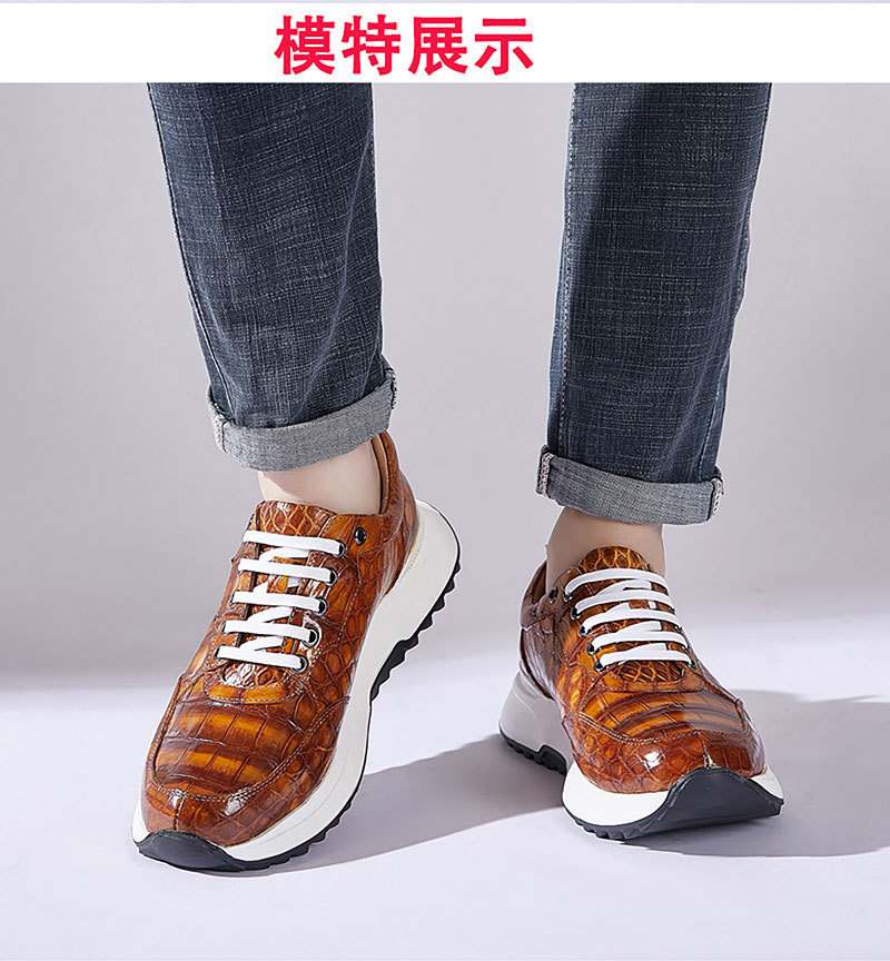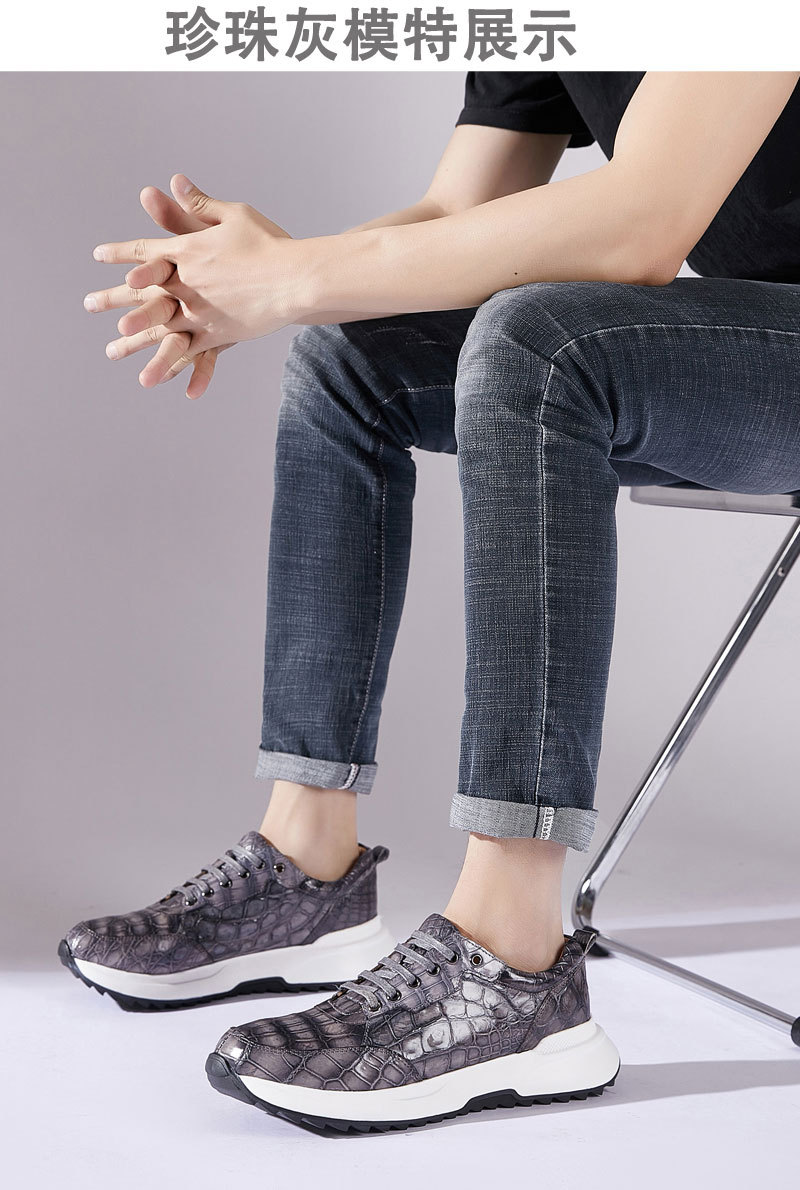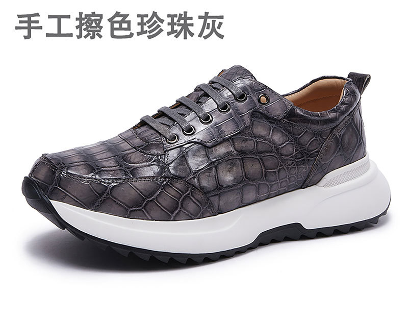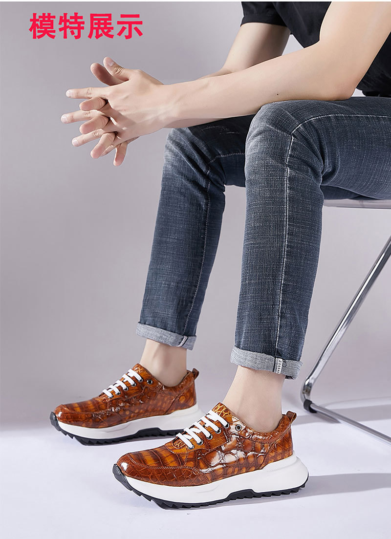 Đôi giày nam được làm hoàn toàn từ chất liệu da cá sấu tự nhiên, mang đến cảm giác mềm mại và thoải mái suốt ngày dài. Kiểu dáng thể thao phối cùng thiết kế thời trang, giúp bạn dễ dàng kết hợp với nhiều loại trang phục khác nhau. Sản phẩm phù hợp cho các hoạt động thường ngày, đi làm hay những lúc thư giãn. Chỉ cần vệ sinh nhẹ nhàng bằng khăn mềm là đôi giày sẽ luôn bền đẹp theo thời gian. | Tên sản phẩm: Giày Thể Thao Nam Chất Liệu Da Bò - Giày Dép Nam | Mã sản phẩm: L1233 - Giá: 9.990.000đ | Mã nhà sản xuất: GUDTH-G06Hình ảnh sản phẩm