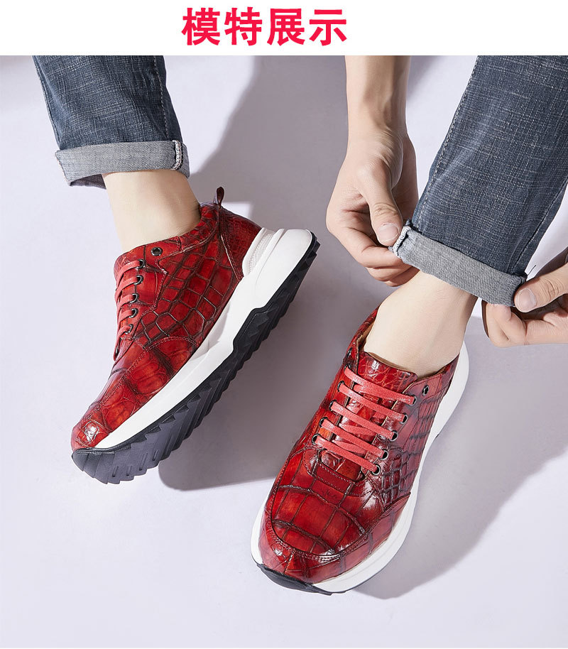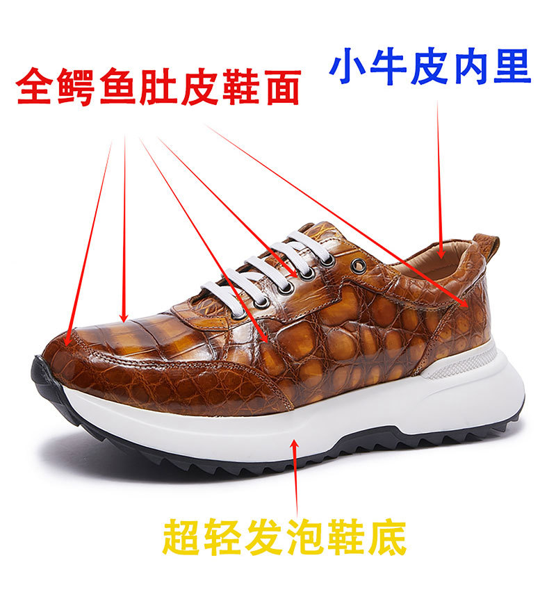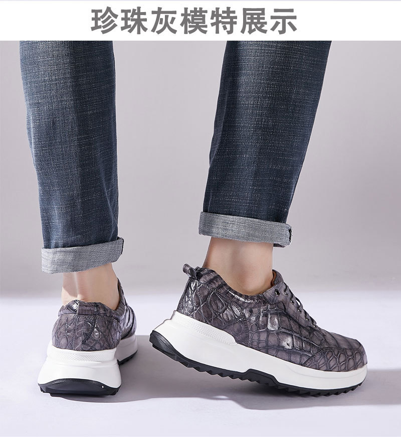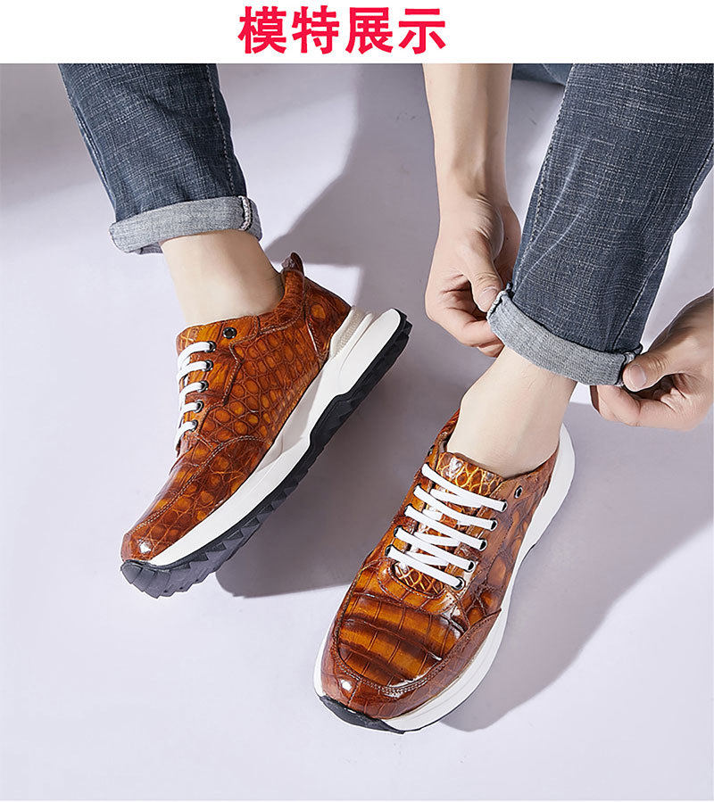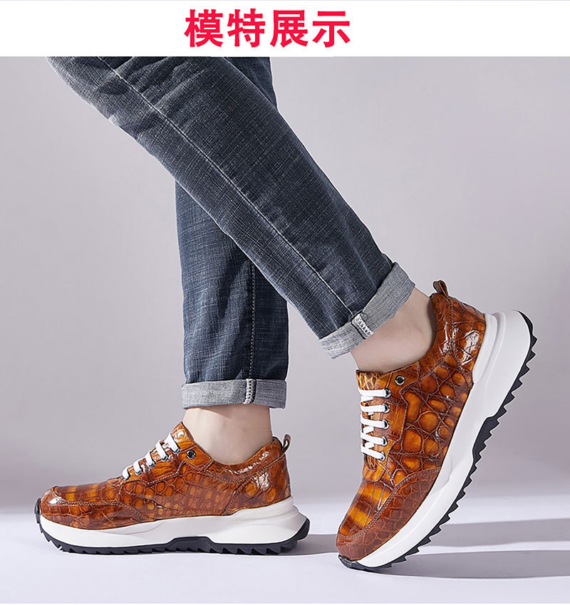 Đôi giày nam được làm hoàn toàn từ chất liệu da cá sấu tự nhiên, mang đến cảm giác mềm mại và thoải mái suốt ngày dài. Kiểu dáng thể thao phối cùng thiết kế thời trang, giúp bạn dễ dàng kết hợp với nhiều loại trang phục khác nhau. Sản phẩm phù hợp cho các hoạt động thường ngày, đi làm hay những lúc thư giãn. Chỉ cần vệ sinh nhẹ nhàng bằng khăn mềm là đôi giày sẽ luôn bền đẹp theo thời gian. | Tên sản phẩm: Giày Thể Thao Nam Chất Liệu Da Bò - Giày Dép Nam | Mã sản phẩm: L1233 - Giá: 9.990.000đ | Mã nhà sản xuất: GUDTH-G06Hình ảnh sản phẩm