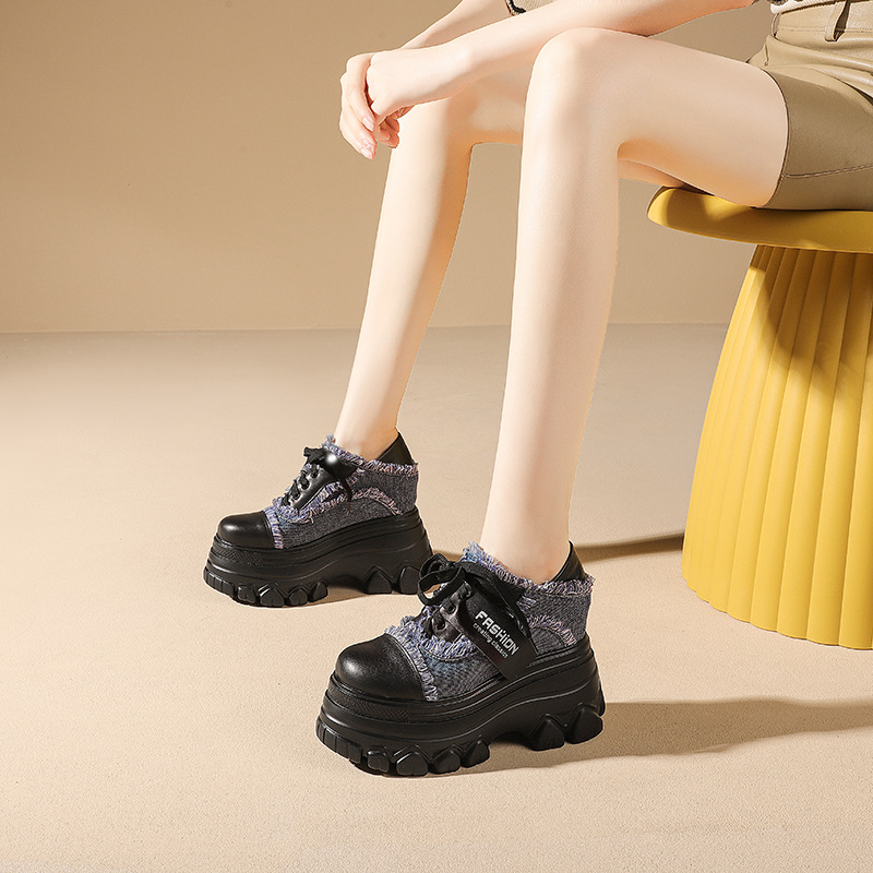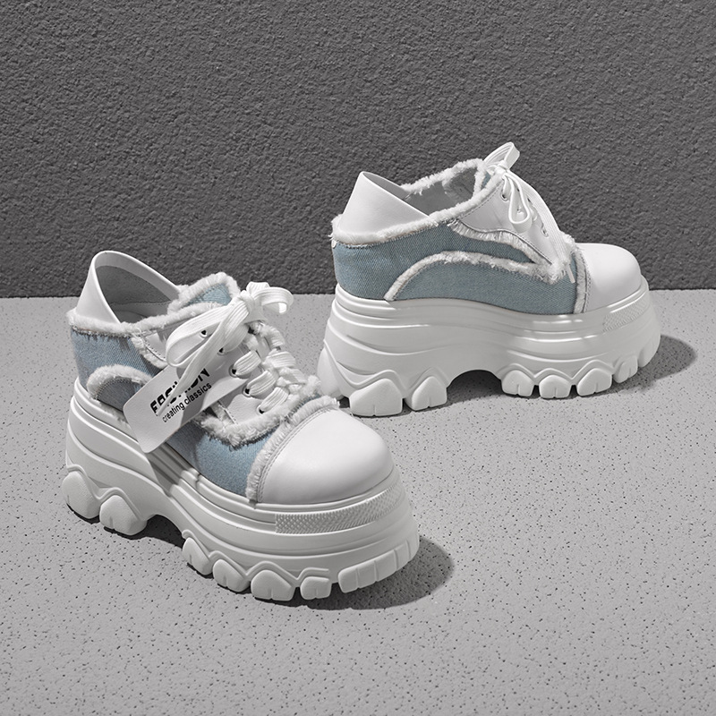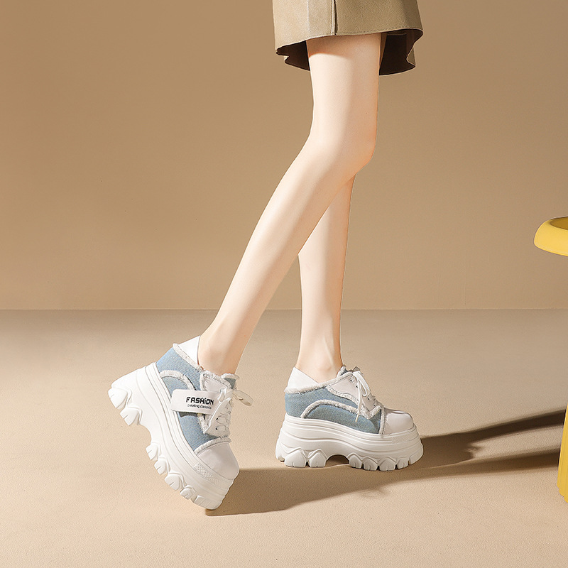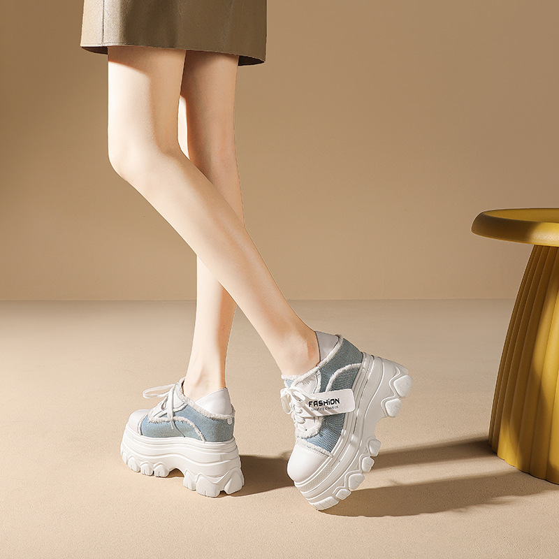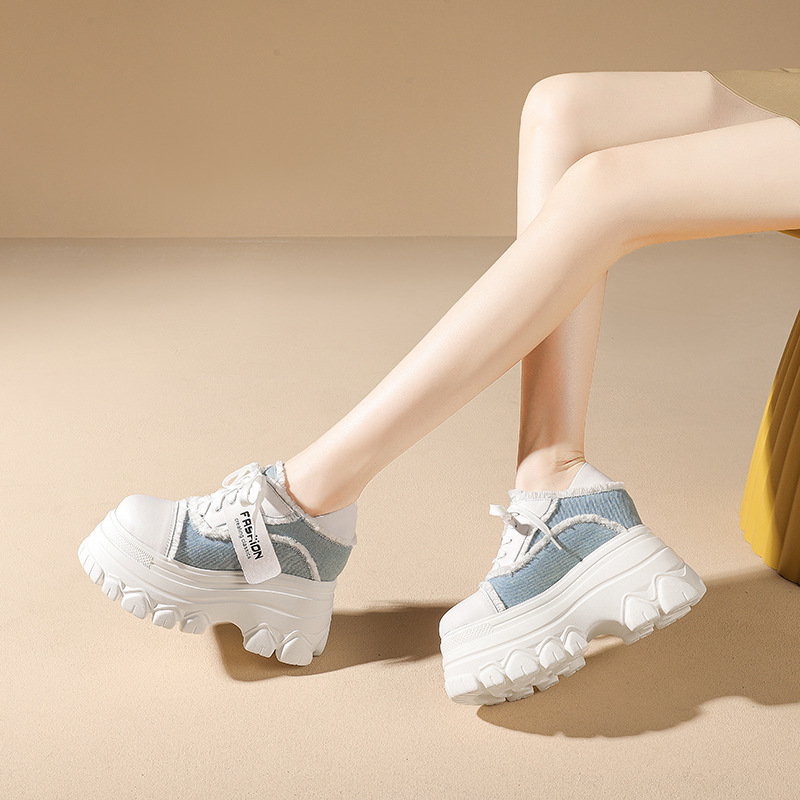 Đôi giày này có phần đế bên trong giúp tăng chiều cao lên đến 12cm, phù hợp cho những người có vóc dáng nhỏ nhắn. Kiểu dáng kết hợp giữa chất liệu vải jeans và phong cách thể thao, tạo nên vẻ ngoài năng động. Sản phẩm thích hợp để đi làm, dạo phố hay các hoạt động thường ngày. Bạn chỉ cần xỏ chân vào và điều chỉnh dây giày cho vừa vặn là có thể sử dụng ngay. | Tên sản phẩm: Giày Thể Thao Nữ Chất Liệu Jean Bò Cao 12cm Tăng Chiều Cao Hàng Mùa Xuân Thu Đông - Giày Dép Nữ | Mã sản phẩm: B4156 - Giá: 2.120.000đ | Mã nhà sản xuất: QIDNG-G05Hình ảnh sản phẩm