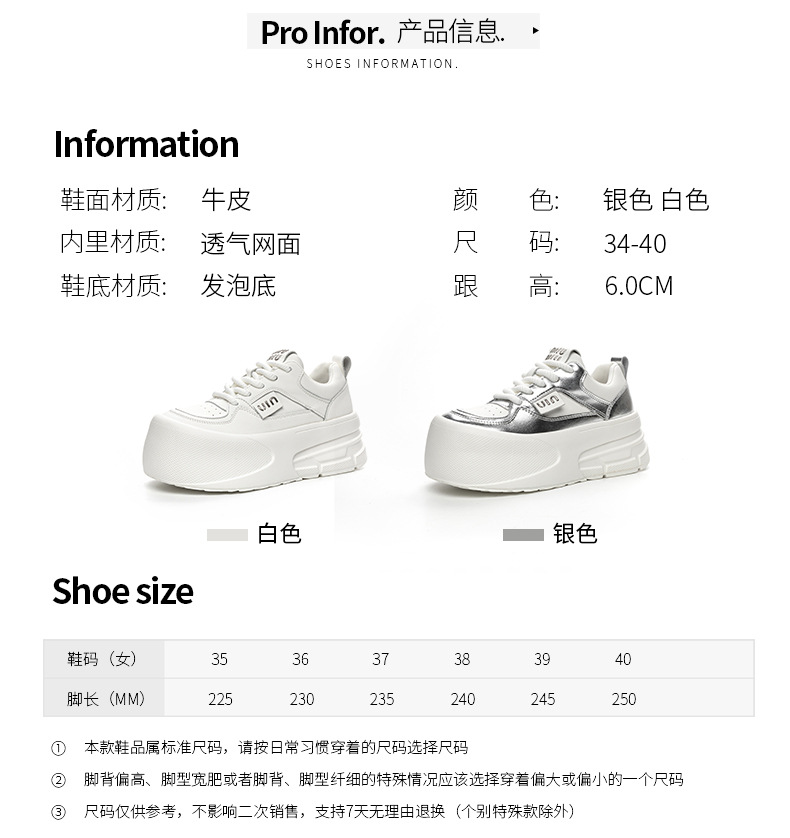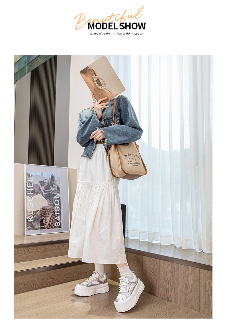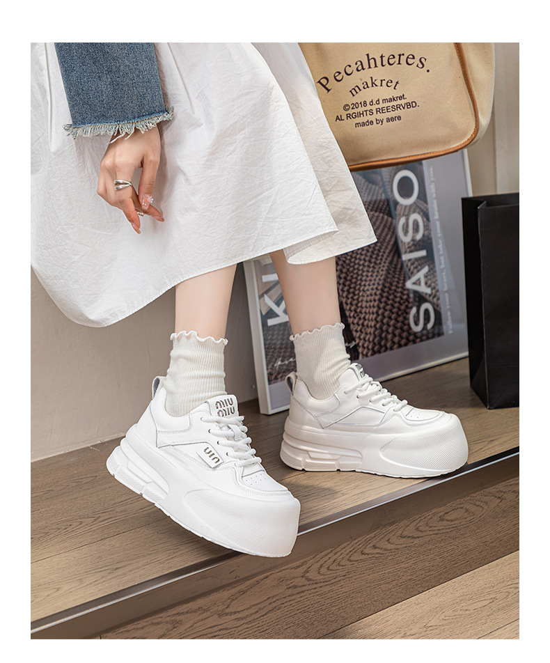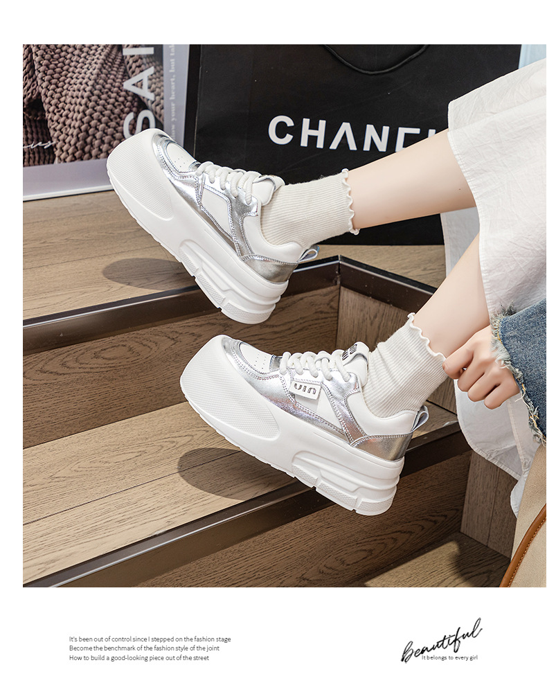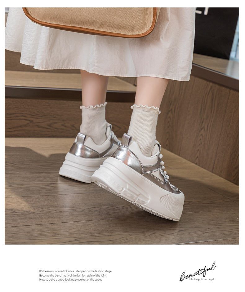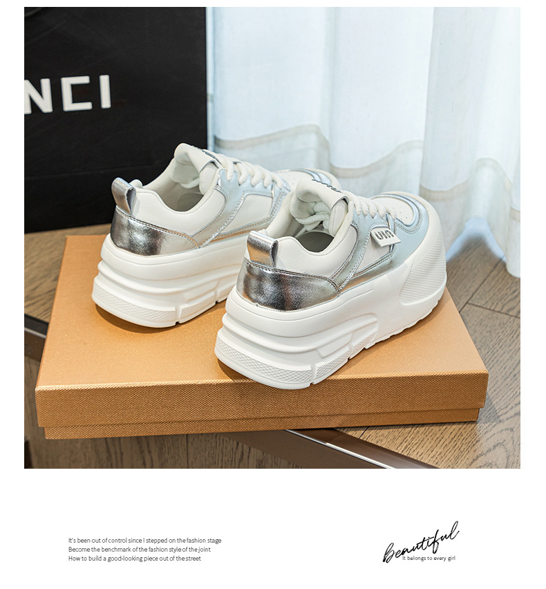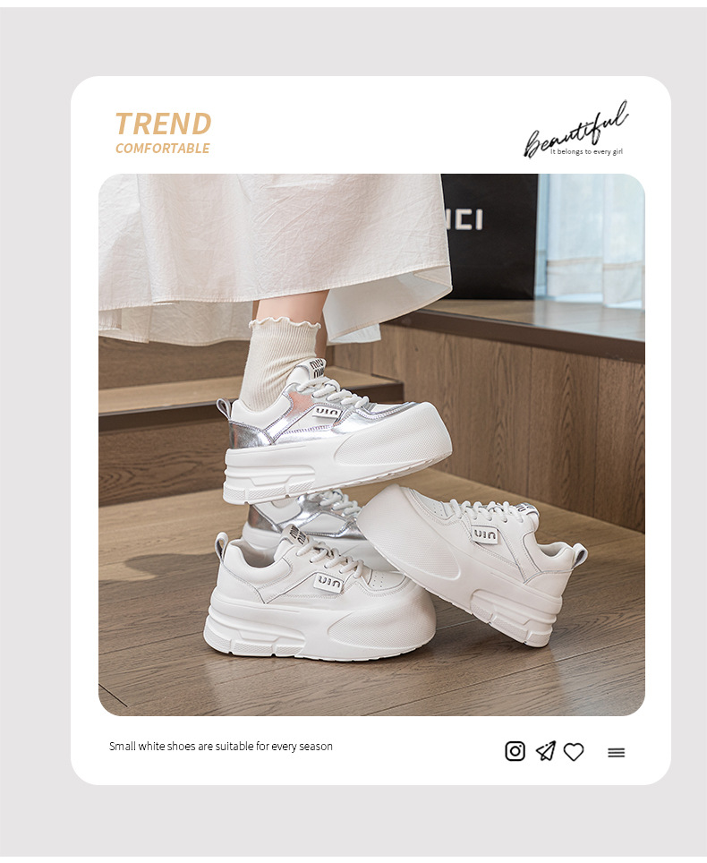 Đôi giày thể thao nữ này có đế dày vừa phải giúp tăng chiều cao một cách tự nhiên. Đế giày được làm từ chất liệu mềm mại, mang lại cảm giác dễ chịu khi di chuyển cả ngày. Kiểu dáng cơ bản màu trắng dễ dàng phối hợp với nhiều trang phục khác nhau như quần jeans, quần short hay váy. Sản phẩm phù hợp cho các hoạt động thường ngày, đi làm hay gặp gỡ bạn bè. Bạn có thể mang trực tiếp và vệ sinh bề mặt bằng khăn ẩm. | Tên sản phẩm: Giày Thể Thao Nữ Đế Mềm Tăng Chiều Cao Đế Cao Hàng Mùa Xuân Thu Đông - Giày Dép Nữ | Mã sản phẩm: K3237 - Giá: 2.000.000đ | Mã nhà sản xuất: WEDSH-G05Hình ảnh sản phẩm