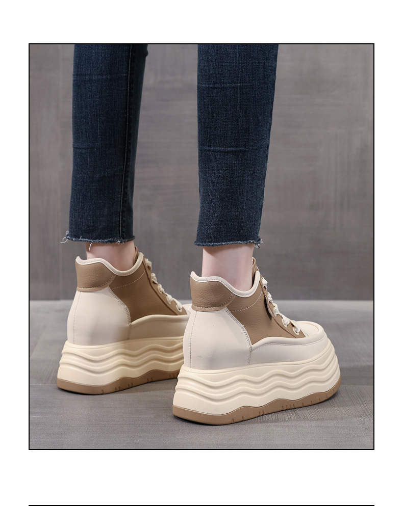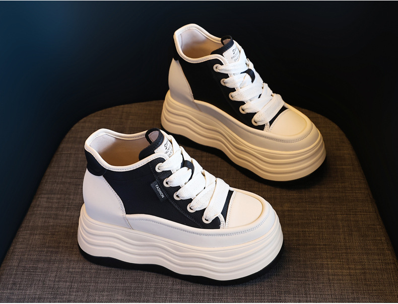 Đôi giày thể thao nữ này có phần đế dày mềm mại, tạo dáng cổ cao ôm gọn mắt cá chân. Bên trong giày được thiết kế thêm một lớp đệm nâng đỡ, giúp tăng chiều cao một cách tự nhiên và thoải mái khi di chuyển. Kiểu dáng mang phong cách cổ điển, phù hợp cho các hoạt động thường ngày. Bạn có thể dễ dàng phối cùng nhiều loại trang phục để tạo nên vẻ ngoại năng động. | Tên sản phẩm: Giày Thể Thao Nữ Đế Mềm Tăng Chiều Cao Đế Cao Hàng Mùa Xuân Thu Đông - Giày Dép Nữ | Mã sản phẩm: B1980 - Giá: 1.100.000đ | Mã nhà sản xuất: WEDS-G03Hình ảnh sản phẩm