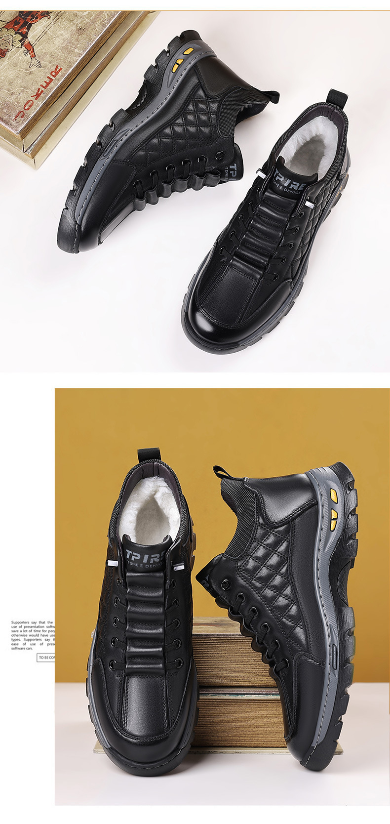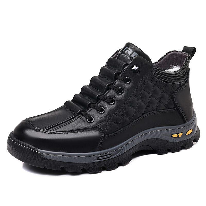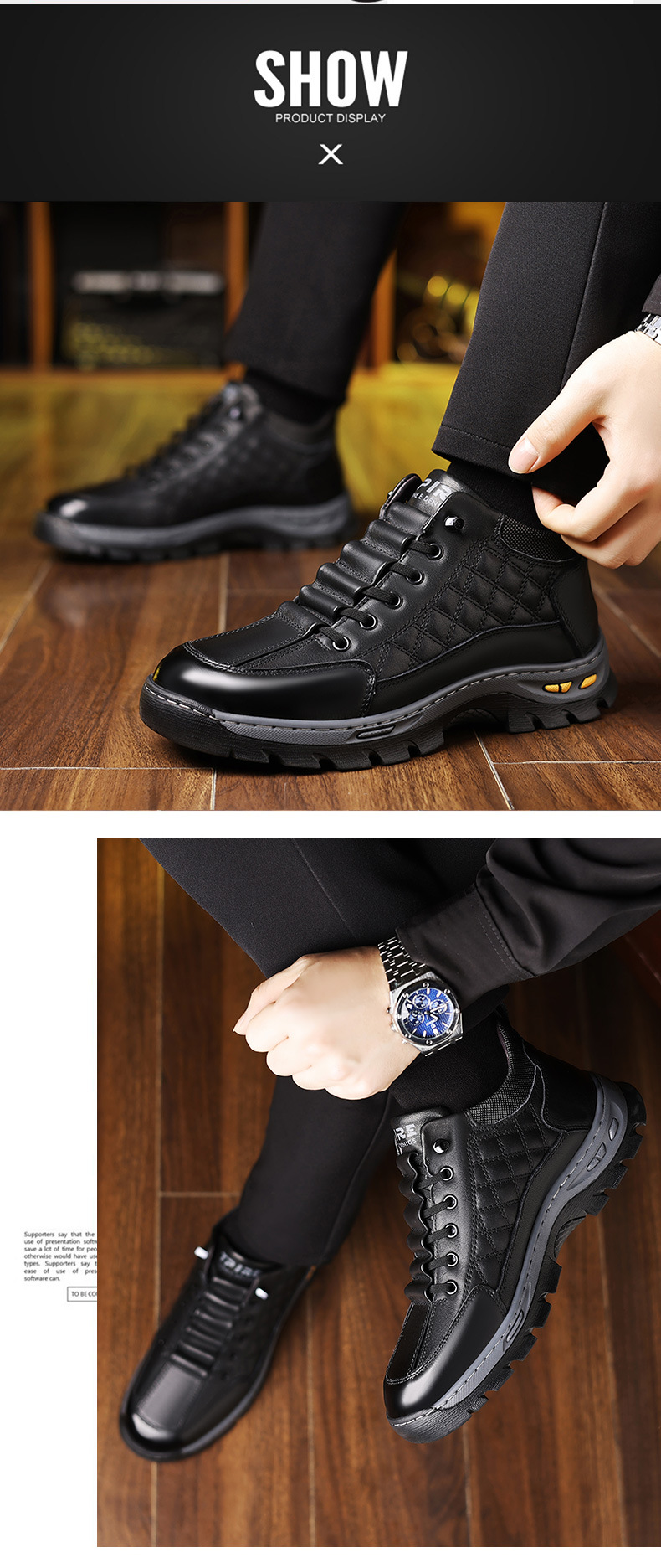 Giày ủng nam mùa đông với thiết kế cổ cao giữ ấm đôi chân tốt hơn. Sản phẩm có phần lót bên trong làm từ chất liệu mềm mại, tạo cảm giác êm ái và giữ nhiệt hiệu quả trong thời tiết lạnh. Kiểu dáng dễ mang, chỉ cần xỏ chân vào là vừa vặn, tiện lợi cho việc sử dụng hằng ngày. Phù hợp để đi dạo hoặc mặc kèm với nhiều loại trang phục trong những ngày đông giá. | Tên sản phẩm: Giày Thể Thao Tăng Chiều Cao Nam Chất Liệu Vải Bông Dày Ấm Hàng Mùa Xuân Thu Đông - Giày Dép Nam | Mã sản phẩm: B3471 - Giá: 1.020.000đ | Mã nhà sản xuất: WEDS-G03Hình ảnh sản phẩm