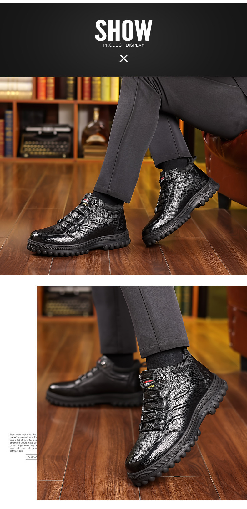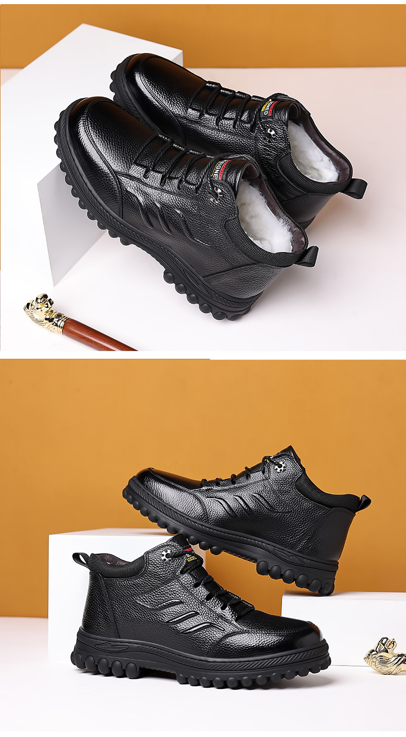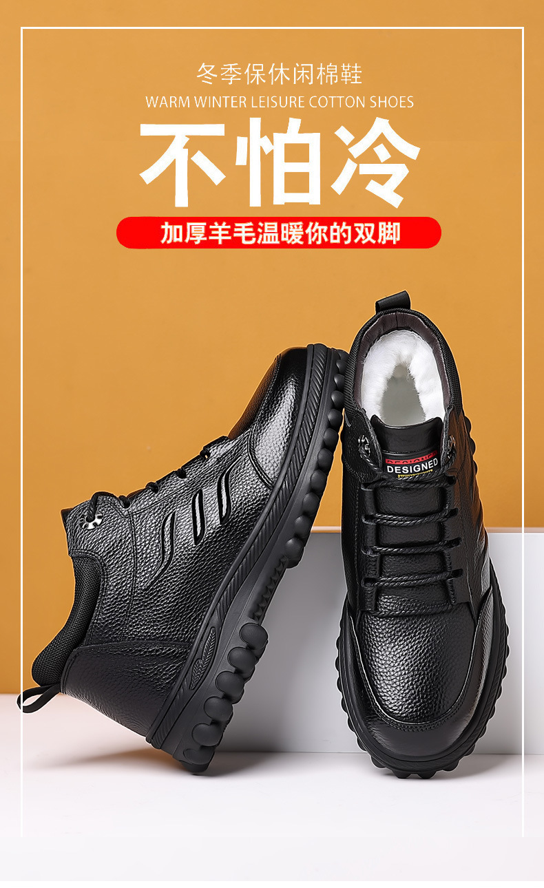 Giày nam mùa lạnh có thiết kế cổ cao, giúp giữ ấm đôi chân tốt hơn. Bên trong giày được lót một lớp lông mềm và dày, kết hợp cùng chất liệu da thật bền bỉ bên ngoài, tạo cảm giác êm ái và ấm áp. Đế giày có khả năng chống trượt, phù hợp để đi trong những ngày có thời tiết lạnh hoặc trên những bề mặt trơn. Sản phẩm dễ dàng mang vào và tháo ra, tiện lợi cho việc sử dụng hằng ngày. | Tên sản phẩm: Giày Thể Thao Tăng Chiều Cao Nam Chất Liệu Vải Bông Ma Sát Chống Trượt Dày Ấm Hàng Mùa Xuân Thu Đông - Giày Dép Nam | Mã sản phẩm: B3451 - Giá: 1.020.000đ | Mã nhà sản xuất: WEDS-G03Hình ảnh sản phẩm