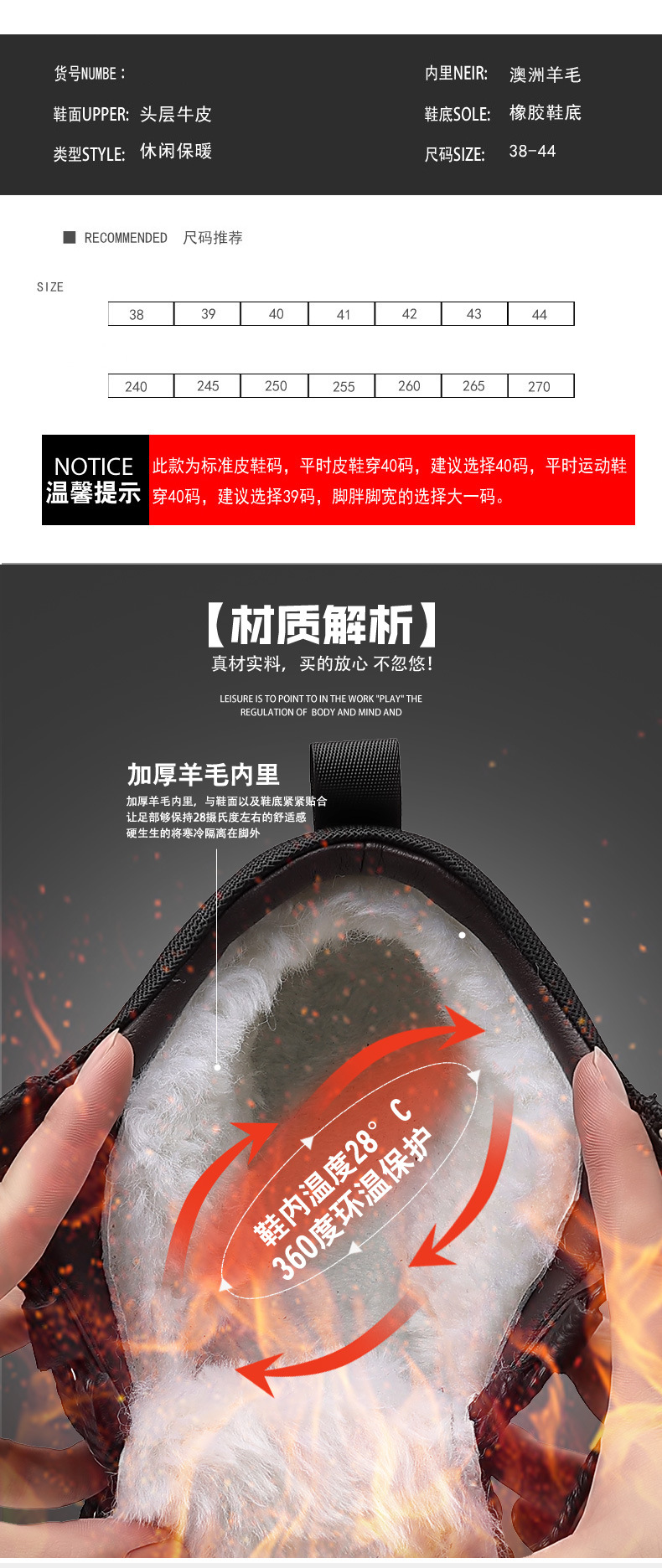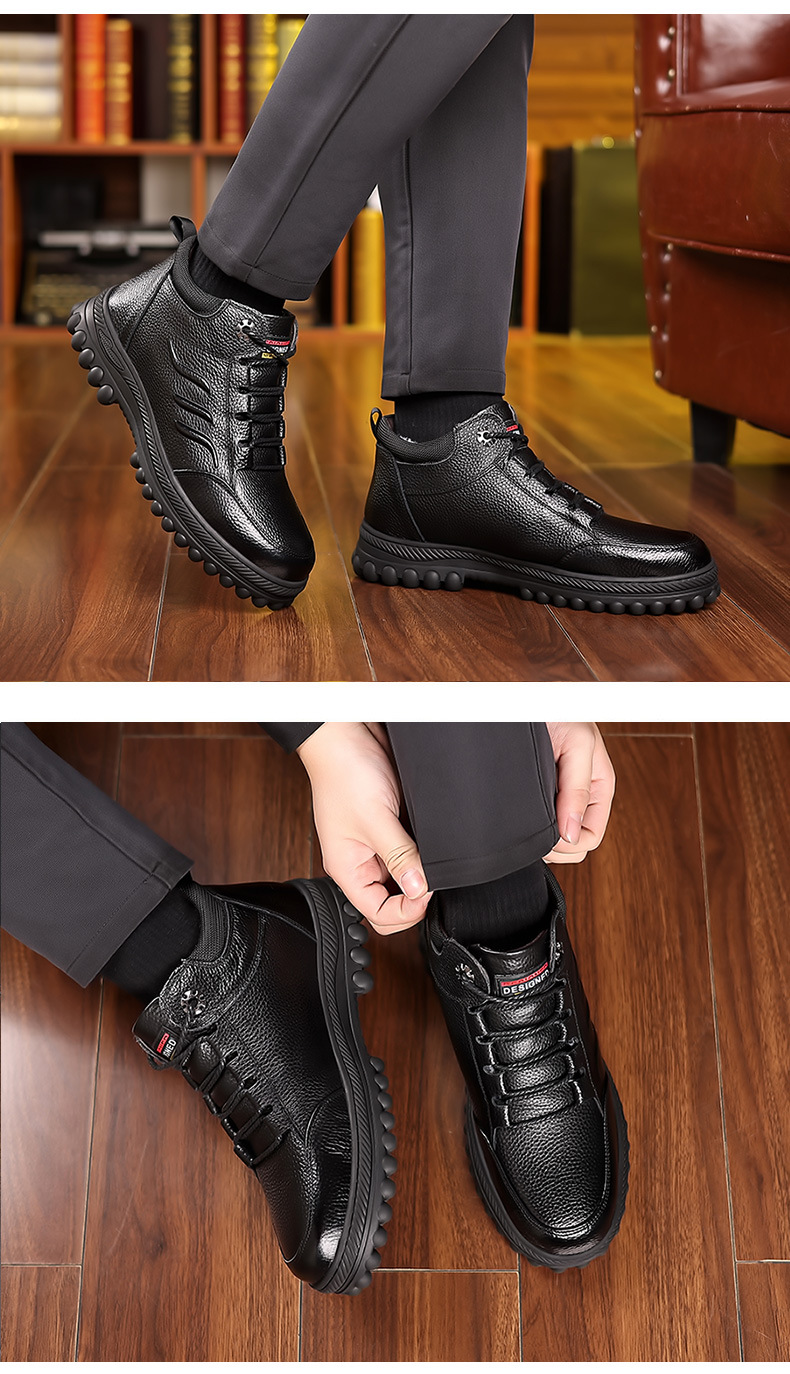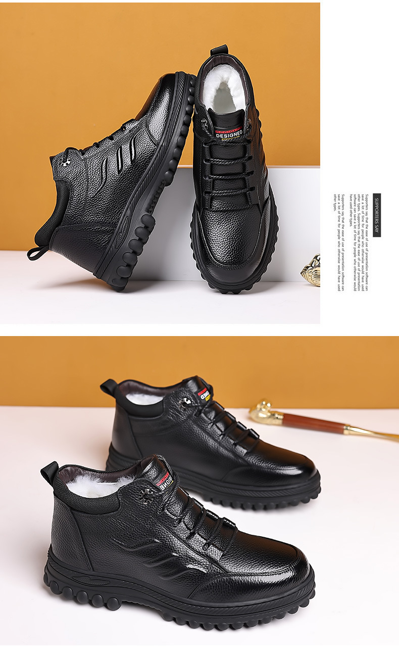 Giày nam mùa lạnh có thiết kế cổ cao, giúp giữ ấm đôi chân tốt hơn. Bên trong giày được lót một lớp lông mềm và dày, kết hợp cùng chất liệu da thật bền bỉ bên ngoài, tạo cảm giác êm ái và ấm áp. Đế giày có khả năng chống trượt, phù hợp để đi trong những ngày có thời tiết lạnh hoặc trên những bề mặt trơn. Sản phẩm dễ dàng mang vào và tháo ra, tiện lợi cho việc sử dụng hằng ngày. | Tên sản phẩm: Giày Thể Thao Tăng Chiều Cao Nam Chất Liệu Vải Bông Ma Sát Chống Trượt Dày Ấm Hàng Mùa Xuân Thu Đông - Giày Dép Nam | Mã sản phẩm: B3451 - Giá: 1.020.000đ | Mã nhà sản xuất: WEDS-G03Hình ảnh sản phẩm