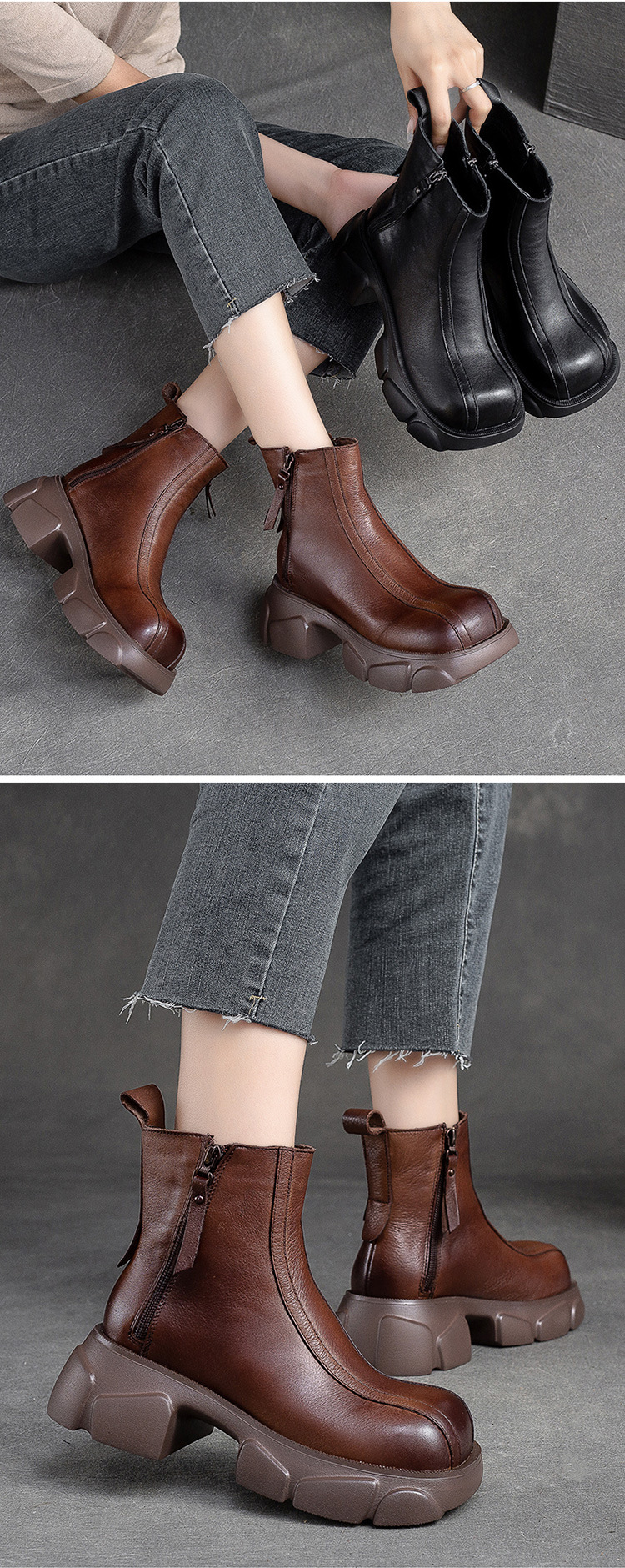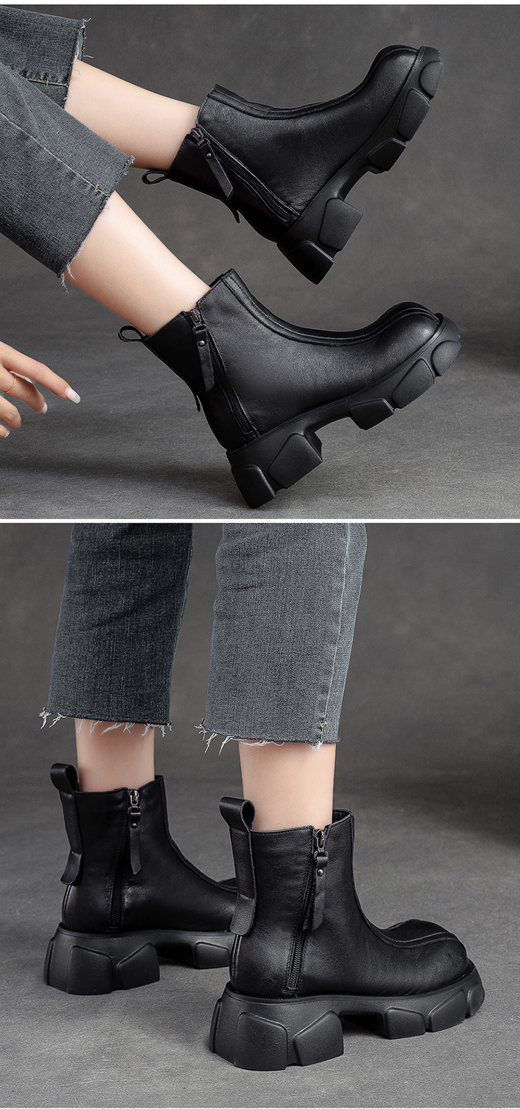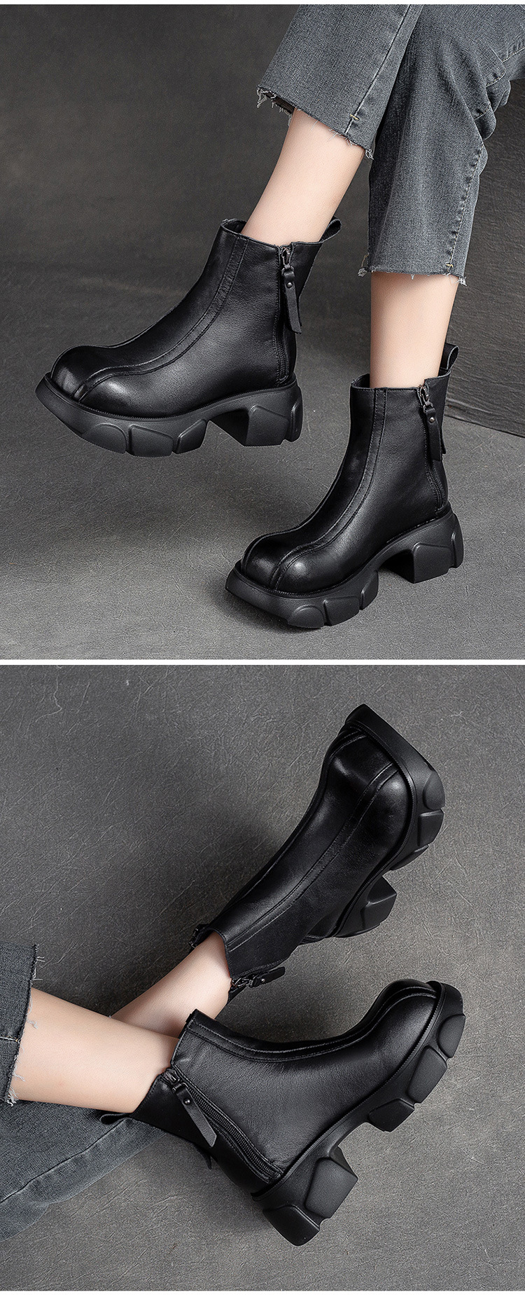 Giày bốt nữ thiết kế cổ điển với phần đế dày mang đến sự thoải mái và vững chãi. Sản phẩm có phong cách đơn giản, dễ dàng phối hợp với nhiều trang phục khác nhau. Điểm nhấn là đường kéo khóa bên tiện lợi, giúp bạn mang vào và tháo ra một cách dễ dàng. Chất liệu từ da bò tự nhiên cho độ bền đẹp theo thời gian. Phù hợp để sử dụng trong những ngày thời tiết mát mẻ. | Tên sản phẩm: Giày Thể Thao Tăng Chiều Cao Nữ Chất Liệu Da Bò Đế Cao Hàng Mùa Xuân Thu Đông Phục Cổ Cổ Điển - Giày Dép Nữ | Mã sản phẩm: B2577 - Giá: 2.670.000đ | Mã nhà sản xuất: SHNTEZ-G06Hình ảnh sản phẩm