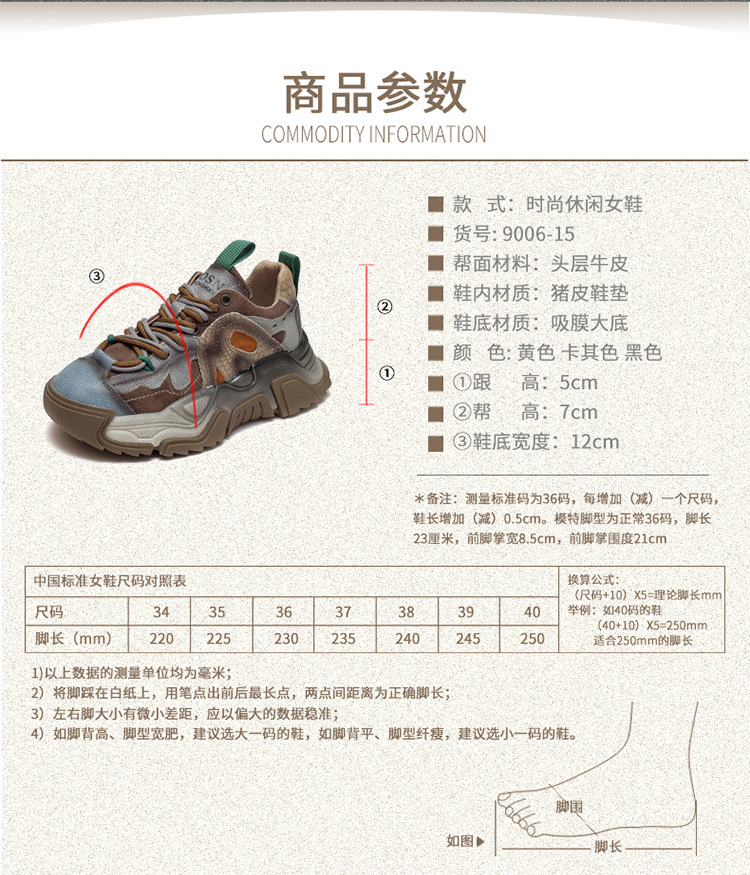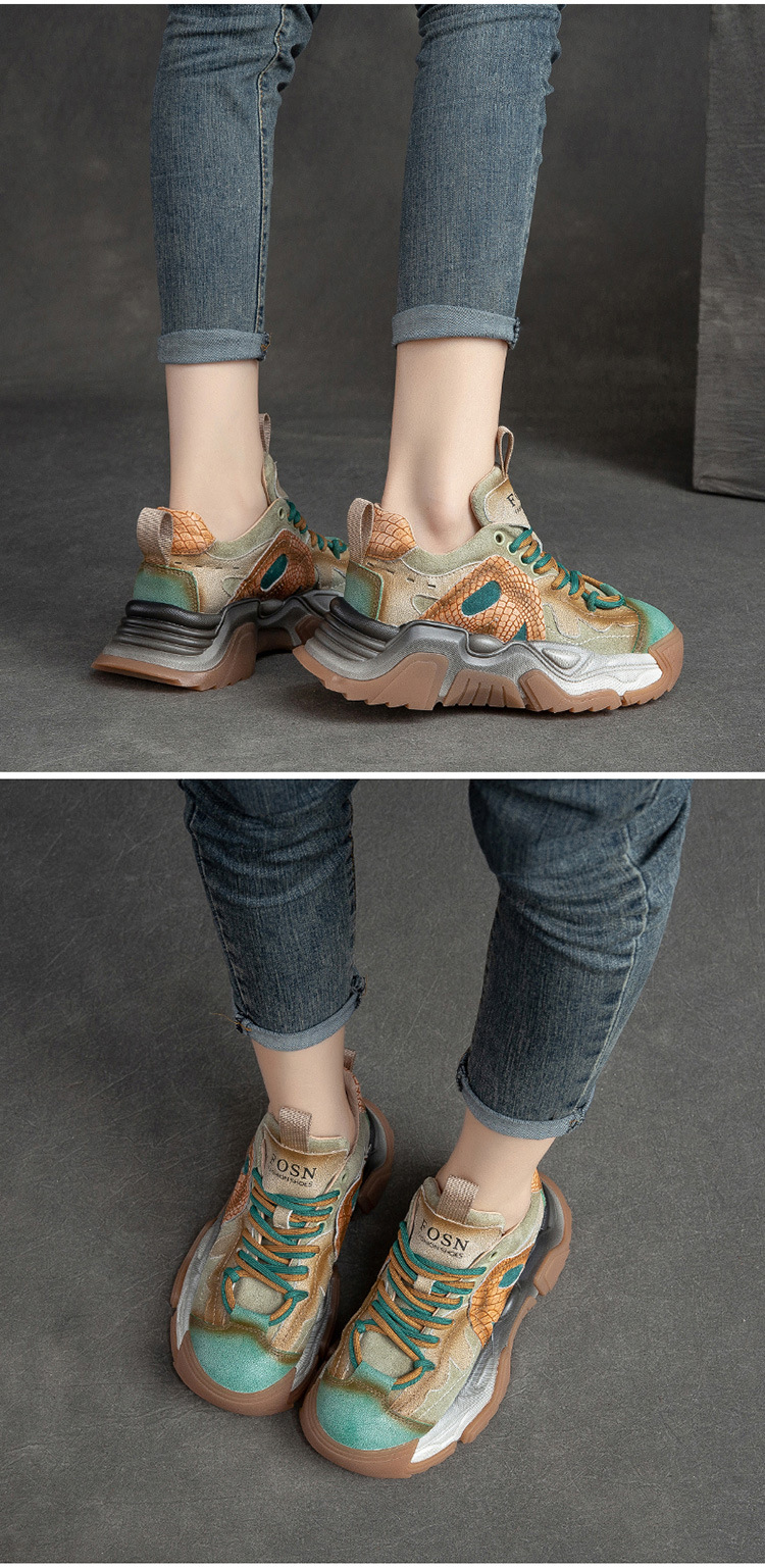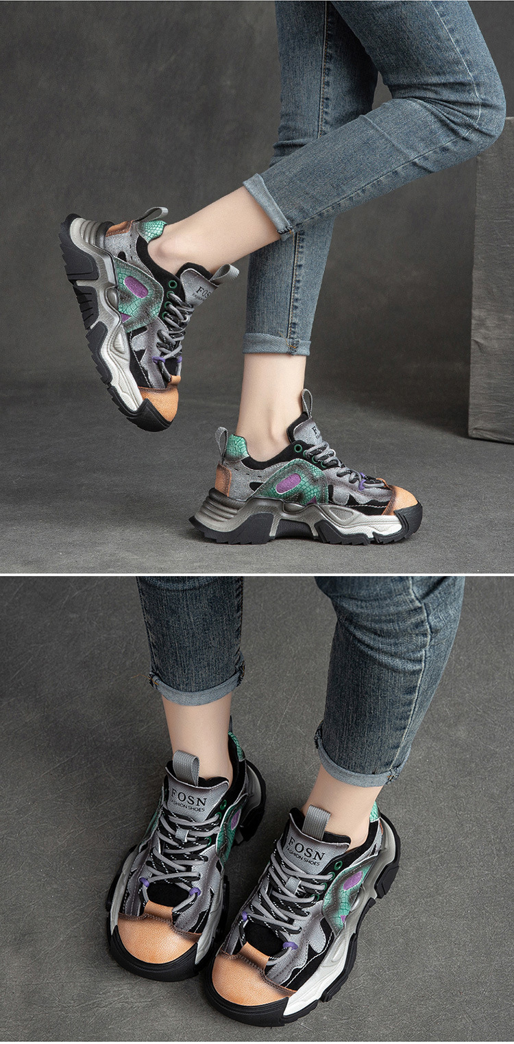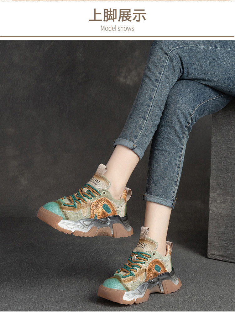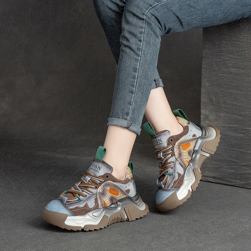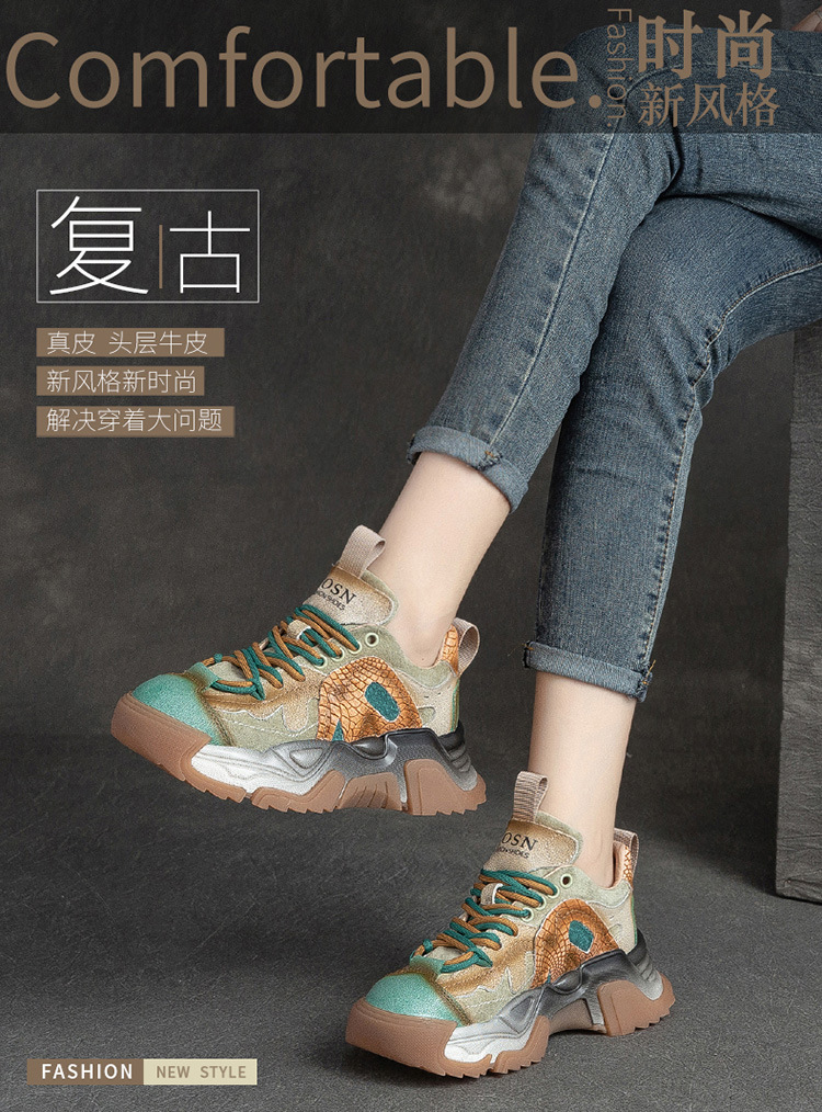 Giày sử dụng chất liệu da bò mềm mại, tạo cảm giác thoải mái khi mang. Phong cách cổ điển kết hợp nhiều màu sắc trên thân giày, mang đến vẻ ngoài năng động. Đế giày được thiết kế có độ dày vừa phải, giúp nâng đỡ bàn chân tốt. Sản phẩm phù hợp để phối cùng nhiều loại trang phục khác nhau khi đi làm, đi chơi hoặc dạo phố. Cách sử dụng đơn giản, chỉ cần xỏ chân vào và điều chỉnh dây giày cho vừa vặn. | Tên sản phẩm: Giày Thể Thao Tăng Chiều Cao Nữ Chất Liệu Da Bò Đế Cao Phục Cổ Cổ Điển - Giày Dép Nữ | Mã sản phẩm: H5919 - Giá: 2.390.000đ | Mã nhà sản xuất: SHNTEZ-G05Hình ảnh sản phẩm