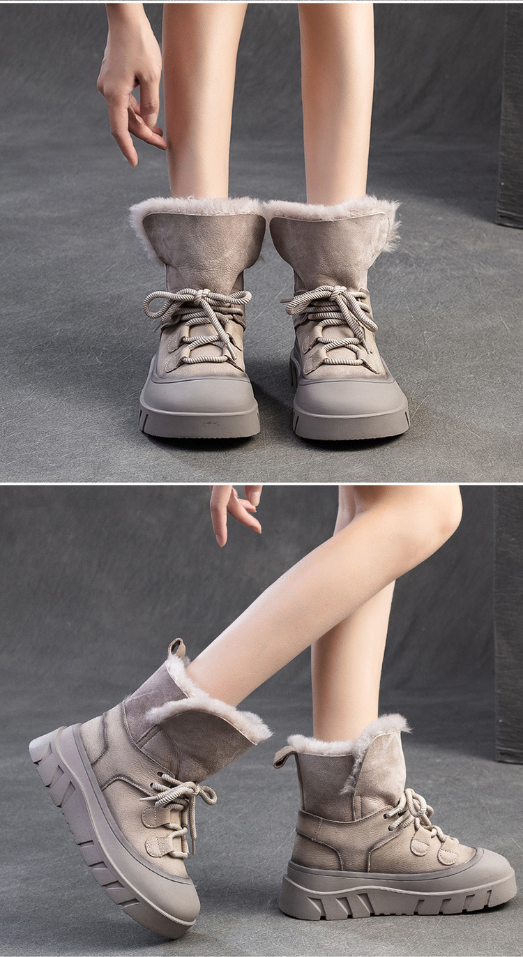 Giày bốt mùa đông mới với chất liệu len và da thật ấm áp, giúp giữ nhiệt tốt cho đôi chân trong tiết trời lạnh. Thiết kế đế dày thoải mái, kiểu dáng năng động phù hợp cho các hoạt động hằng ngày. Sản phẩm dễ dàng phối cùng nhiều trang phục như quần jeans hay váy liền. Chỉ cần mang vào và kéo khóa nhẹ nhàng là đã sẵn sàng ra ngoài. | Tên sản phẩm: Giày Thể Thao Tăng Chiều Cao Nữ Đế Cao Hàng Mùa Xuân Thu Đông - Giày Dép Nữ | Mã sản phẩm: B2198 - Giá: 2.190.000đ | Mã nhà sản xuất: SHDU-G05Hình ảnh sản phẩm