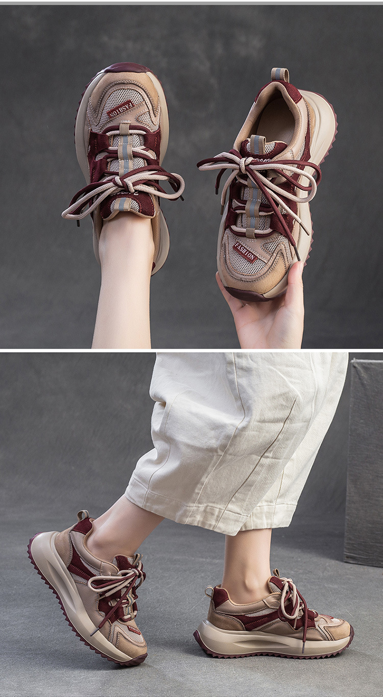 Giày nữ thiết kế dáng cổ điển lấy cảm hứng từ phong cách châu Âu. Sản phẩm có phần đế dày thoải mái, kết hợp chất liệu vải lưới và các mảng màu đan xen tạo điểm nhấn. Phần cổ giày được buộc dây phía trước giúp ôm chân và điều chỉnh dễ dàng. Kiểu dáng phù hợp để đi dạo, gặp gỡ bạn bè hay phối cùng nhiều loại trang phục khác nhau trong đời thường. | Tên sản phẩm: Giày Thể Thao Tăng Chiều Cao Nữ Đế Cao Hàng Mùa Xuân Thu Đông Phục Cổ Cổ Điển - Giày Dép Nữ | Mã sản phẩm: B2460 - Giá: 1.420.000đ | Mã nhà sản xuất: SHDU-G04Hình ảnh sản phẩm