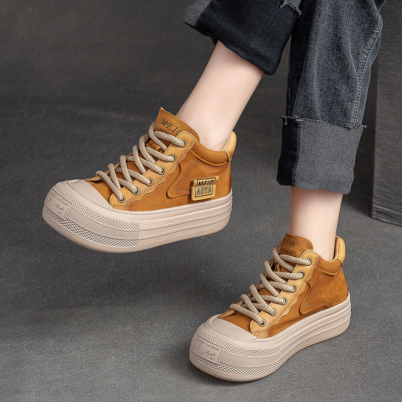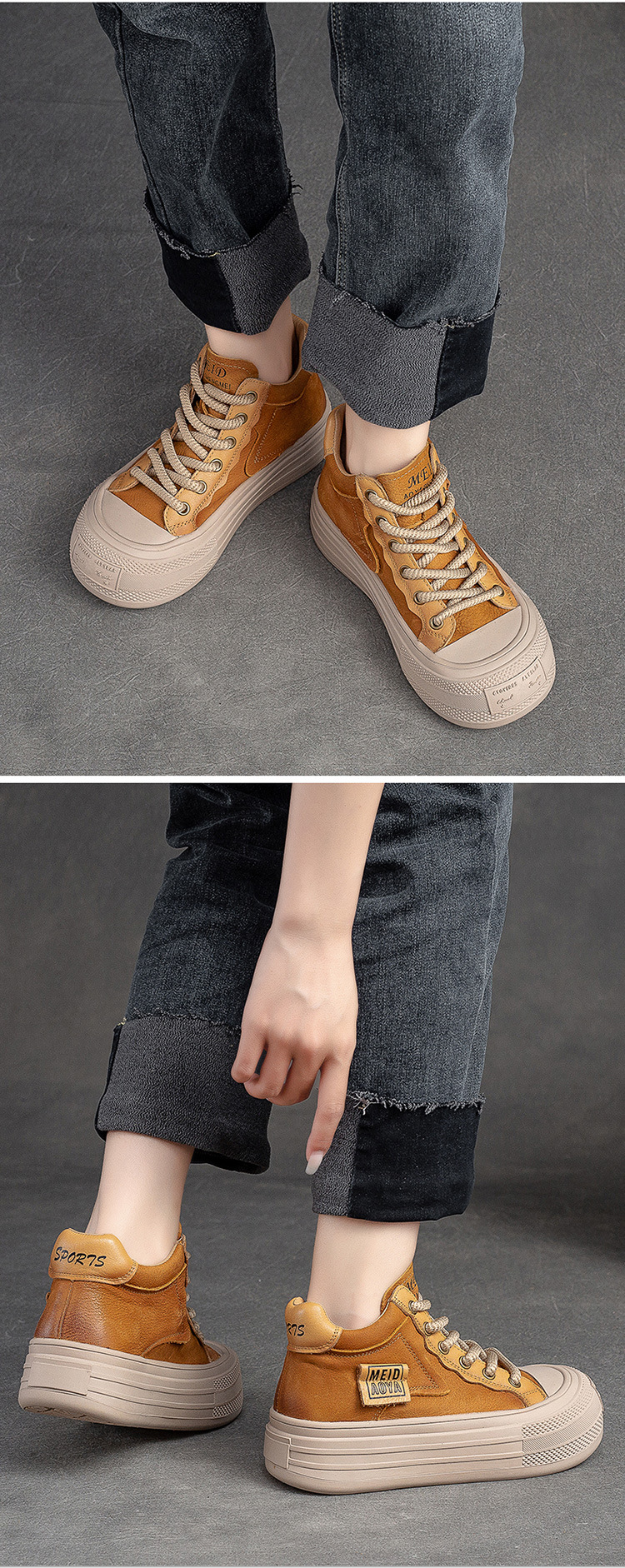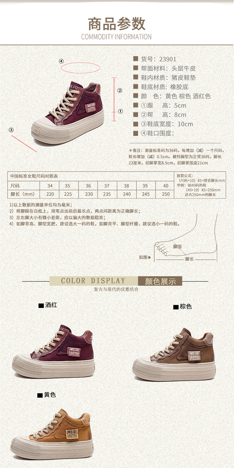 Giày nữ thiết kế đầu tròn, đế dày giúp tăng chiều cao nhẹ nhàng, phù hợp cho những bạn gái có dáng người nhỏ. Mẫu giày sử dụng dây buộc phía trước, kiểu dáng đơn giản, dễ phối đồ với nhiều trang phục khác nhau. Sản phẩm mang phong cách thoải mái, hợp thời trang, dùng tốt cho các dịp đi chơi, giao lưu bạn bè hoặc sinh hoạt hằng ngày. Cách dùng rất đơn giản, chỉ cần buộc dây vừa vặn với chân là có thể mang được. | Tên sản phẩm: Giày Thể Thao Tăng Chiều Cao Nữ Mũi Tròn Tăng Chiều Cao Đế Cao Hàng Mùa Xuân Thu Đông - Giày Dép Nữ | Mã sản phẩm: B2347 - Giá: 1.520.000đ | Mã nhà sản xuất: SHDU-G04Hình ảnh sản phẩm