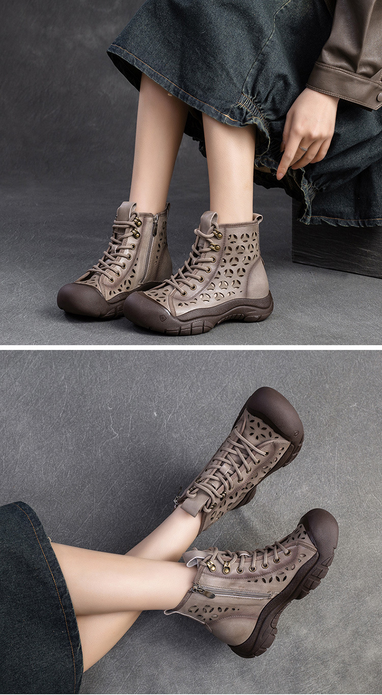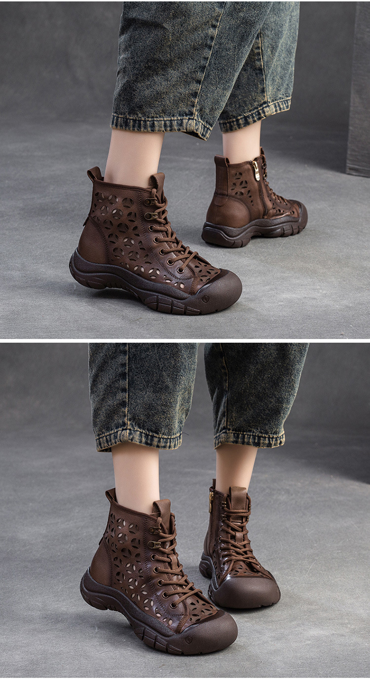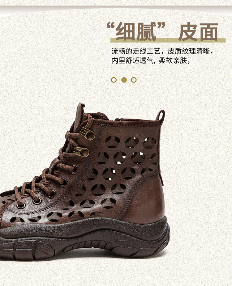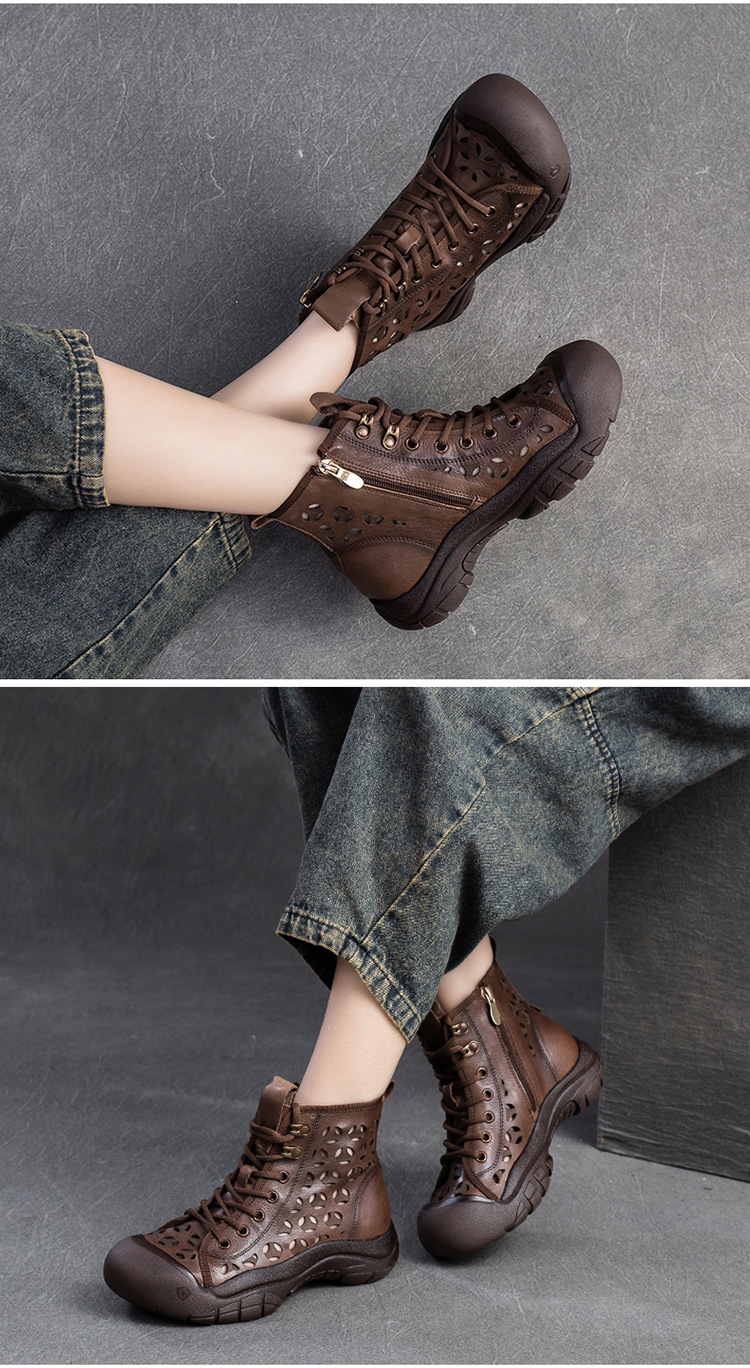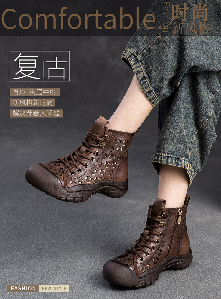 Giày bốt thời trang nữ, lấy cảm hứng từ phong cách La Mã cổ điển. Sản phẩm có phần đế dày thoải mái và thiết kế khoét lỗ tinh tế, giúp đôi chân luôn thông thoáng, phù hợp cho những ngày thời tiết ấm áp. Kiểu dáng cổ cao ôm vừa vặn, mang đến vẻ ngoại năng động và cá tính. Bạn có thể dễ dàng phối cùng quần short, váy hoặc quần jeans để tạo điểm nhấn riêng. | Tên sản phẩm: Giày Thể Thao Tăng Chiều Cao Nữ Thoáng Khí Đế Cao Hàng Mùa Xuân Thu Đông Phục Cổ Cổ Điển - Giày Dép Nữ | Mã sản phẩm: B1844 - Giá: 1.520.000đ | Mã nhà sản xuất: SHDU-G04Hình ảnh sản phẩm