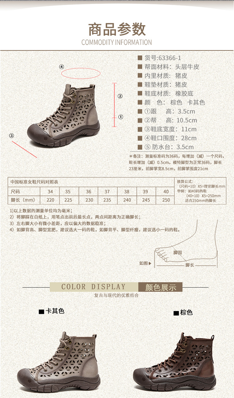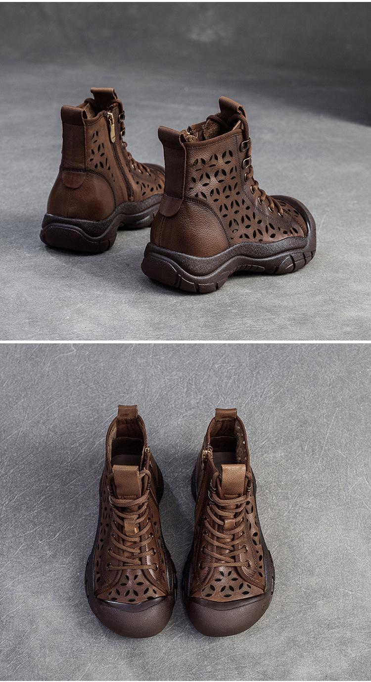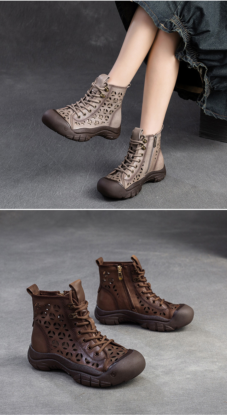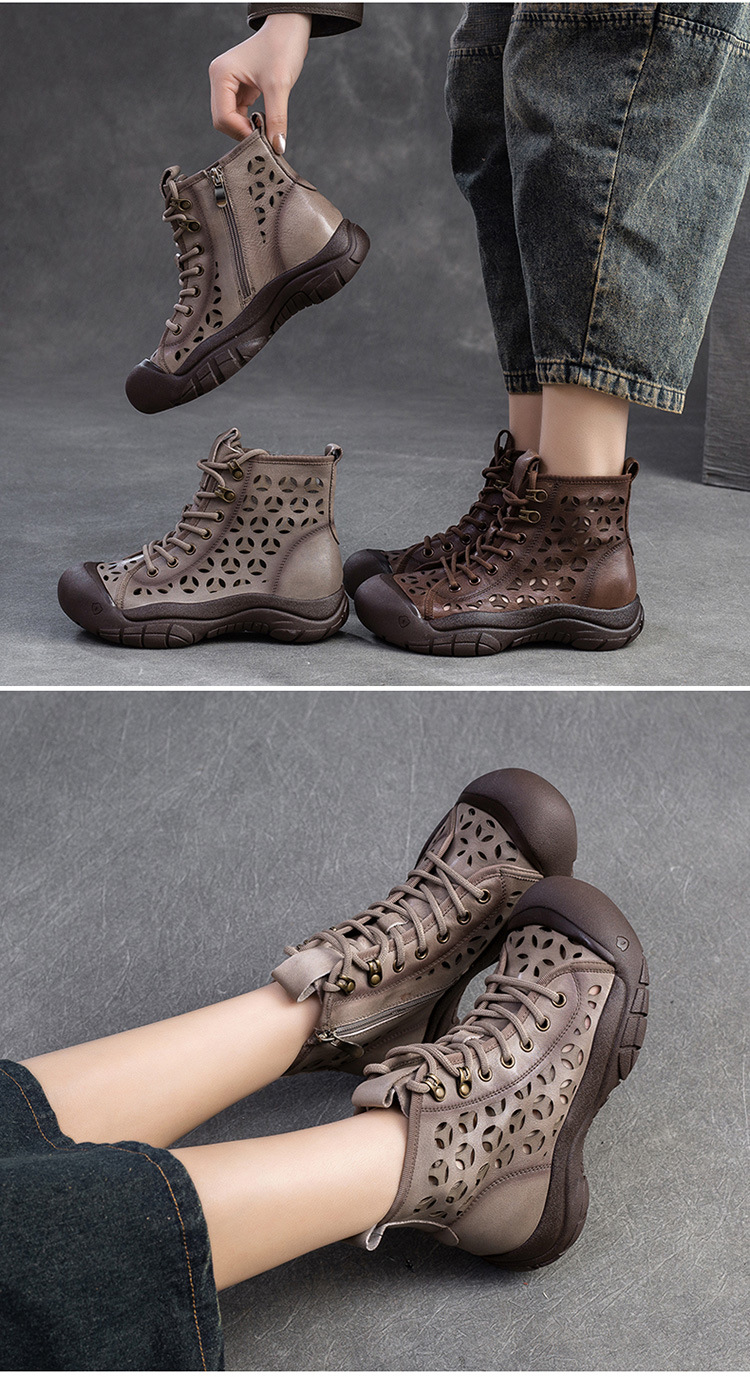 Giày bốt thời trang nữ, lấy cảm hứng từ phong cách La Mã cổ điển. Sản phẩm có phần đế dày thoải mái và thiết kế khoét lỗ tinh tế, giúp đôi chân luôn thông thoáng, phù hợp cho những ngày thời tiết ấm áp. Kiểu dáng cổ cao ôm vừa vặn, mang đến vẻ ngoại năng động và cá tính. Bạn có thể dễ dàng phối cùng quần short, váy hoặc quần jeans để tạo điểm nhấn riêng. | Tên sản phẩm: Giày Thể Thao Tăng Chiều Cao Nữ Thoáng Khí Đế Cao Hàng Mùa Xuân Thu Đông Phục Cổ Cổ Điển - Giày Dép Nữ | Mã sản phẩm: B1844 - Giá: 1.520.000đ | Mã nhà sản xuất: SHDU-G04Hình ảnh sản phẩm