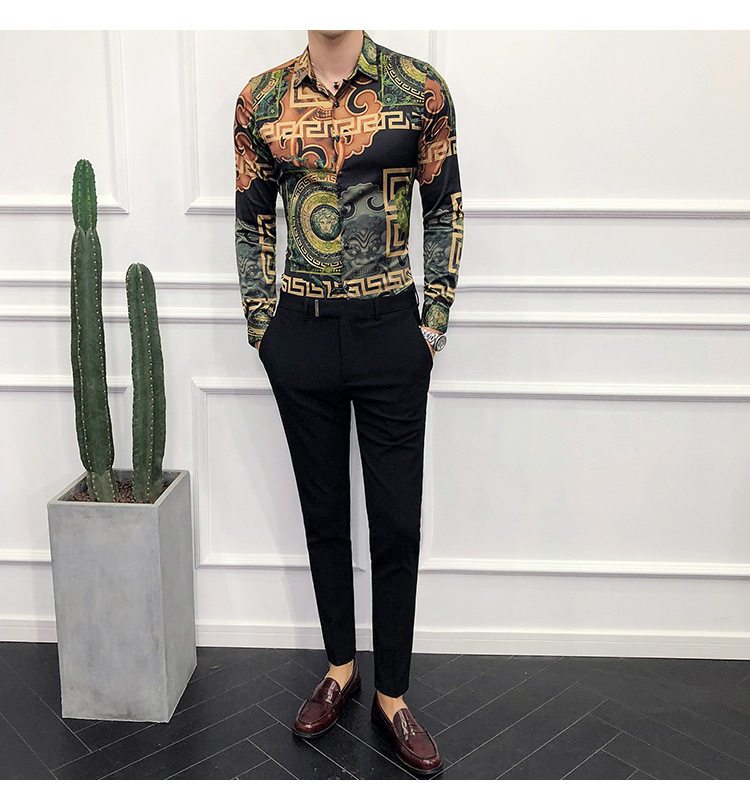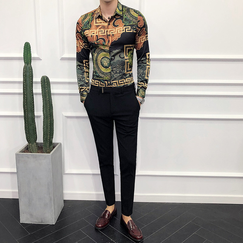 Áo sơ mi dài tay này mang phong cách thời trang châu Âu pha chút cổ điển. Kiểu dáng ôm vừa vặn, tôn dáng người mặc. Họa tiết trên áo là những bông hoa nhẹ nhàng, chủ đạo màu xanh lá trông rất nổi bật và cá tính. Chất vải mềm mại, thoáng mát, mặc thoải mái cả ngày. Phù hợp mặc đi làm, đi chơi hay dự các cuộc gặp mặt. Giặt với nước lạnh và phơi trong bóng râm để giữ áo bền đẹp. | Tên sản phẩm: Áo Sơ Mi Nam Dáng Ôm Họa Tiết Hoa Phong Cách Hàn Quốc - Thời Trang Nam | Mã sản phẩm: A0109 - Giá: 610.000đ | Mã nhà sản xuất: HADRK-G02Hình ảnh sản phẩm