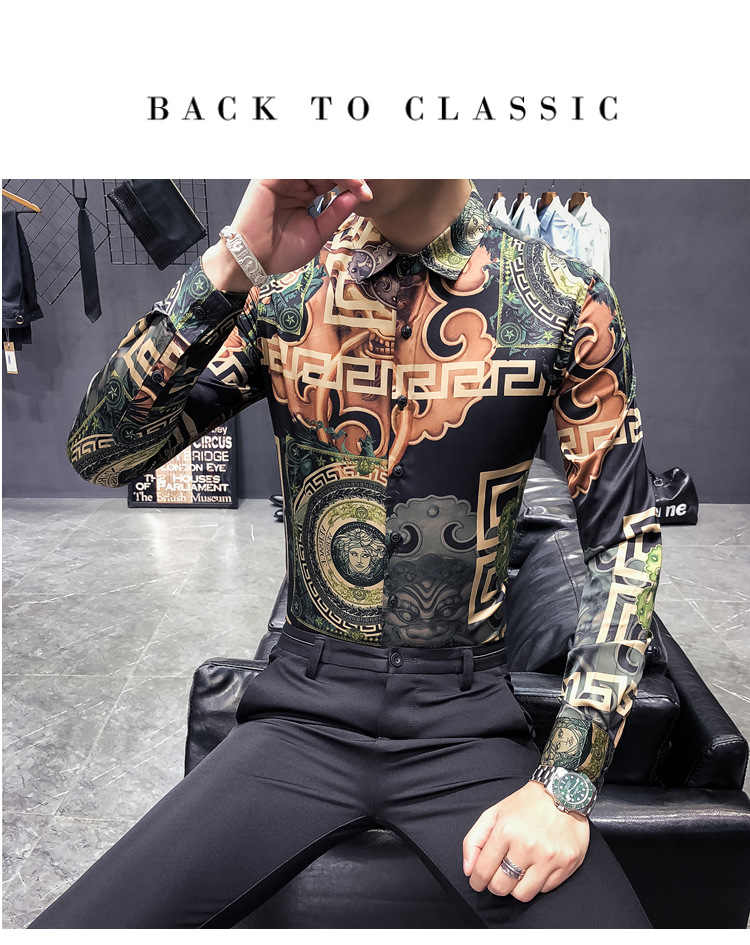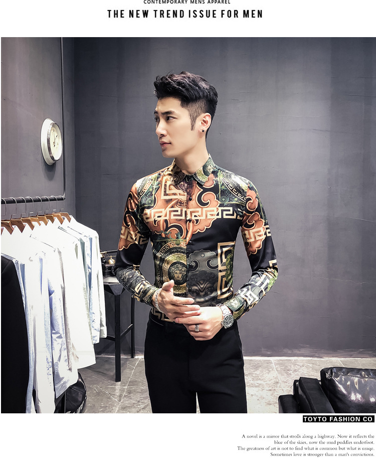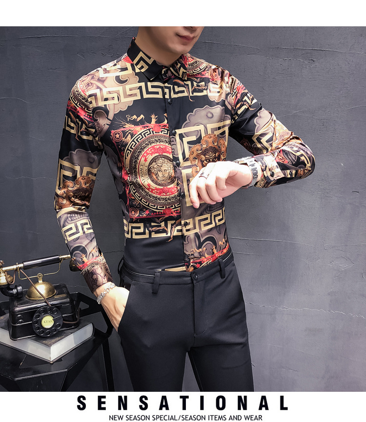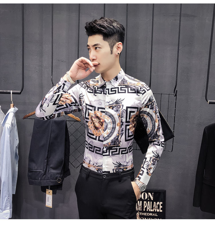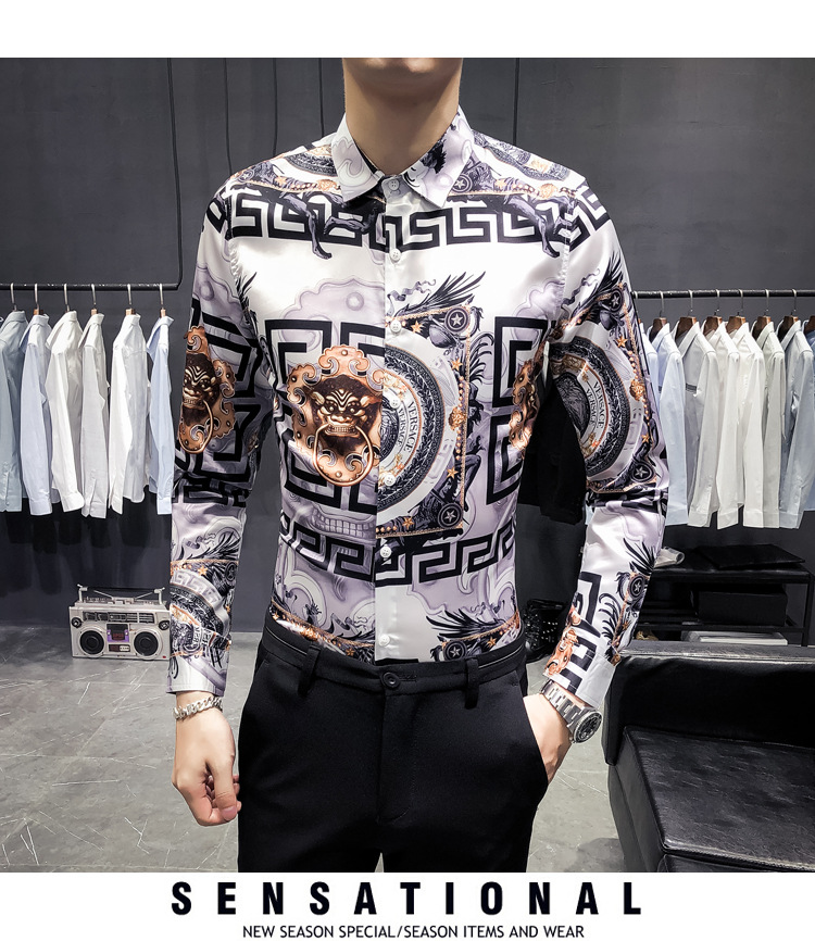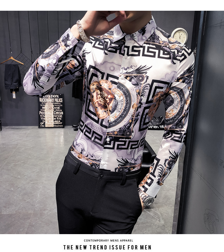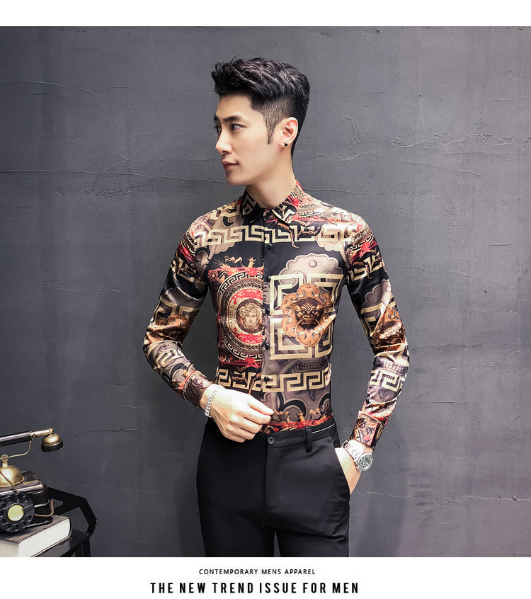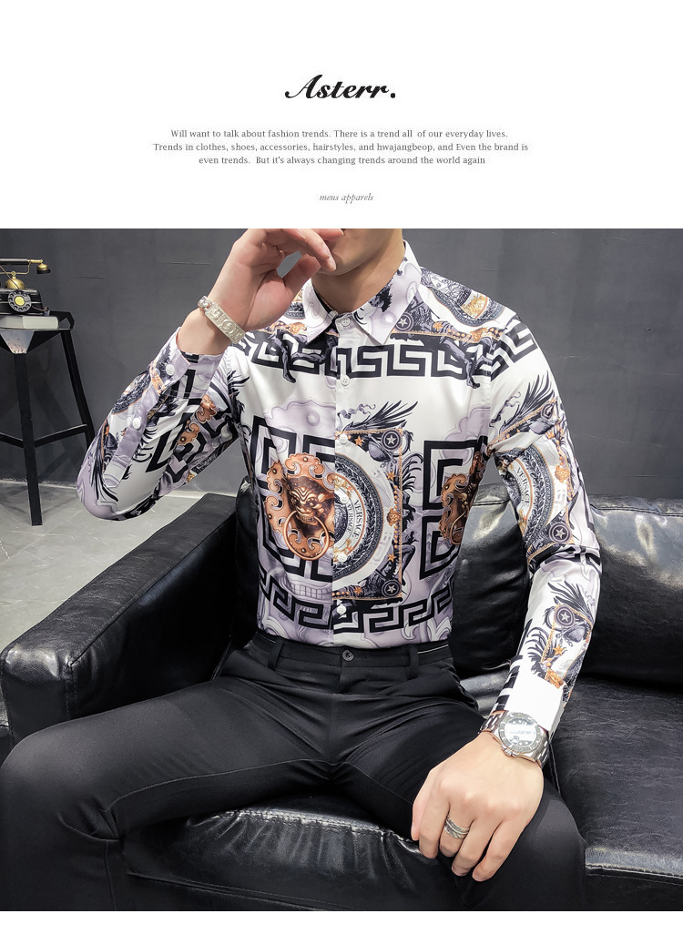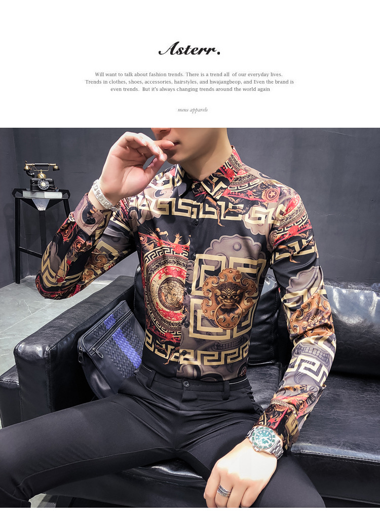 Áo sơ mi nam với hoạ tiết in nổi bật, phong cách châu Âu cổ điển. Thiết kế ôm vừa vặn cơ thể, tôn dáng người mặc. Chất vải mềm mại, thoáng mát, mang lại cảm giác dễ chịu cho những ngày thu mát mẻ. Sản phẩm phù hợp khi kết hợp cùng quần tây, quần âu để đi làm hoặc dự những buổi gặp mặt. Giặt tay hoặc máy với chế độ nhẹ, hạn chế phơi trực tiếp dưới nắng gắt để giữ màu áo được lâu. | Tên sản phẩm: Áo Sơ Mi Nam Dáng Ôm Họa Tiết Hoa Hàng Mùa Xuân Thu Đông Phong Cách Hàn Quốc - Thời Trang Nam | Mã sản phẩm: A0112 - Giá: 610.000đ | Mã nhà sản xuất: HADRK-G02Hình ảnh sản phẩm