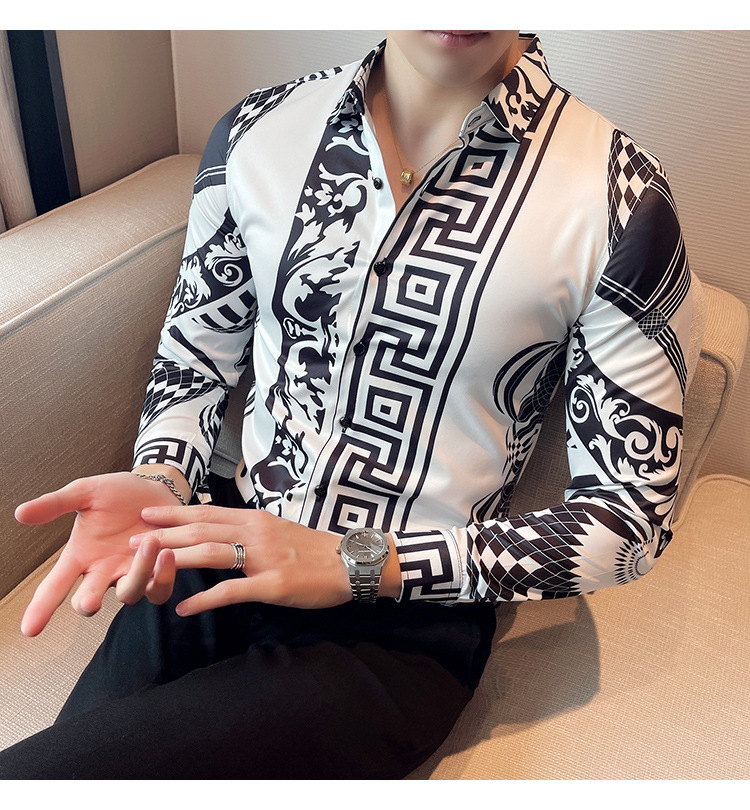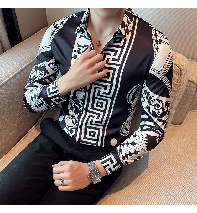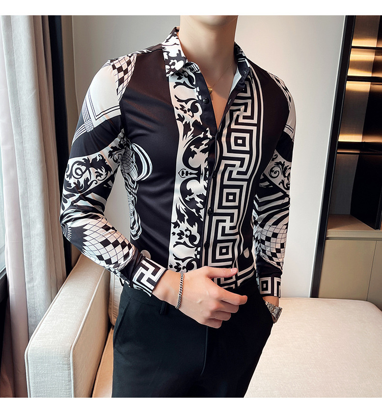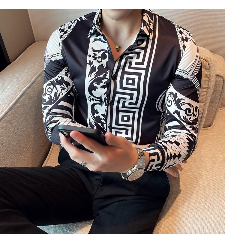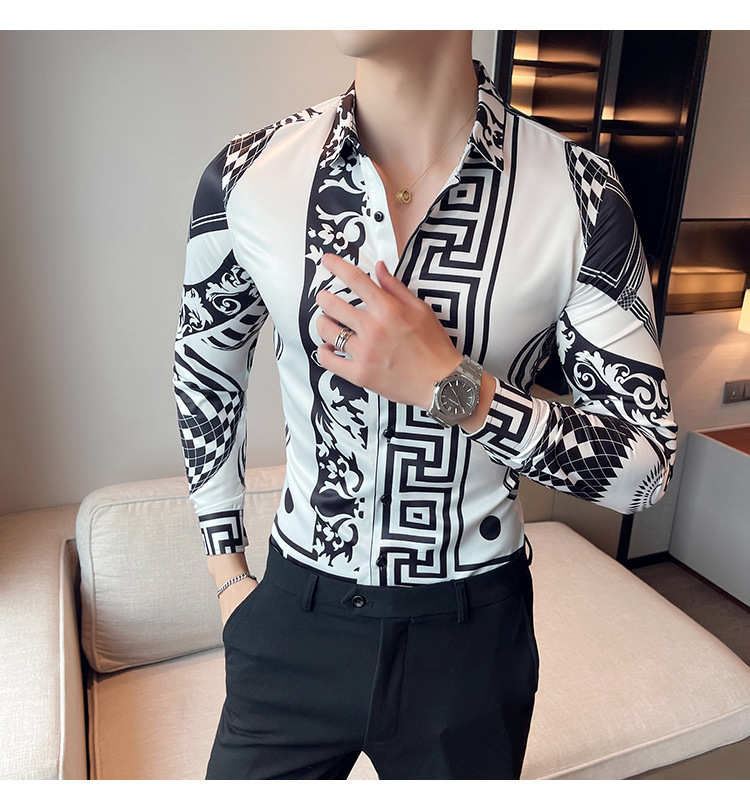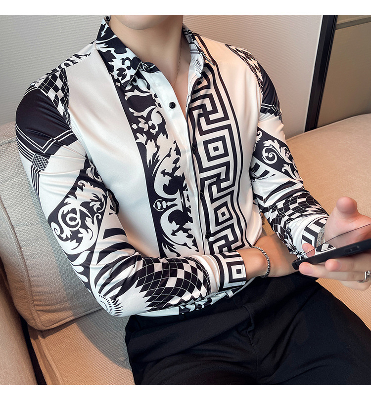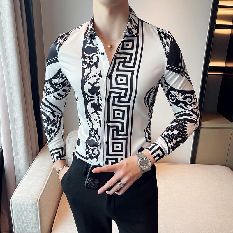 Áo sơ mi dáng dài tay, kiểu cách châu Âu hiện đại với họa tiết in trẻ trung, dành riêng cho nam giới. Chất vải mềm mại, thoáng khí giúp người mặc thoải mái suốt ngày dài. Thiết kế form chuẩn, dễ dàng phối cùng quần tây hoặc quần jean. Sản phẩm phù hợp cho nhiều dịp như đi làm, gặp gỡ bạn bè hay dạo phố. Giặt máy nhẹ nhàng ở chế độ thường để bảo quản chất vải và hình in. | Tên sản phẩm: Áo Sơ Mi Nam Dài Tay Họa Tiết Hoa Hàng Mùa Xuân Thu Đông Phong Cách Âu Mỹ - Thời Trang Nam | Mã sản phẩm: A0146 - Giá: 610.000đ | Mã nhà sản xuất: HADRK-G02Hình ảnh sản phẩm