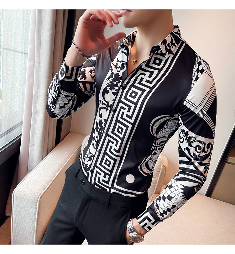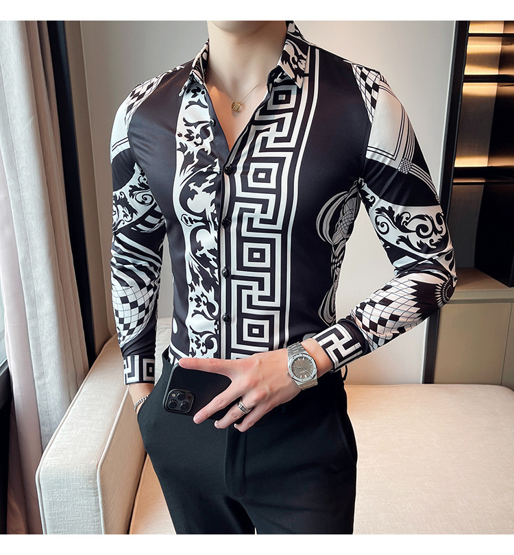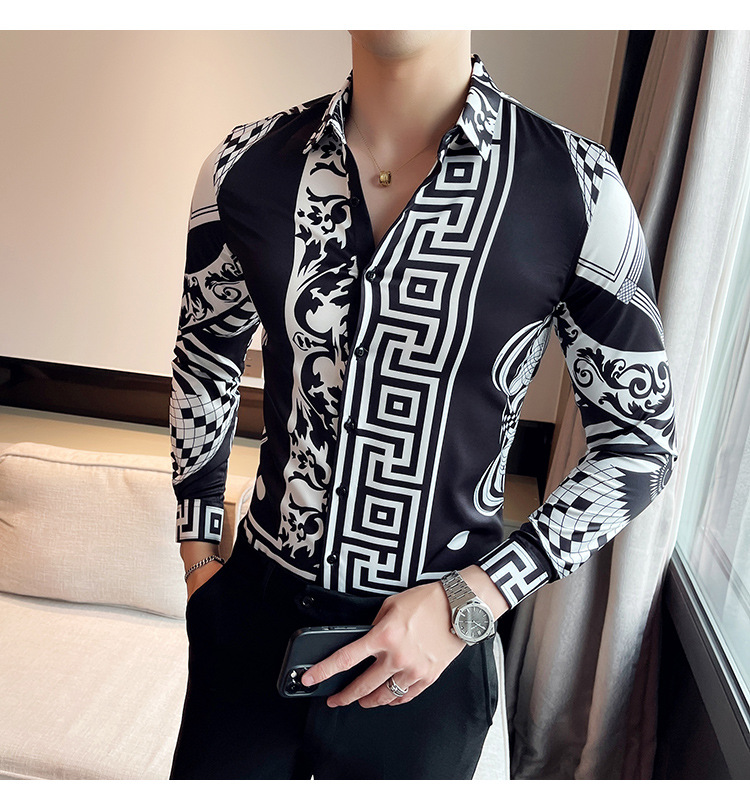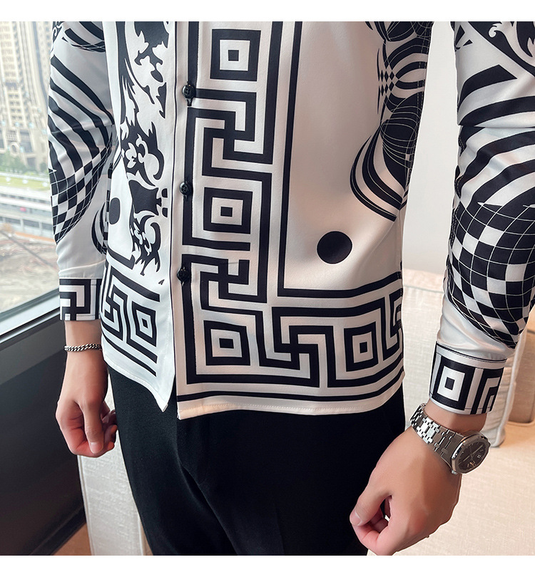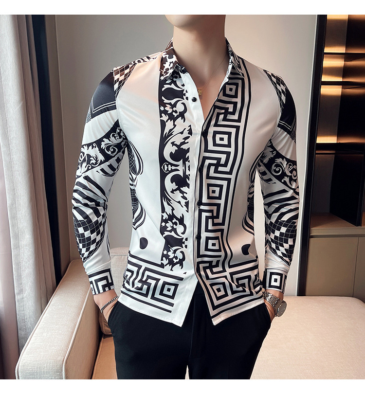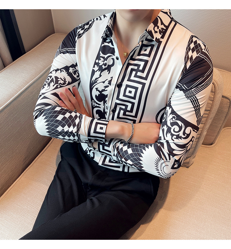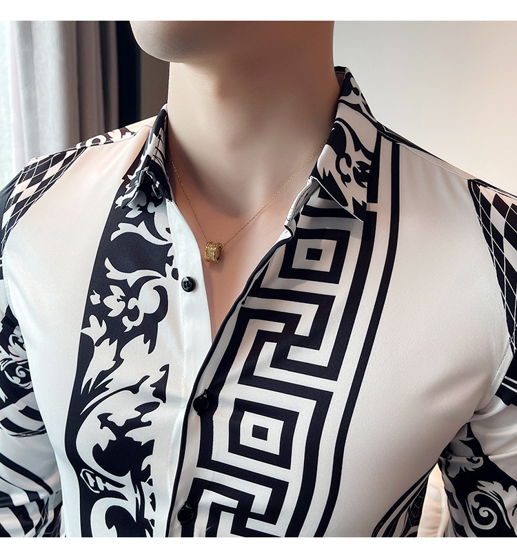 Áo sơ mi dáng dài tay, kiểu cách châu Âu hiện đại với họa tiết in trẻ trung, dành riêng cho nam giới. Chất vải mềm mại, thoáng khí giúp người mặc thoải mái suốt ngày dài. Thiết kế form chuẩn, dễ dàng phối cùng quần tây hoặc quần jean. Sản phẩm phù hợp cho nhiều dịp như đi làm, gặp gỡ bạn bè hay dạo phố. Giặt máy nhẹ nhàng ở chế độ thường để bảo quản chất vải và hình in. | Tên sản phẩm: Áo Sơ Mi Nam Dài Tay Họa Tiết Hoa Hàng Mùa Xuân Thu Đông Phong Cách Âu Mỹ - Thời Trang Nam | Mã sản phẩm: A0146 - Giá: 610.000đ | Mã nhà sản xuất: HADRK-G02Hình ảnh sản phẩm