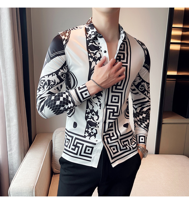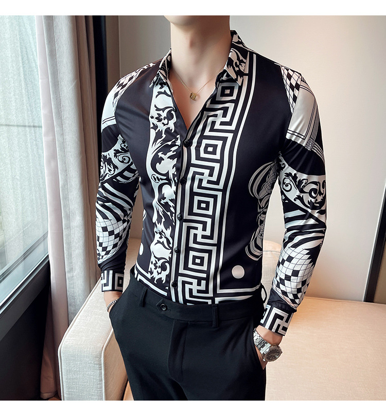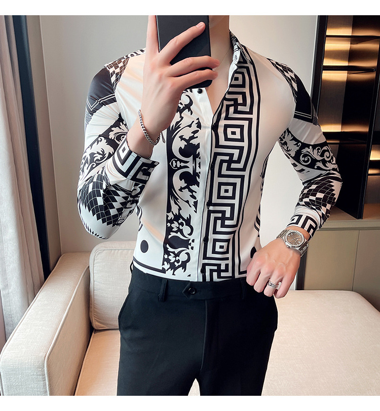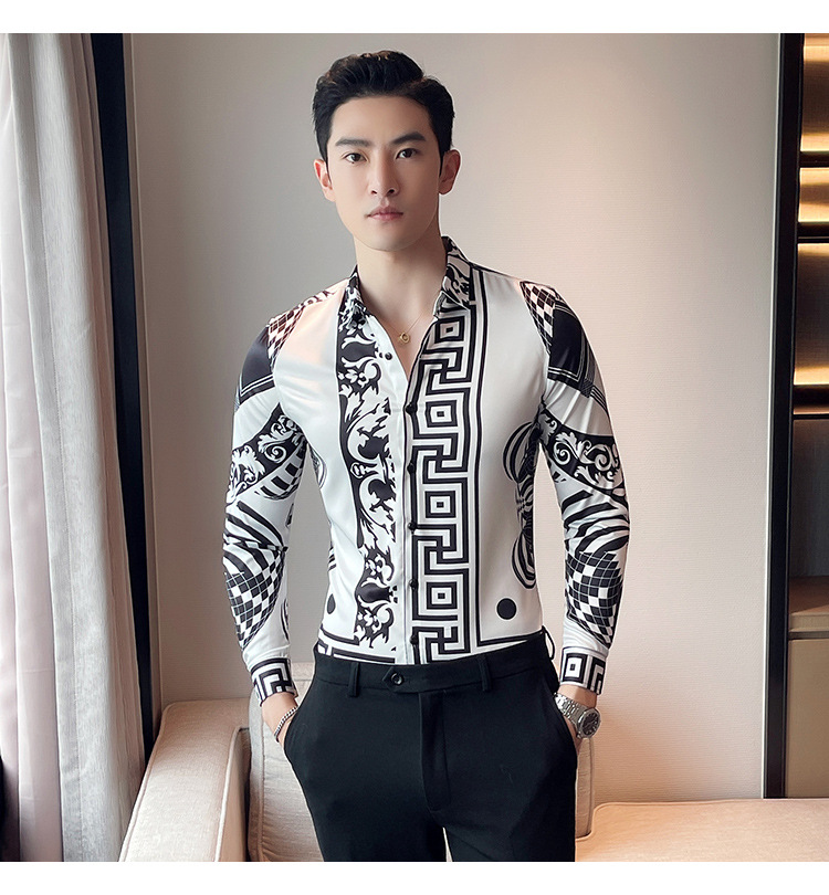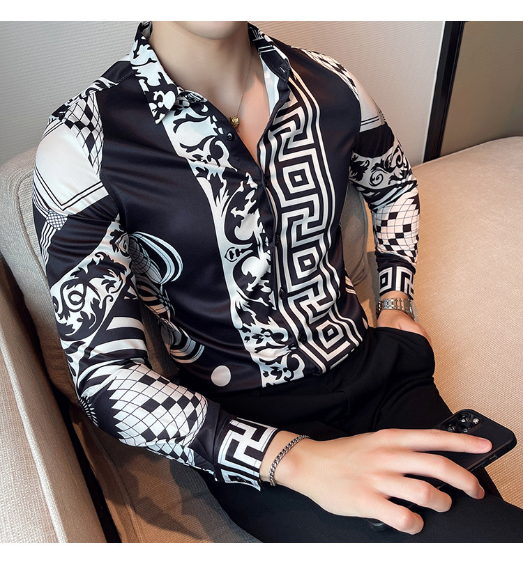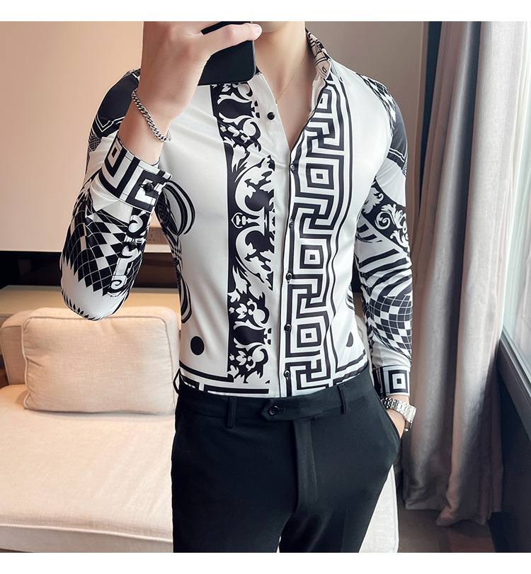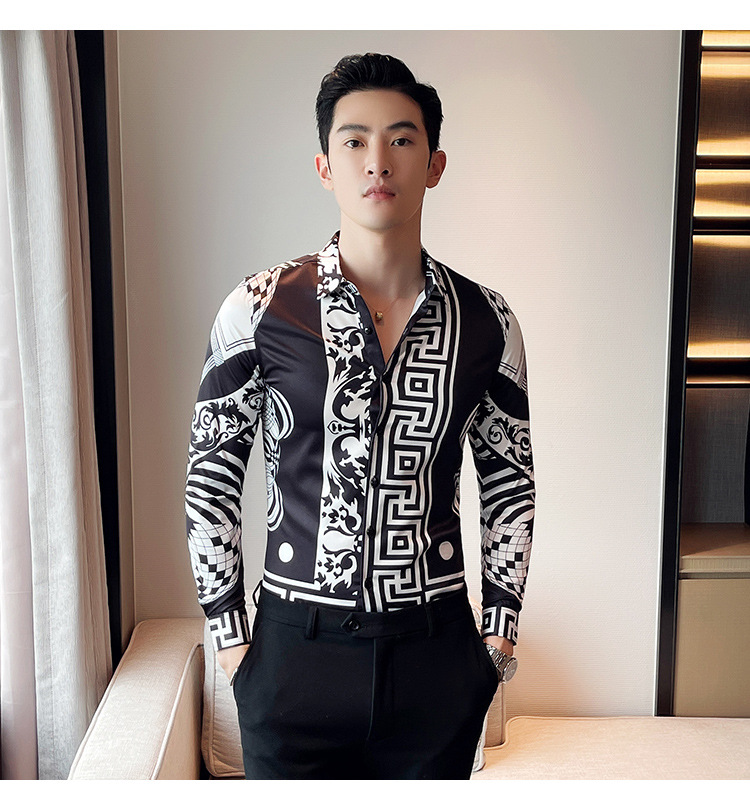 Áo sơ mi dáng dài tay, kiểu cách châu Âu hiện đại với họa tiết in trẻ trung, dành riêng cho nam giới. Chất vải mềm mại, thoáng khí giúp người mặc thoải mái suốt ngày dài. Thiết kế form chuẩn, dễ dàng phối cùng quần tây hoặc quần jean. Sản phẩm phù hợp cho nhiều dịp như đi làm, gặp gỡ bạn bè hay dạo phố. Giặt máy nhẹ nhàng ở chế độ thường để bảo quản chất vải và hình in. | Tên sản phẩm: Áo Sơ Mi Nam Dài Tay Họa Tiết Hoa Hàng Mùa Xuân Thu Đông Phong Cách Âu Mỹ - Thời Trang Nam | Mã sản phẩm: A0146 - Giá: 610.000đ | Mã nhà sản xuất: HADRK-G02Hình ảnh sản phẩm
