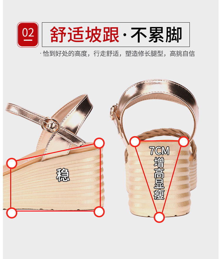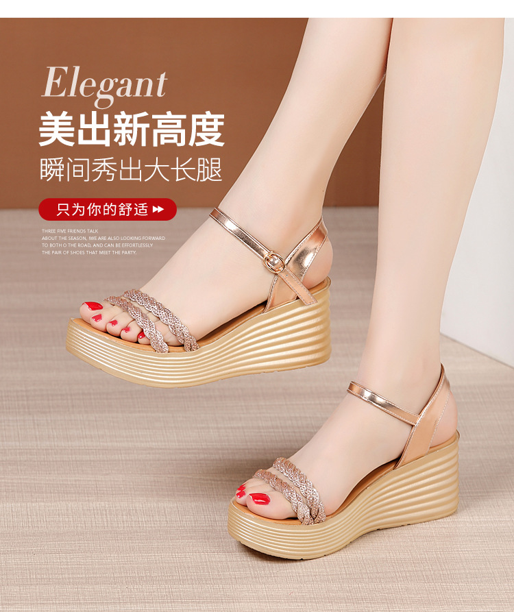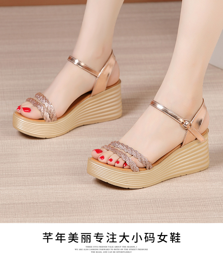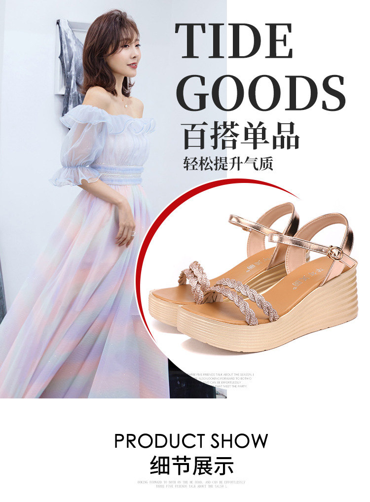 Đôi dép quai ngang nữ tính với phần đế dày nhẹ nhàng và khóa mảnh trang trí viên đá lấp lánh. Sản phẩm có thiết kế mũi hở mát mẻ, phần đế được bo tròn tạo cảm giác thoải mái khi di chuyển. Kiểu dáng dễ phối cùng nhiều trang phục khác nhau. Bạn chỉ cần cài khóa mảnh là đã có ngay một set đồ hoàn chỉnh, phù hợp cho những ngày hè. | Tên sản phẩm: Giày Cao Gót Nữ Big Size Ngoại Cỡ Đế Mềm Đế Xuồng Đế Cao Hàng Mùa Hè - Giày Dép Nữ | Mã sản phẩm: A0481 - Giá: 720.000đ | Mã nhà sản xuất: WUDTI-G02Hình ảnh sản phẩm