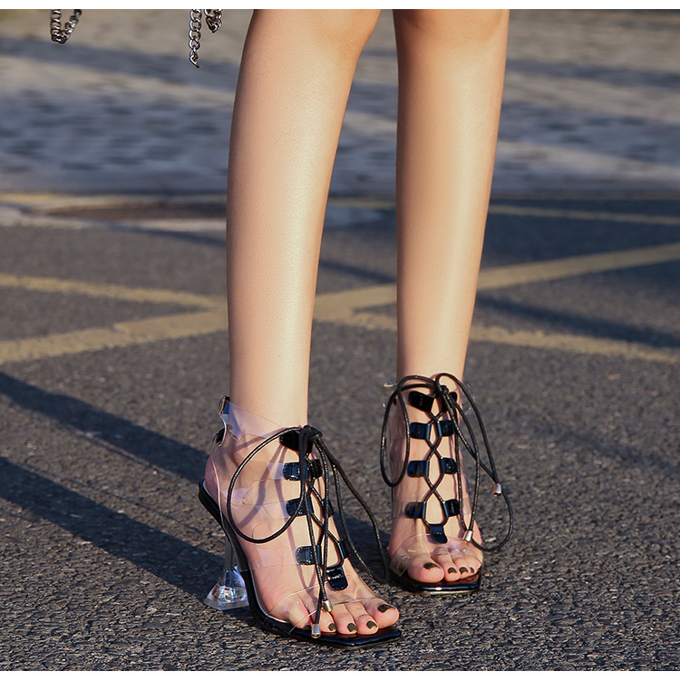 Đôi giày bốt mùa hè này có phần đế thon cùng gót nhỏ tạo điểm nhấn. Kiểu dáng buộc dây chéo phía trước ôm sát chân, kết hợp phần mũi hở ngón tạo nên vẻ thanh thoát. Chất liệu trong suốt và họa tiết khoét lỗ giúp đôi chân thông thoáng. Bạn có thể dễ dàng phối cùng váy hoặc quần short để tạo điểm nhấn nổi bật cho bộ trang phục. | Tên sản phẩm: Giày Dép Sandal Nữ Gót Nhọn Trong Suốt - Giày Dép Nữ | Mã sản phẩm: A4108 - Giá: 800.000đ | Mã nhà sản xuất: MATYAL-G02Hình ảnh sản phẩm