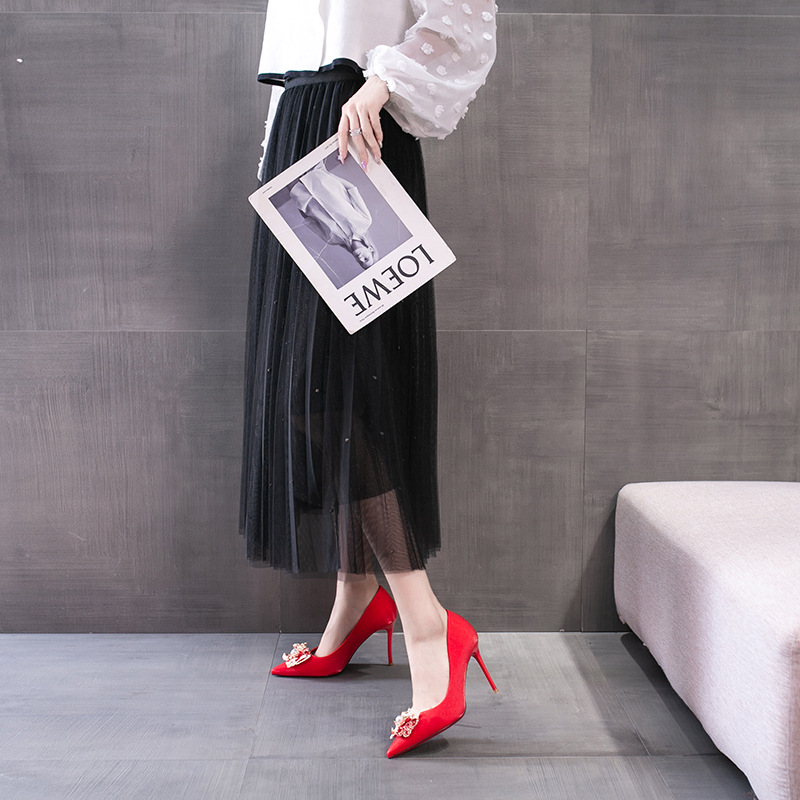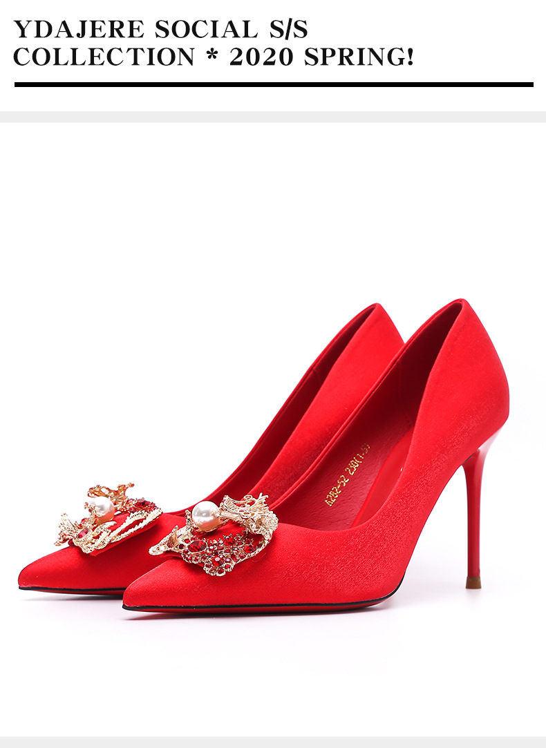Đôi giày dành cho cô dâu trong ngày cưới, thiết kế mũi nhọn và gót thanhai mảnh tôn lên vẻ duyên dáng. Điểm nhấn nổi bật là chi tiết nơ đính kết đá lấp lánh ở phía trước, tạo nên sự nữ tính và tinh tế. Màu đỏ rực rỡ mang lại không khí vui tươi và tràn đầy hạnh phúc. Sản phẩm phù hợp để mang trong các dịp lễ, tiệc quan trọng hoặc kết hợp cùng váy dạ hội. Khi sử dụng, nên vệ sinh nhẹ nhàng bằng khăn mềm để giữ giày luôn sáng đẹp. | Tên sản phẩm: Giày Cao Gót Nữ Gắn Đá Mũi Nhọn Gót Nhọn Dùng Trong Lễ Cưới Ngày Cưới - Giày Dép Nữ | Mã sản phẩm: A4994 - Giá: 1.240.000đ | Mã nhà sản xuất: ZHDIA-G04Hình ảnh sản phẩm