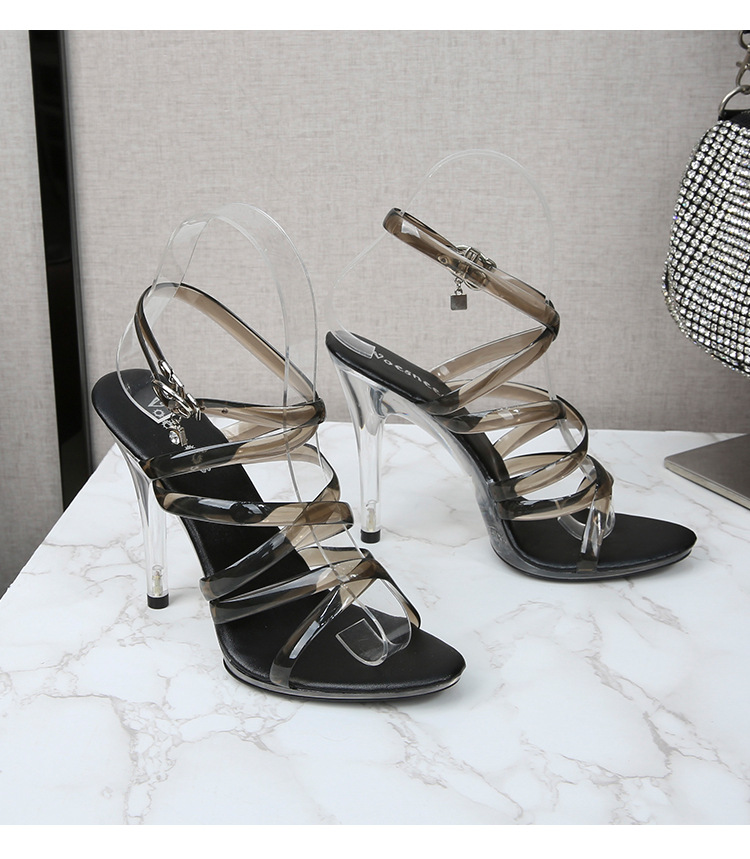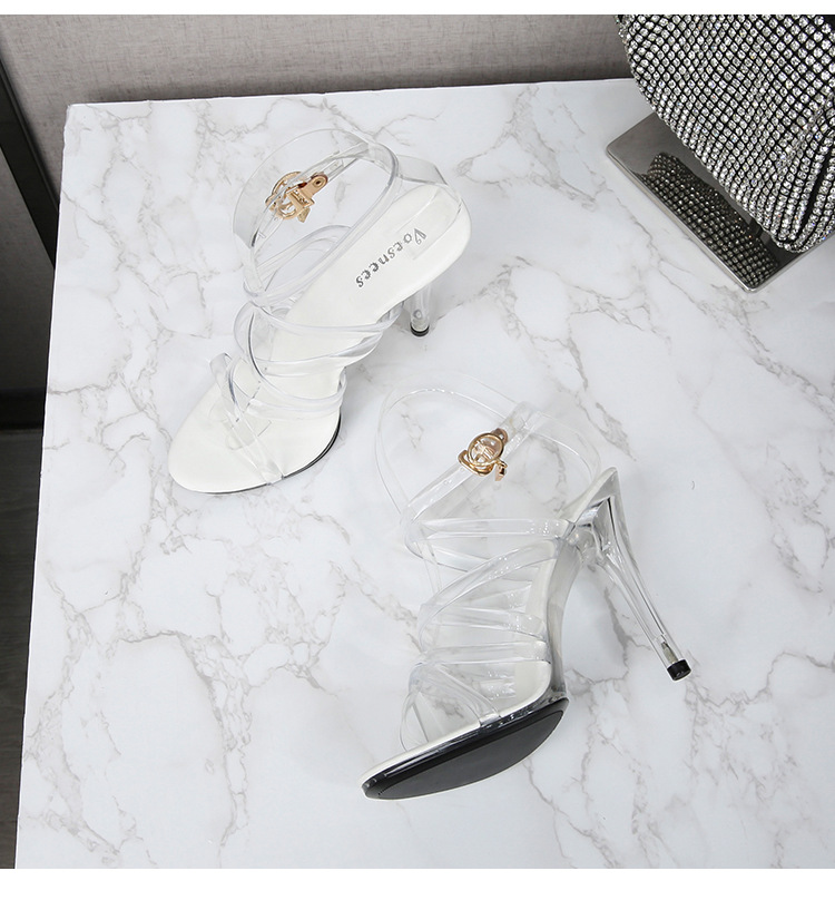 Đôi giày này có phần đế cao mười một phân, giúp tôn dáng người mang. Kiểu dáng gót nhọn và dây trong suốt tạo nên vẻ quyến rũ, phù hợp cho những buổi tiệc tối. Sản phẩm có nhiều cỡ giày lớn, từ ba mươi lăm đến bốn mươi ba, để nhiều người có thể dùng thoải mái. Khi mang, bạn nên cột chặt các dây quấn quanh mắt cá chân để giữ chân chắc chắn và dễ di chuyển. | Tên sản phẩm: Giày Cao Gót Nữ Big Size Ngoại Cỡ Trong Suốt - Giày Dép Nữ | Mã sản phẩm: A7665 - Giá: 610.000đ | Mã nhà sản xuất: JIENNG-G02Hình ảnh sản phẩm