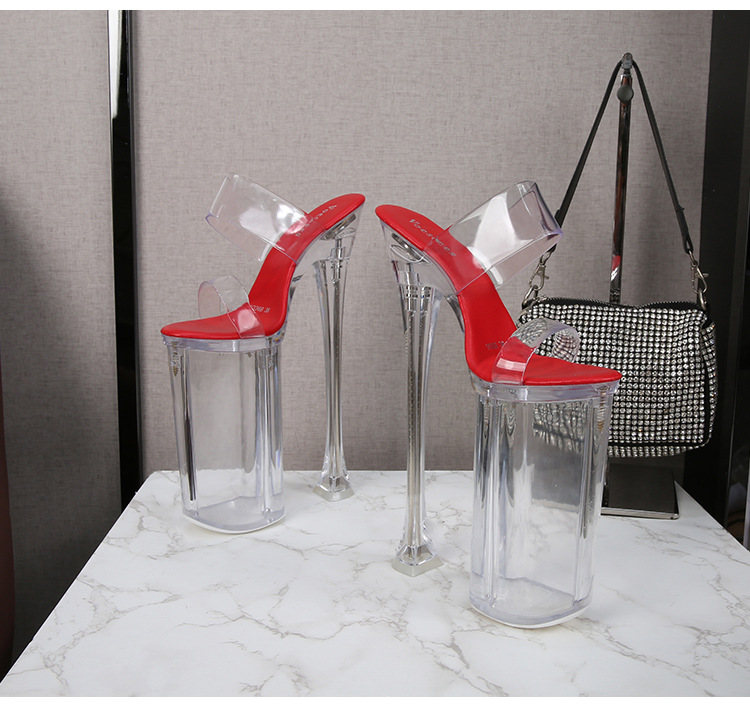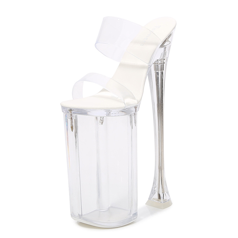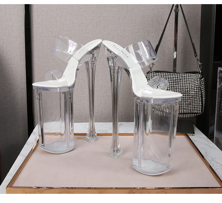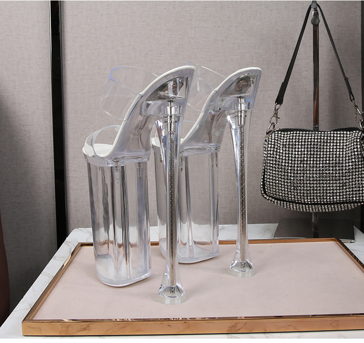 Đôi giày này có phần gót cực cao và dáng mũi nhọn, tạo điểm nhấn với hai dây đeo vắt chéo mắt cá chân. Kiểu dáng phù hợp cho các buổi biểu diễn trên sân khấu, khiêu vũ hoặc chụp ảnh. Sản phẩm được làm từ chất liệu tổng hợp bền chắc. Khi sử dụng, bạn chỉ cần quấn hai dây đeo quanh chân và cố định bằng khóa. Lưu ý di chuyển cẩn thận để giữ thăng bằng do gót rất cao. | Tên sản phẩm: Giày Dép Lê Nữ - Giày Dép Nữ | Mã sản phẩm: A7683 - Giá: 2.600.000đ | Mã nhà sản xuất: JIENNG-G06Hình ảnh sản phẩm