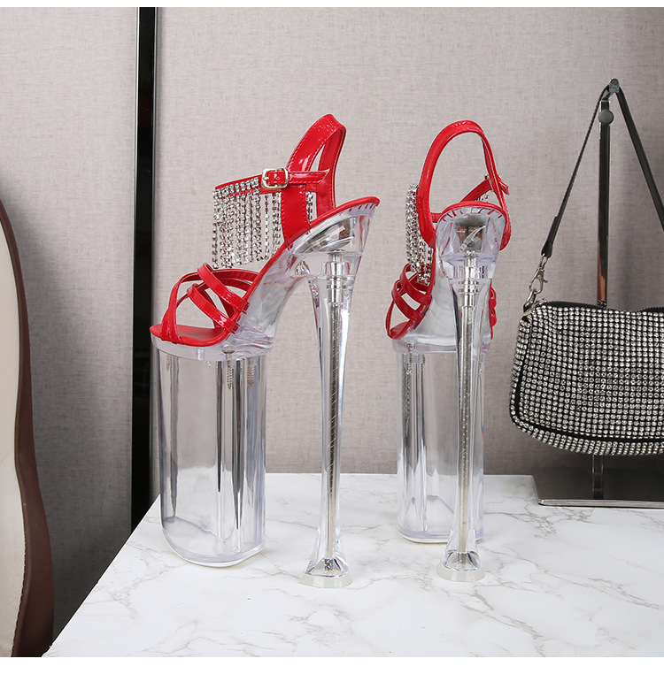 Đôi giày này có phần gót cực cao và chắc chắn, được thiết kế dành riêng cho việc trình diễn hoặc biểu diễn nghệ thuật. Sản phẩm có dạng sandal với các dây đan ôm sát chân, giúp cố định và hỗ trợ người dùng di chuyển linh hoạt trên sân khấu. Khi sử dụng, bạn nên tập làm quen với độ cao của giày ở những nơi an toàn và bằng phẳng để đảm bảo thăng bằng. Kiểu dáng của giày mang phong cách nổi bật và phù hợp cho các buổi biểu diễn. | Tên sản phẩm: Giày Cao Gót Nữ - Giày Dép Nữ | Mã sản phẩm: A7684 - Giá: 2.690.000đ | Mã nhà sản xuất: JIENNG-G06Hình ảnh sản phẩm