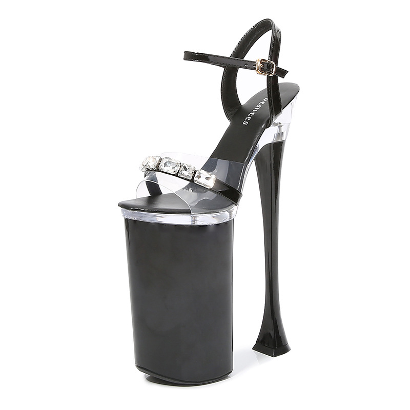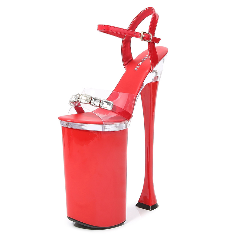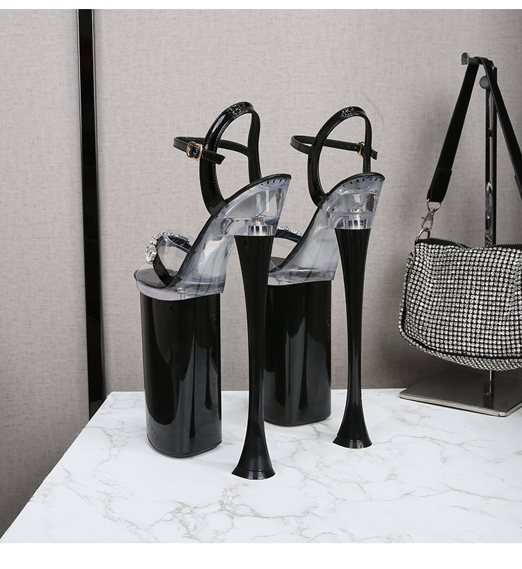 Giày cao gót nữ với phần đế được thiết kế rất cao, mang đến cảm giác đầy mạnh mẽ và quyến rũ. Trên thân giày được trang trí bằng các viên đá lấp lánh như pha lê, tạo điểm nhấn nổi bật dưới ánh đèn. Kiểu dáng sandal thoáng mát, phù hợp cho các buổi biểu diễn, trình diễn thời trang hoặc khi cần tạo ấn tượng. Sản phẩm có phần qu hỗ trợ giúp cố định chân. Khi sử dụng, nên đi lại cẩn thận trên bề mặt bằng phẳng để đảm bảo an toàn. | Tên sản phẩm: Giày Cao Gót Nữ Gắn Đá - Giày Dép Nữ | Mã sản phẩm: A7685 - Giá: 2.600.000đ | Mã nhà sản xuất: JIENNG-G06Hình ảnh sản phẩm