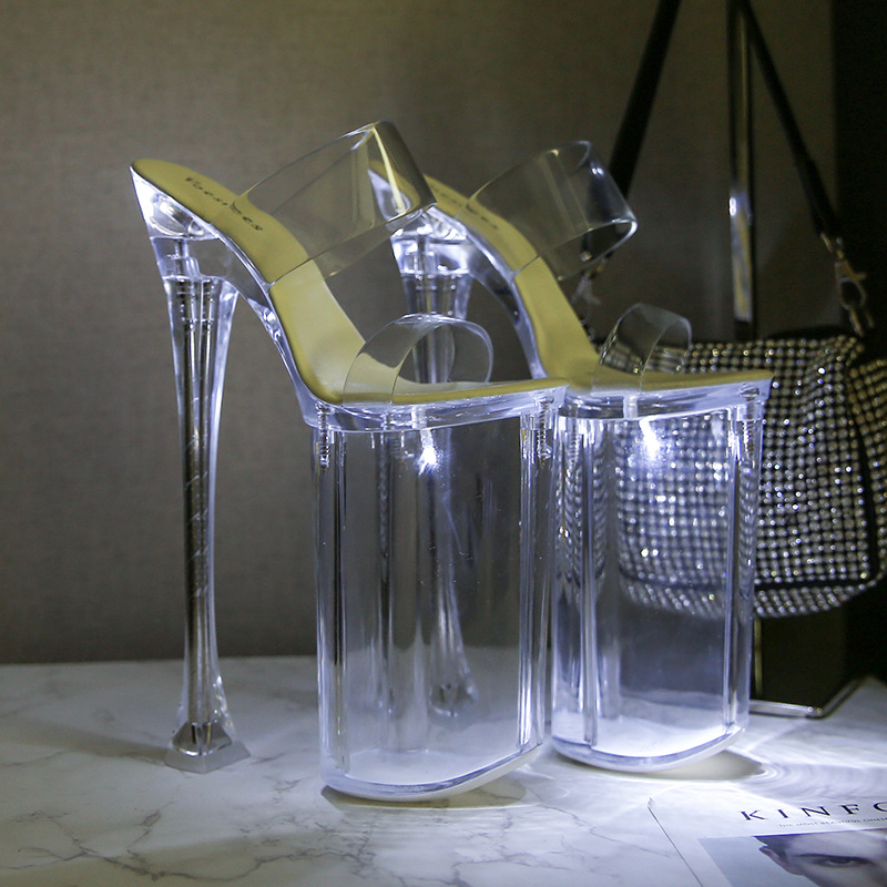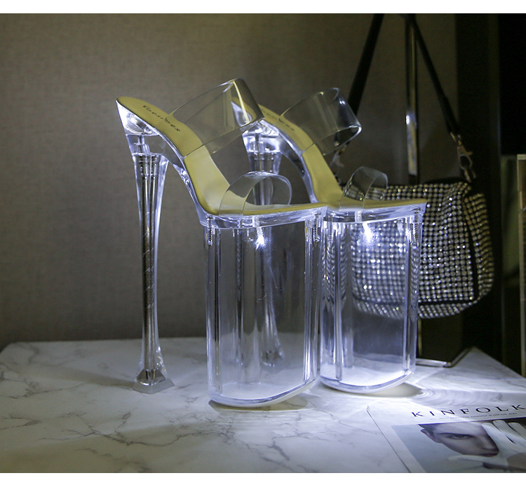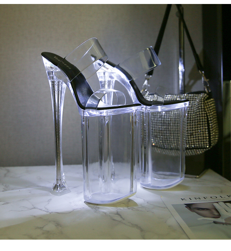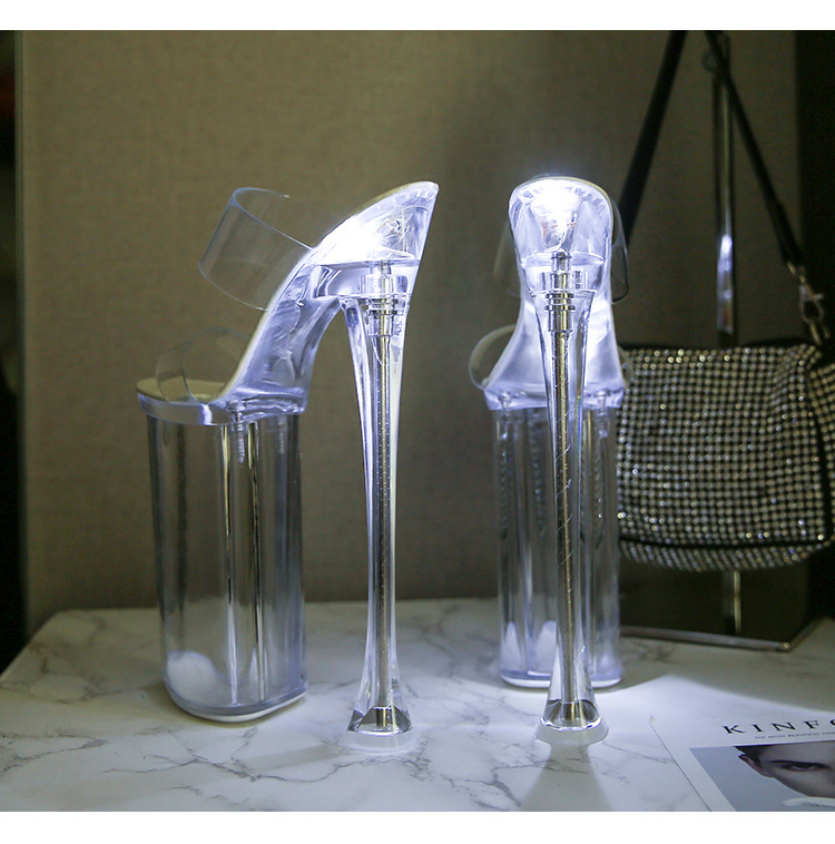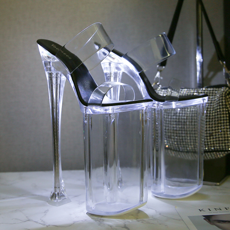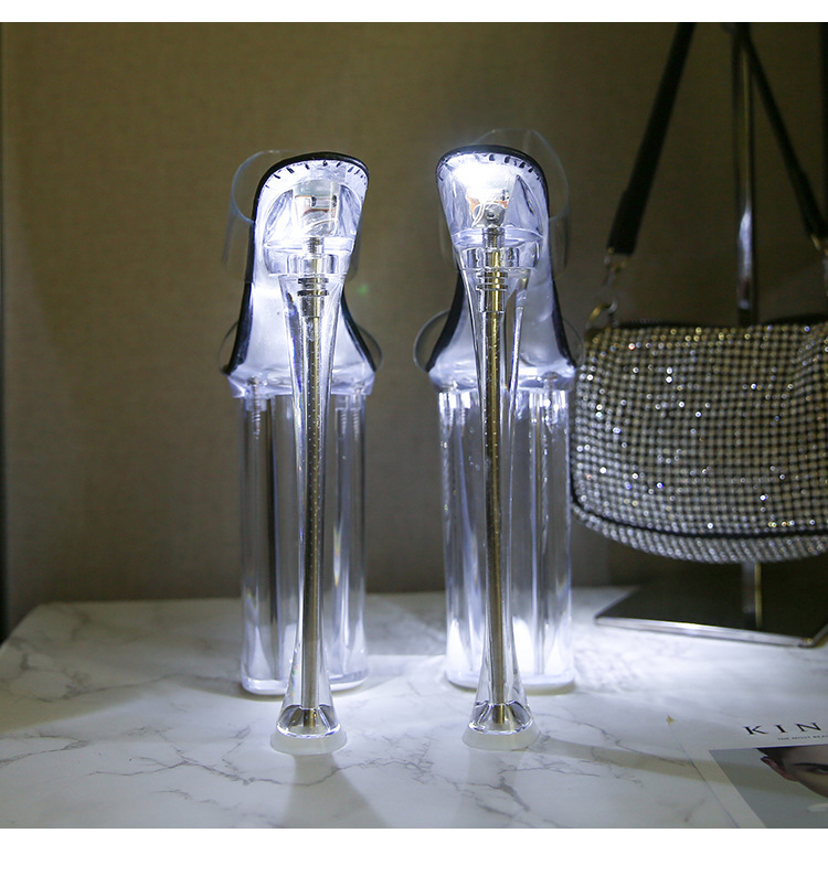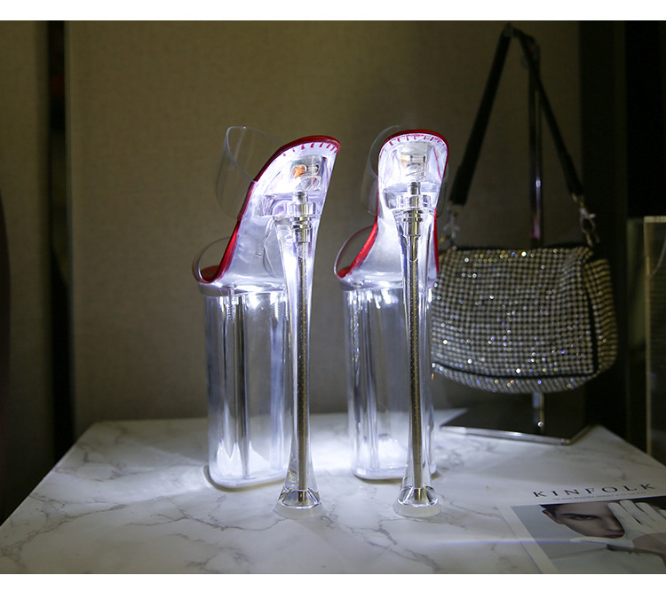 Đôi giày này có phần gót cực cao và chắc chắn, phù hợp cho các buổi biểu diễn trên sân khấu hoặc khiêu vũ. Sản phẩm được thiết kế với phong cách nổi bật, có hệ thống đèn phát sáng ở gót hoặc thân giày, tạo hiệu ứng thu hút dưới ánh đèn. Bạn có thể dễ dàng điều khiển đèn sáng thông qua một nút bấm nhỏ. Hãy sử dụng nơi có mặt phẳng an toàn để di chuyển và giữ thăng bằng tốt. | Tên sản phẩm: Giày Cao Gót Nữ - Giày Dép Nữ | Mã sản phẩm: A7688 - Giá: 2.680.000đ | Mã nhà sản xuất: JIENNG-G06Hình ảnh sản phẩm