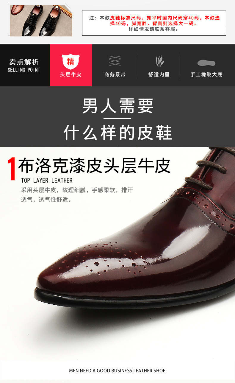 Giày da bóng dành cho nam, kiểu dáng mũi nhọn thanh lịch, mang phong cách Anh Quốc cổ điển. Trên mặt giày được điểm xuyến những đường nét chạm khắc tinh tế, kết hợp cùng dây buộc truyền thống tạo nên vẻ ngoài lịch lãm. Sản phẩm phù hợp để mang trong những dịp làm việc hoặc các sự kiện cần trang phục chỉn chu. Sử dụng bằng cách xỏ dây và buộc vừa vặn với chân, giúp bảo vệ đôi chân và dễ dàng phối cùng nhiều loại trang phục khác nhau. | Tên sản phẩm: Giày Da Nam Mũi Nhọn Họa Tiết Hoa - Giày Dép Nam | Mã sản phẩm: A9746 - Giá: 3.230.000đ | Mã nhà sản xuất: SHDN-G06Hình ảnh sản phẩm