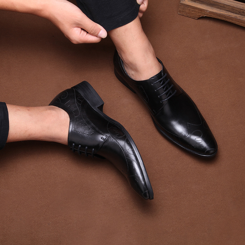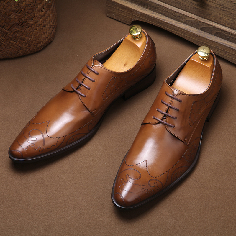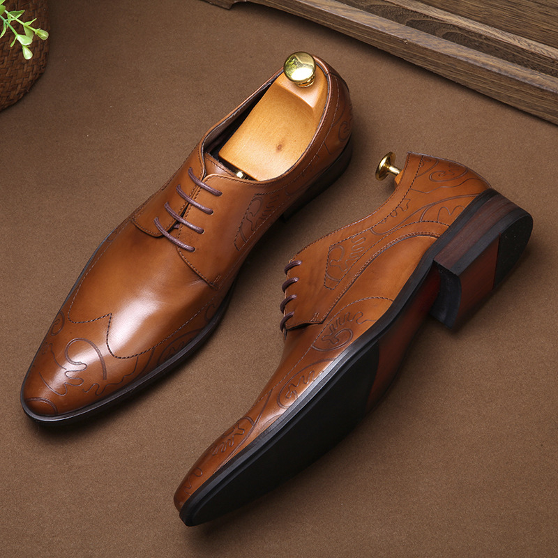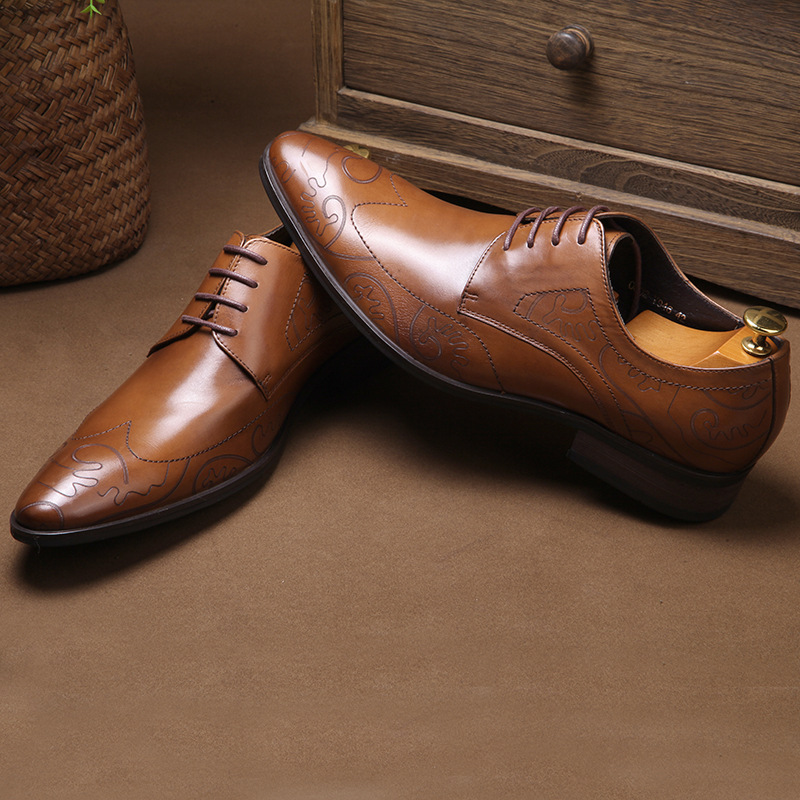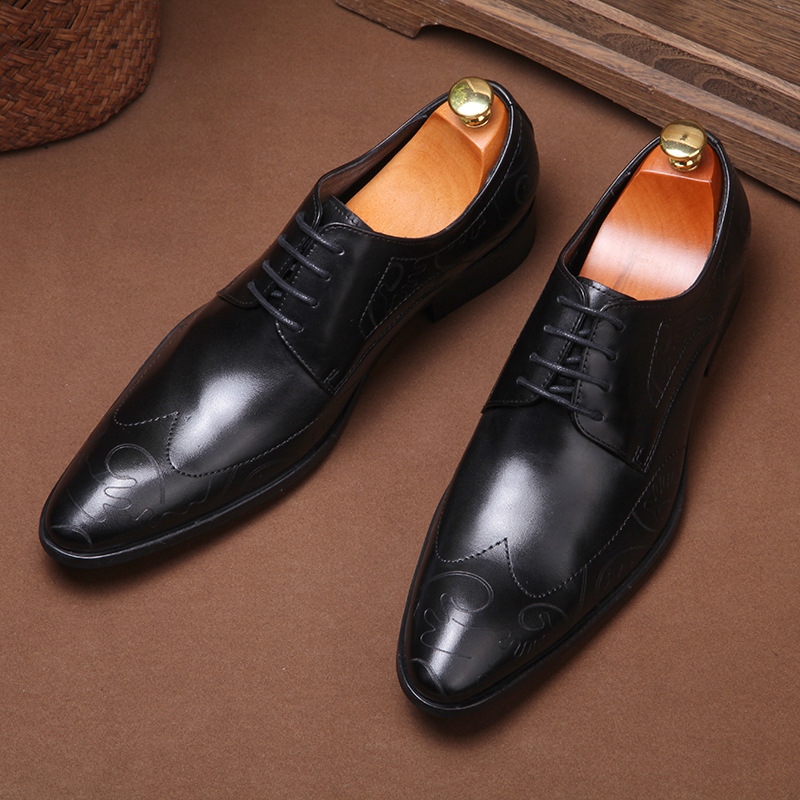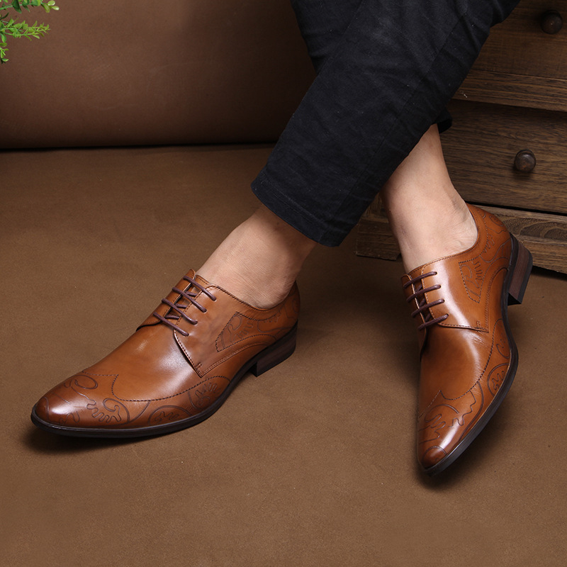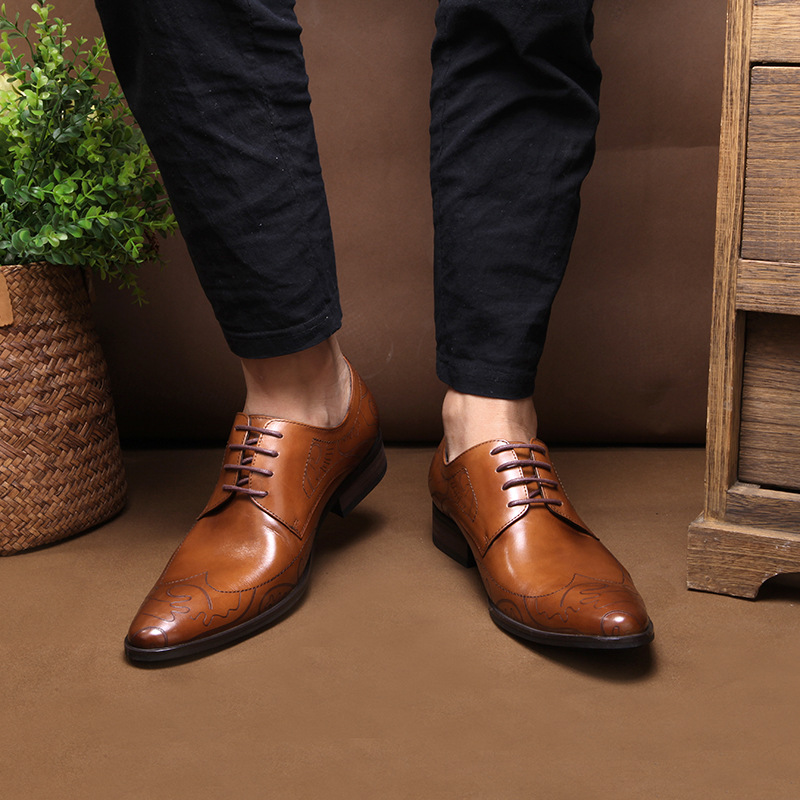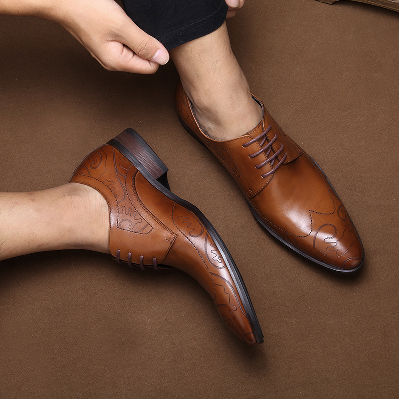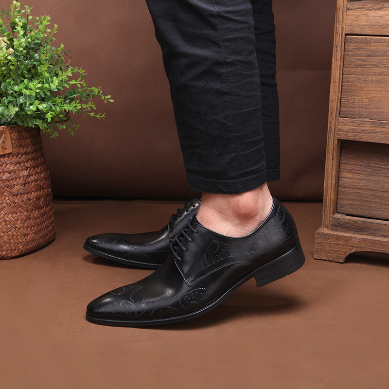 Giày tây nam kiểu dáng phong cách Anh quốc, mũi nhọn tinh tế kết hợp họa tiết chạm khắc tinh xảo. Sản phẩm được làm từ chất liệu da bò mềm mại, phù hợp cho cả những dịp làm việc trang trọng lẫn những lúc dạo phố thư giãn. Kiểu giày này dễ dàng phối cùng quần âu hoặc quần kaki. Chỉ cần vệ sinh nhẹ bằng khăn mềm và bảo quản nơi khô ráo để giữ giày luôn bền đẹp theo thời gian. | Tên sản phẩm: Giày Da Nam Chất Liệu Da Bò Mũi Nhọn Họa Tiết Hoa Dùng Trong Lễ Cưới - Giày Dép Nam | Mã sản phẩm: A9771 - Giá: 2.950.000đ | Mã nhà sản xuất: SHDN-G06Hình ảnh sản phẩm