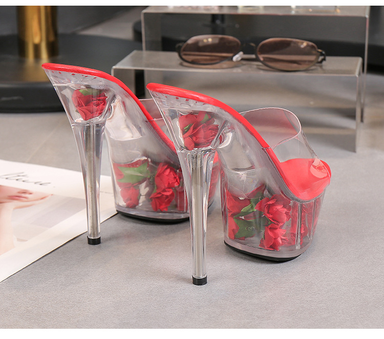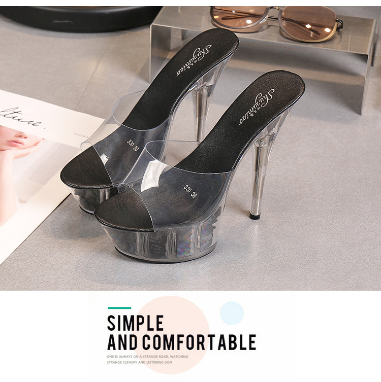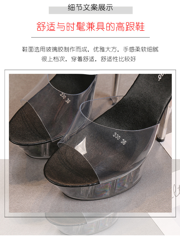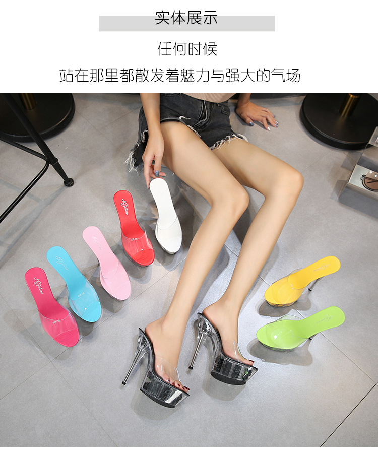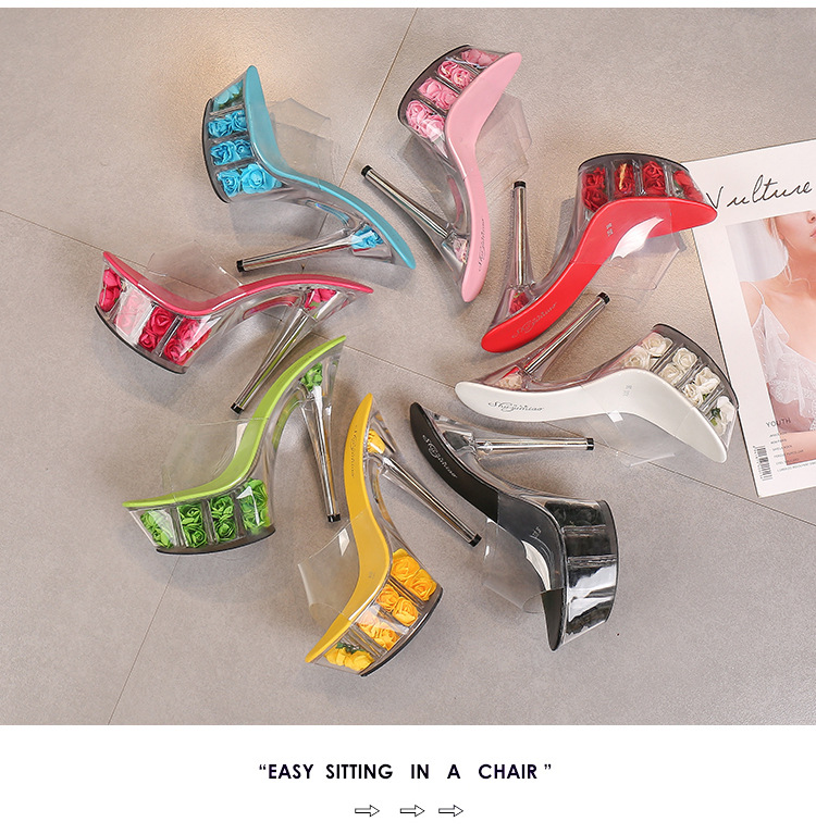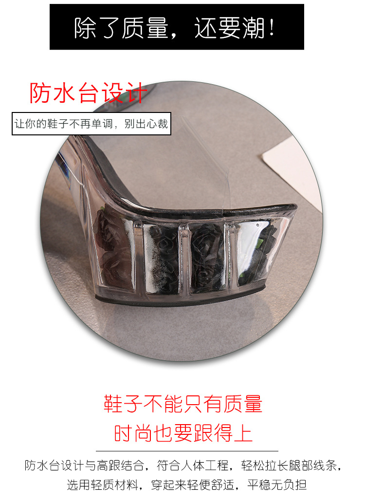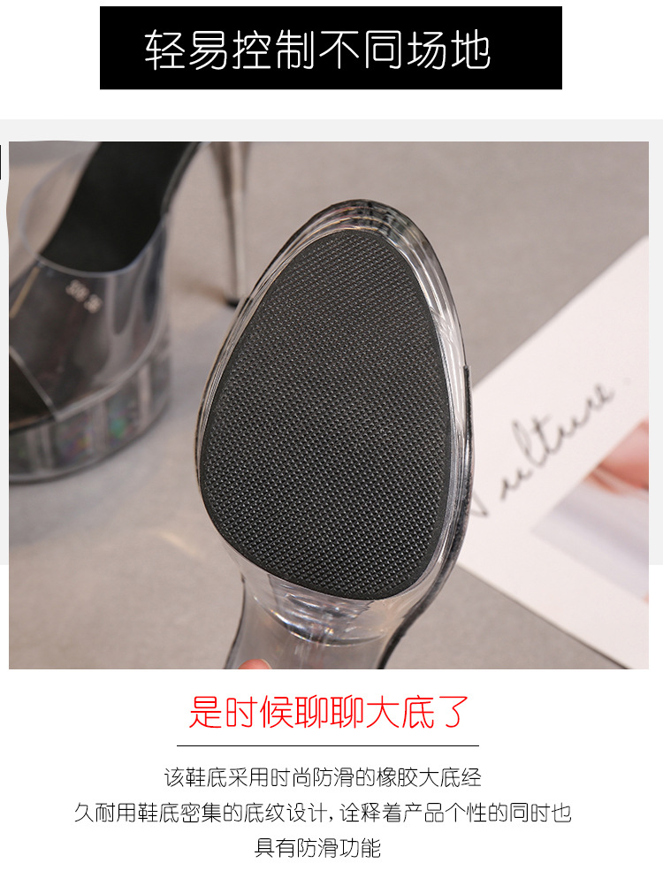 Đôi giày này có phần đế ngoài rất dày phía trước và gót siêu cao, tạo dáng cực kỳ nổi bật. Sản phẩm được làm từ chất liệu bóng đẹp, phối cùng đế trong suốt lấp lánh như pha lê, vừa chắc chắn lại giúp tôn dáng tối đa. Kiểu dáng phù hợp cho các buổi biểu diễn như thời trang hay vũ đạo. Khi sử dụng, bạn nên đi kèm với bít tất để chân được êm ái và bám sát giày hơn. | Tên sản phẩm: Giày Dép Lê Nữ Chống Nước - Giày Dép Nữ | Mã sản phẩm: B0988 - Giá: 890.000đ | Mã nhà sản xuất: JIENNG-G03Hình ảnh sản phẩm