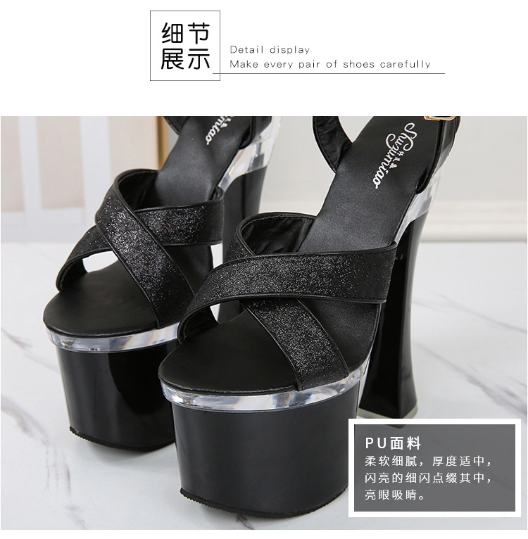Đôi dép nữ với phần đế cao mười bảy phân, đế dày vững chắc giúp tăng chiều cao một cách thoải mái. Phần thân dép được phủ lớp hạt lấp lánh tinh tế, tạo điểm nhấn nổi bật. Kiểu dáng mở mũi phù hợp cho những ngày hè, kết hợp cùng dây kéo mảnh m mang đến vẻ đẹp dịu dàng. Sản phẩm dễ dàng phối cùng nhiều trang phục khác nhau. Khi sử dụng, chỉ cần xỏ chân vào và điều chỉnh dây cho vừa vặn. | Tên sản phẩm: Giày Dép Lê Nữ Cao 17cm Gót Vuông Trong Suốt Hàng Mùa Hè - Giày Dép Nữ | Mã sản phẩm: B1031 - Giá: 900.000đ | Mã nhà sản xuất: JIENNG-G03Hình ảnh sản phẩm