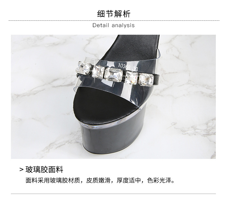 Đôi giày sandal nữ này có phần đế được làm hoàn toàn từ chất liệu trong suốt, tạo nên điểm nhấn độc đáo. Kiểu dáng theo phong cách trẻ trung, năng động với thiết kế gót rộng và cao 17cm, giúp tôn dáng một cách thoải mái. Đây là mẫu giày lý tưởng để phối cùng nhiều loại trang phục trong mùa hè. Bạn chỉ cần xỏ chân vào, điều chỉnh qu cho vừa vặn là có thể sử dụng ngay. | Tên sản phẩm: Giày Cao Gót Nữ Cao 17cm Gót Vuông Trong Suốt Hàng Mùa Hè Phong Cách Hàn Quốc - Giày Dép Nữ | Mã sản phẩm: B1043 - Giá: 920.000đ | Mã nhà sản xuất: JIENNG-G03Hình ảnh sản phẩm