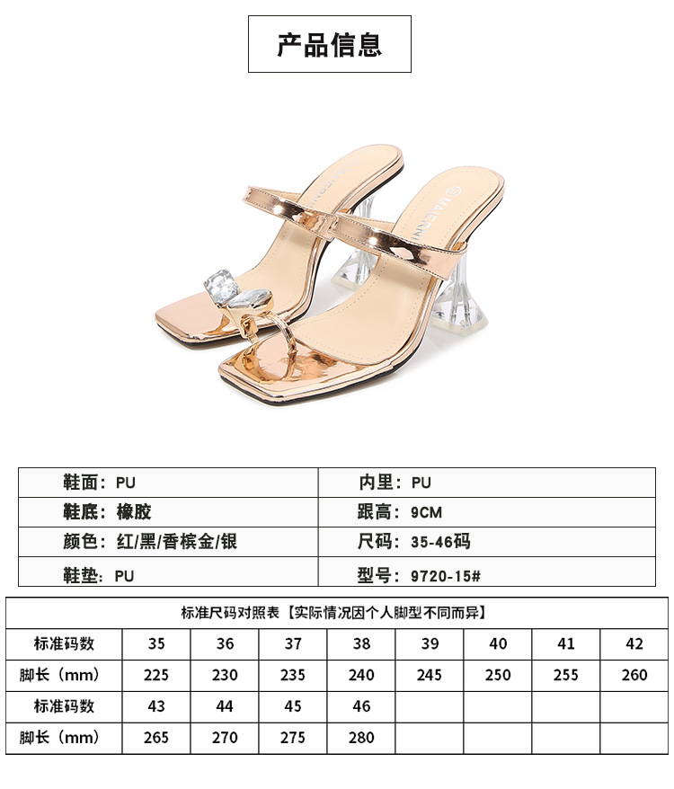 Đôi dép qu ngang dành cho nữ có phần đế cao mềm mại và trong suốt, tạo cảm giác nhẹ nhàng, thoải mái. Trên qu dép được điểm xuyến những viên đá lấp lánh tinh tế, giúp nổi bật hơn khi diện. Kiểu dáng hở mũi, để lộ các ngón chân một cách duyên dáng. Sản phẩm rất dễ sử dụng, chỉ cần xỏ chân vào và điều chỉnh qu cho vừa vặn là có thể tự tin bước đi. | Tên sản phẩm: Giày Dép Lê Nữ Big Size Ngoại Cỡ Gắn Đá Đế Xuồng Phong Cách Âu Mỹ - Giày Dép Nữ | Mã sản phẩm: B1629 - Giá: 630.000đ | Mã nhà sản xuất: MATYAL-G02Hình ảnh sản phẩm
