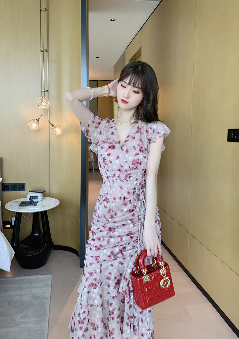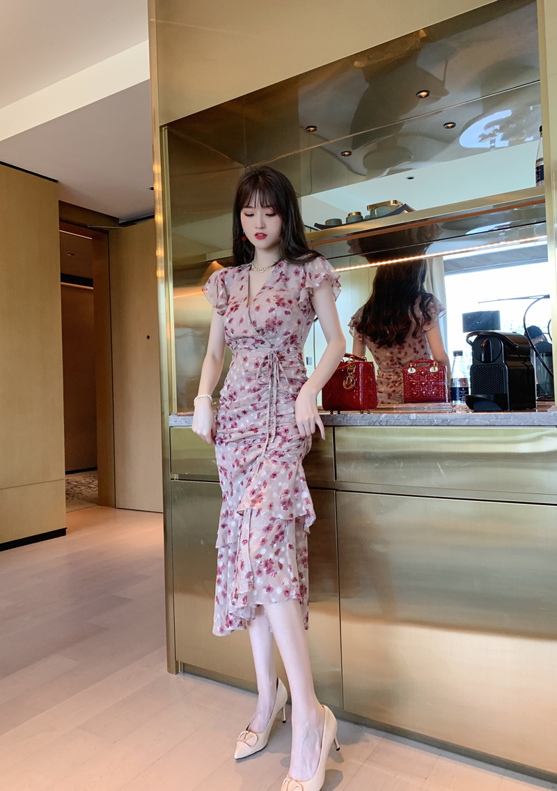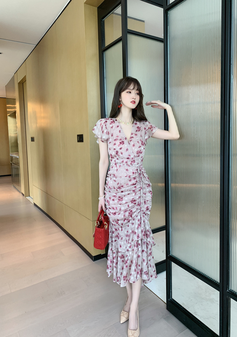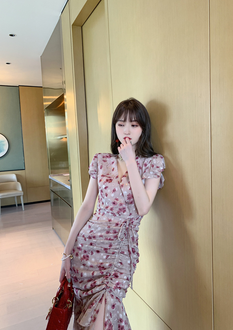 Chiếc đầm ôm dáng này có điểm nhấn ở phần cổ khoét sâu tạo nên nét gợi cảm dịu dàng. Tay áo được thiết kế xòe nhẹ, phối cùng các đường xếp ly mềm mại và xẻ tà chân váy, mang đến vẻ đẹp nữ tính và lãng mạn. Hoa văn in trên vải càng tôn thêm vẻ tươi tắn, trẻ trung. Sản phẩm phù hợp để mặc đi làm, dạo phố hay dự những buổi gặp mặt. | Tên sản phẩm: Váy Đầm Liền Thân Nữ Dáng Ôm Họa Tiết Hoa Cổ Chữ V Phong Cách Hàn Quốc - Thời Trang Nữ | Mã sản phẩm: B2240 - Giá: 1.260.000đ | Mã nhà sản xuất: CHDG-G04Hình ảnh sản phẩm