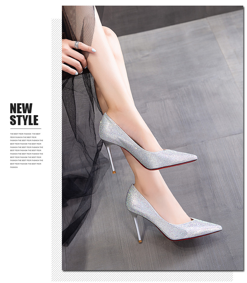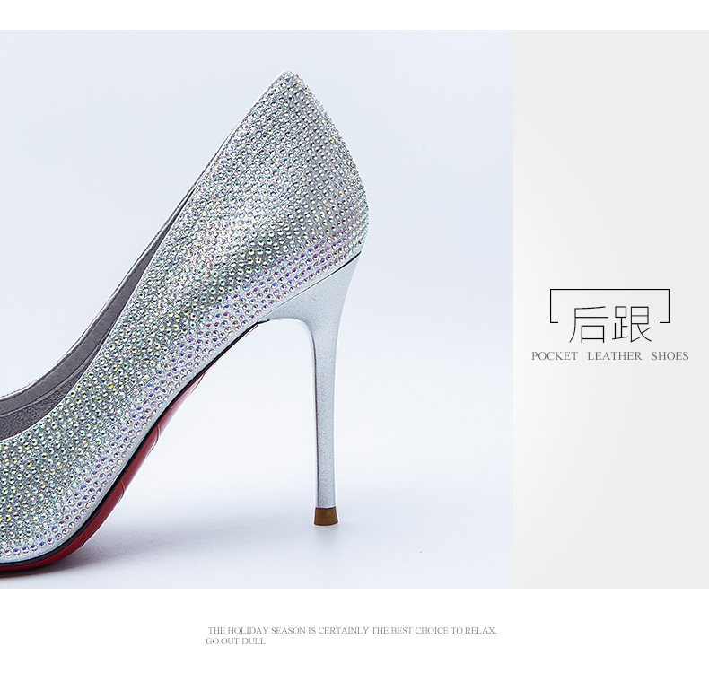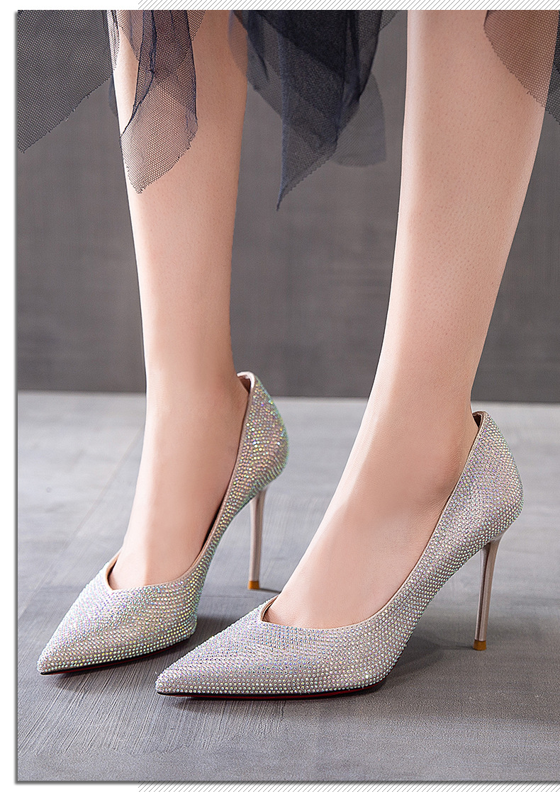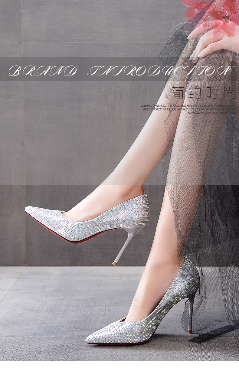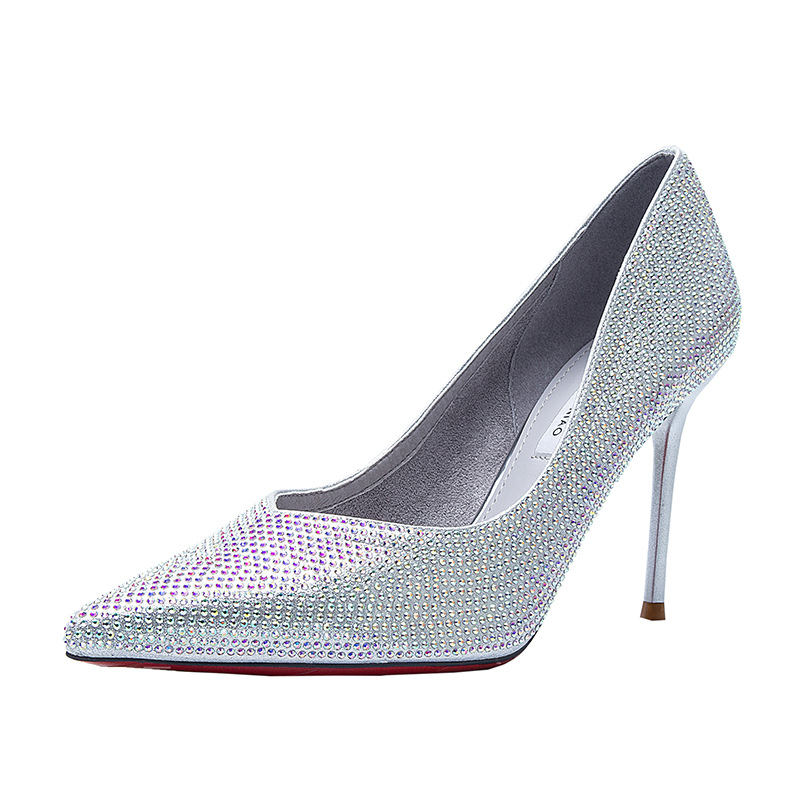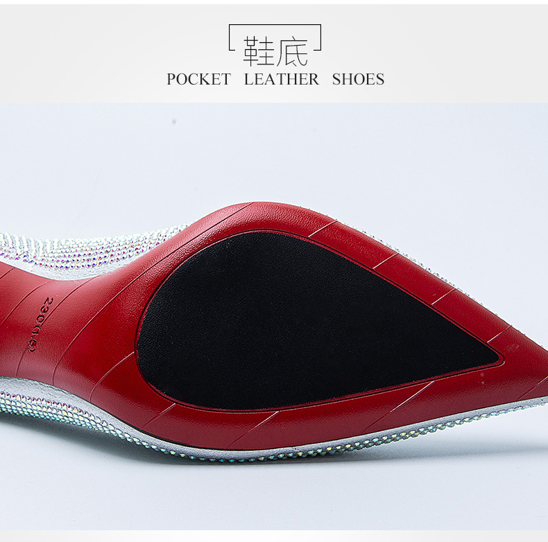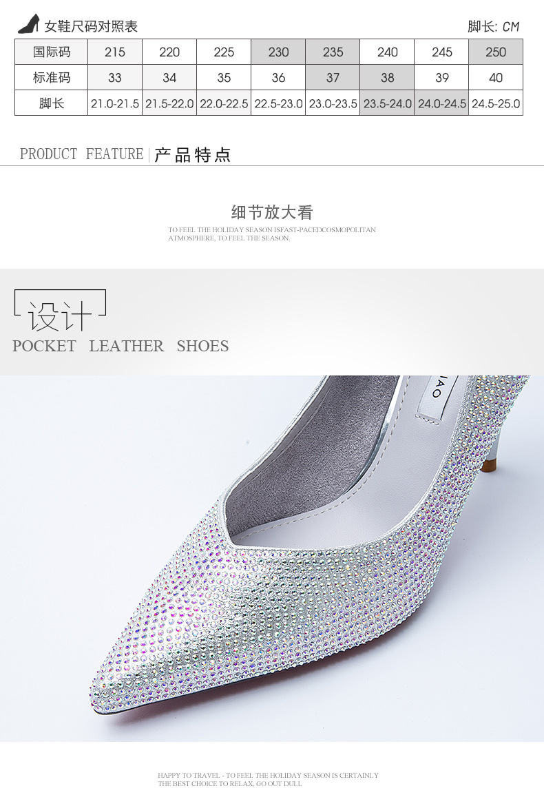 Đôi giày cao gót nữ này có phần mũi nhọn thanh lịch, điểm nhấn là những viên đá lấp lánh tinh xảo ở phần mu. Kiểu dáng cổ thấp ôm gọn bàn chân, kết hợp cùng gót trụ cao tạo nên vẻ đẹp hiện đại. Sản phẩm thích hợp để mang trong các buổi tiệc hoặc khi kết hợp cùng nhiều loại trang phục khác nhau. Khi sử dụng, bạn nên chọn size phù hợp và đi lại nhẹ nhàng để cảm thấy thoải mái nhất. | Tên sản phẩm: Giày Cao Gót Nữ Gắn Đá Mũi Nhọn Gót Nhọn Hàng Mùa Xuân Thu Đông - Giày Dép Nữ | Mã sản phẩm: B6762 - Giá: 1.090.000đ | Mã nhà sản xuất: ZHDIA-G03Hình ảnh sản phẩm