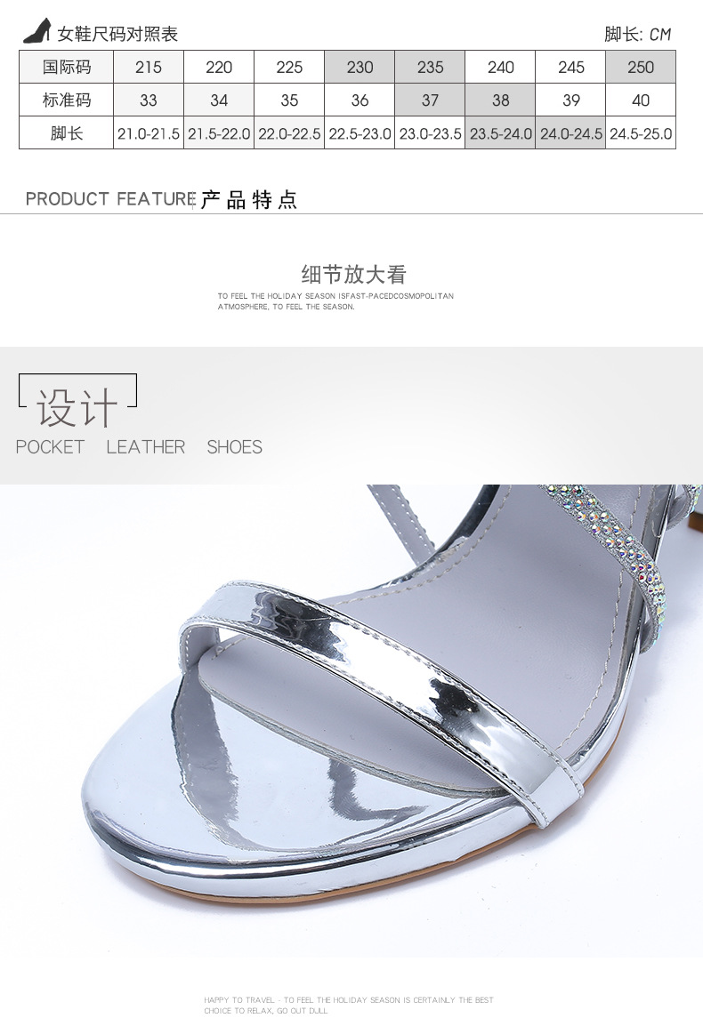 Đôi giày sandal nữ với thiết kế dây đeo chữ I ôm sát bàn chân, khoe những ngón chân duyên dáng. Phần mũi giày được điểm xuyết những viên đá lấp lánh như giọt sương, kết hợp cùng gót nhọn thanh thoát. Kiểu dáng mang phong cách La Mã cổ điển, tôn lên vẻ đẹp nữ tính và hiện đại. Sản phẩm có màu bạc dễ phối đồ. Cách dùng: tháo móc khoá và qu sau để mang vào chân một cách nhẹ nhàng. | Tên sản phẩm: Giày Cao Gót Nữ Gắn Đá Gót Nhọn Hàng Mùa Hè - Giày Dép Nữ | Mã sản phẩm: B6803 - Giá: 1.140.000đ | Mã nhà sản xuất: ZHDIA-G04Hình ảnh sản phẩm