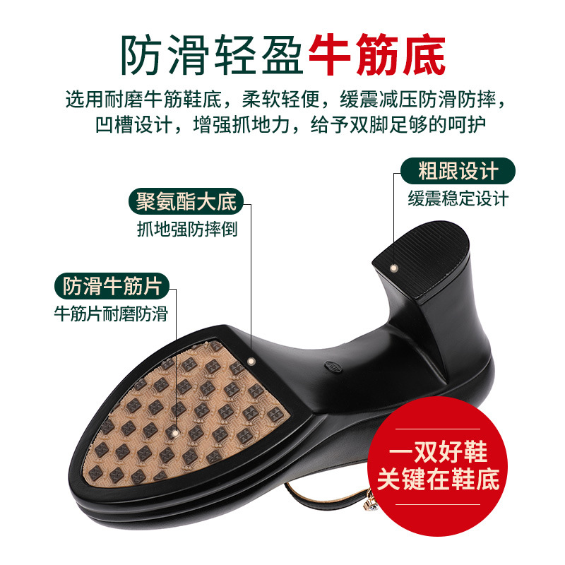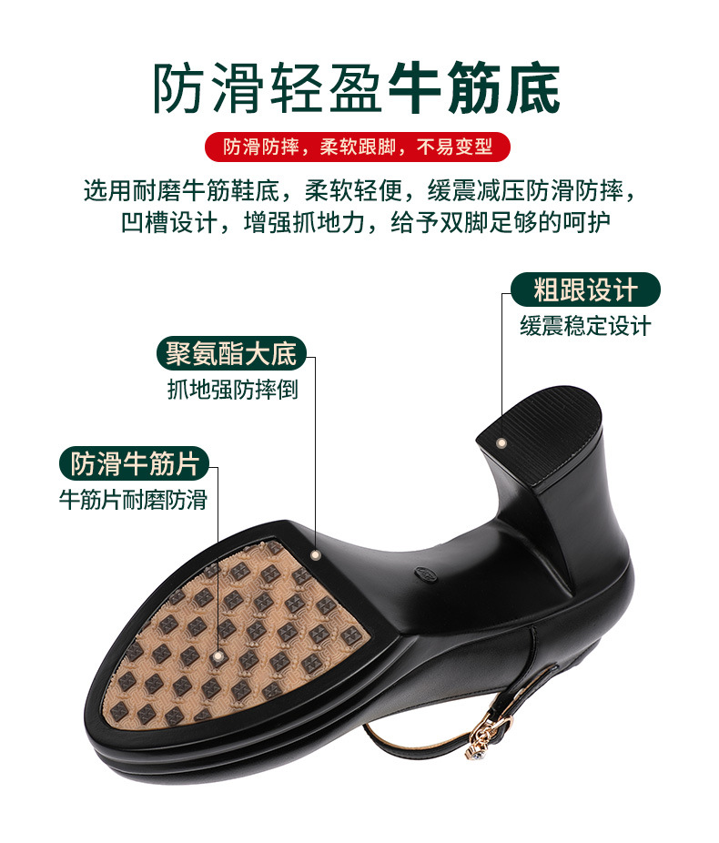 Đôi giày này có phần đế làm từ chất liệu dẻo d, kết hợp với lớp da mềm mại ôm sát chân. Kiểu dáng gót thấp vững chãi cùng phần đế dày giúp nâng đỡ bàn chân tốt, mang lại cảm giác dễ chịu khi di chuyển. Sản phẩm thích hợp để sử dụng trong các buổi biểu diễn thời trang hoặc khi mặc trang phục dân tộc. Bạn chỉ cần xỏ chân vào và cài qu gót là đã có thể sử dụng ngay. | Tên sản phẩm: Giày Cao Gót Nữ Chất Liệu Da Bò Gót Vuông - Giày Dép Nữ | Mã sản phẩm: B8266 - Giá: 1.180.000đ | Mã nhà sản xuất: WUDTI-G04Hình ảnh sản phẩm