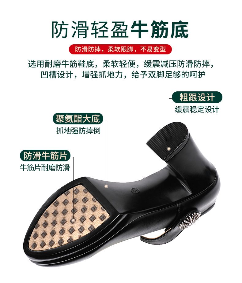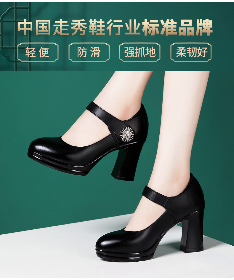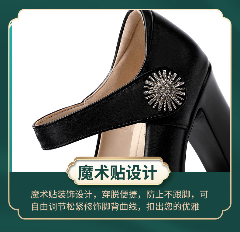 Đôi giày này có phần đế được làm từ chất liệu đặc biệt, giúp chống trơn trượt hiệu quả. Kiểu dáng gót thấp vững chãi, kết hợp cùng phần đế dày tạo cảm giác êm ái khi di chuyển. Chất da mềm mại ôm sát chân, phù hợp để sử dụng trong các buổi biểu diễn thời trang hoặc khi kết hợp với áo dài. Bạn chỉ cần xỏ chân vào và cài qu là đã có thể sử dụng ngay. | Tên sản phẩm: Giày Cao Gót Nữ Chất Liệu Da Bò Gót Vuông Ma Sát Chống Trượt - Giày Dép Nữ | Mã sản phẩm: B8301 - Giá: 1.180.000đ | Mã nhà sản xuất: WUDTI-G04Hình ảnh sản phẩm