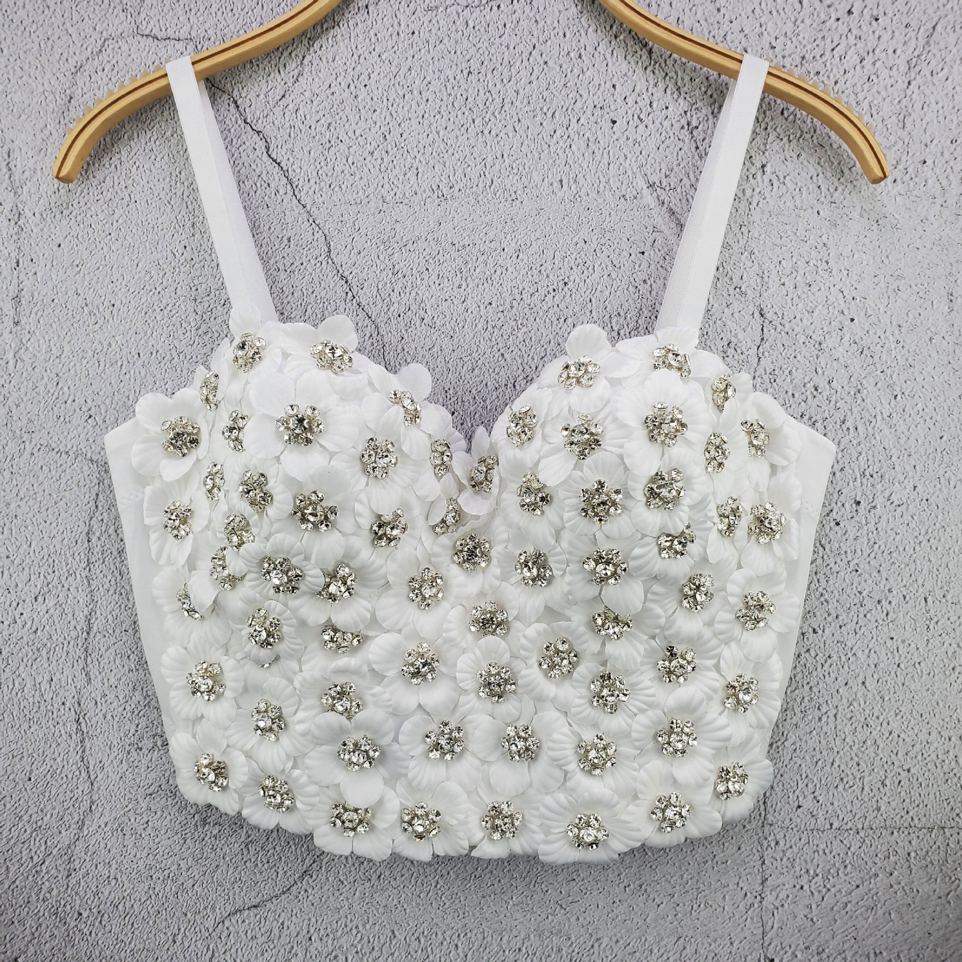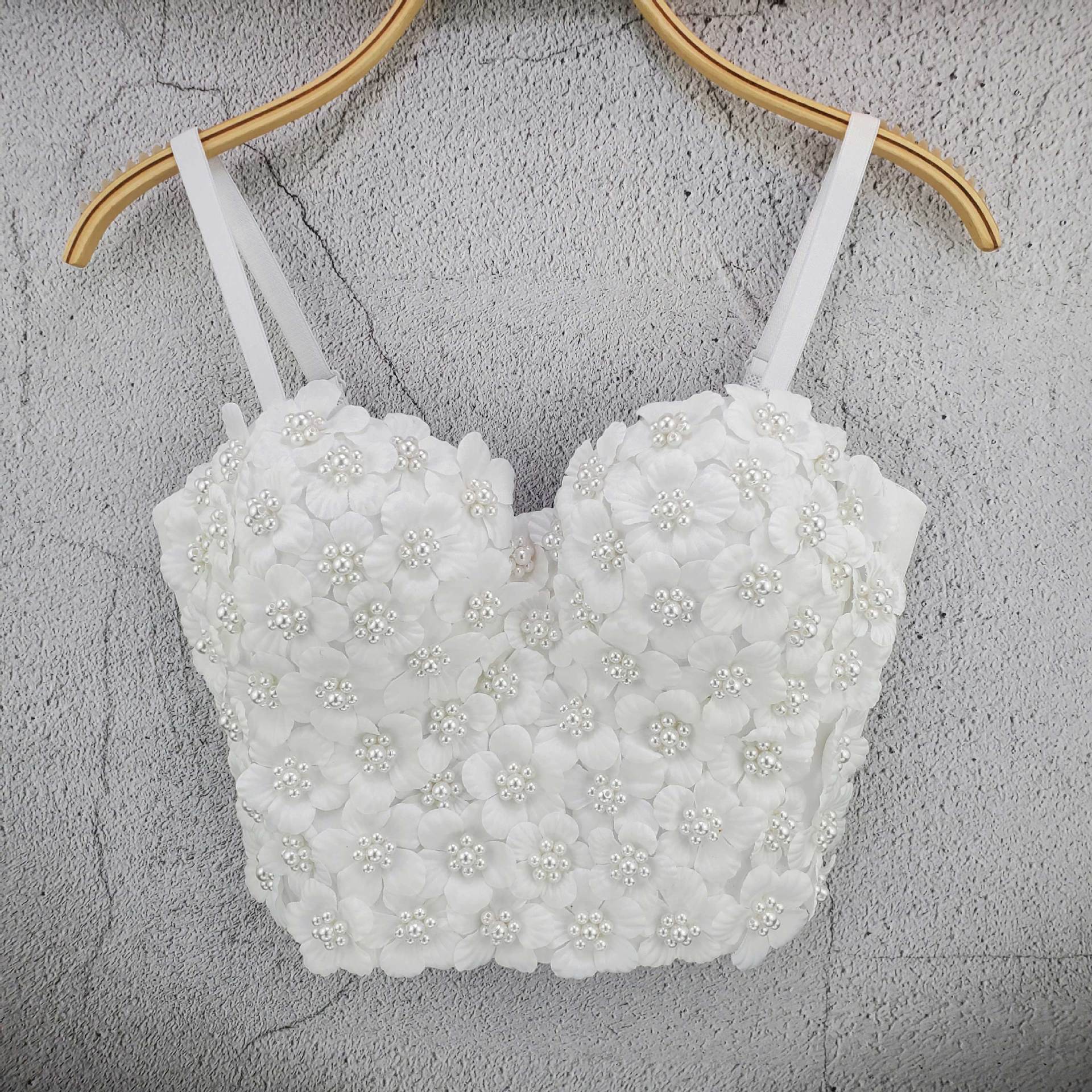 Chiếc áo yếm này được làm thủ công tinh xảo với những bông hoa nhỏ kết hợp hạt ngọc tr và pha lê lấp lánh. Kiểu dáng trẻ trung, phù hợp mặc ngoài mà không cần áo lót. Chất vải mềm mại, thoáng mát cho những ngày hè. Bạn có thể kết hợp cùng quần ống rộng hoặc chân váy để tạo phong cách riêng. Sản phẩm dễ dàng giặt tay và bảo quản nơi khô ráo. | Tên sản phẩm: Áo Hai Dây Nữ Họa Tiết Hoa Hai Dây Hở Vai - Thời Trang Nữ | Mã sản phẩm: B8724 - Giá: 710.000đ | Mã nhà sản xuất: RUOUAI-G02Hình ảnh sản phẩm
