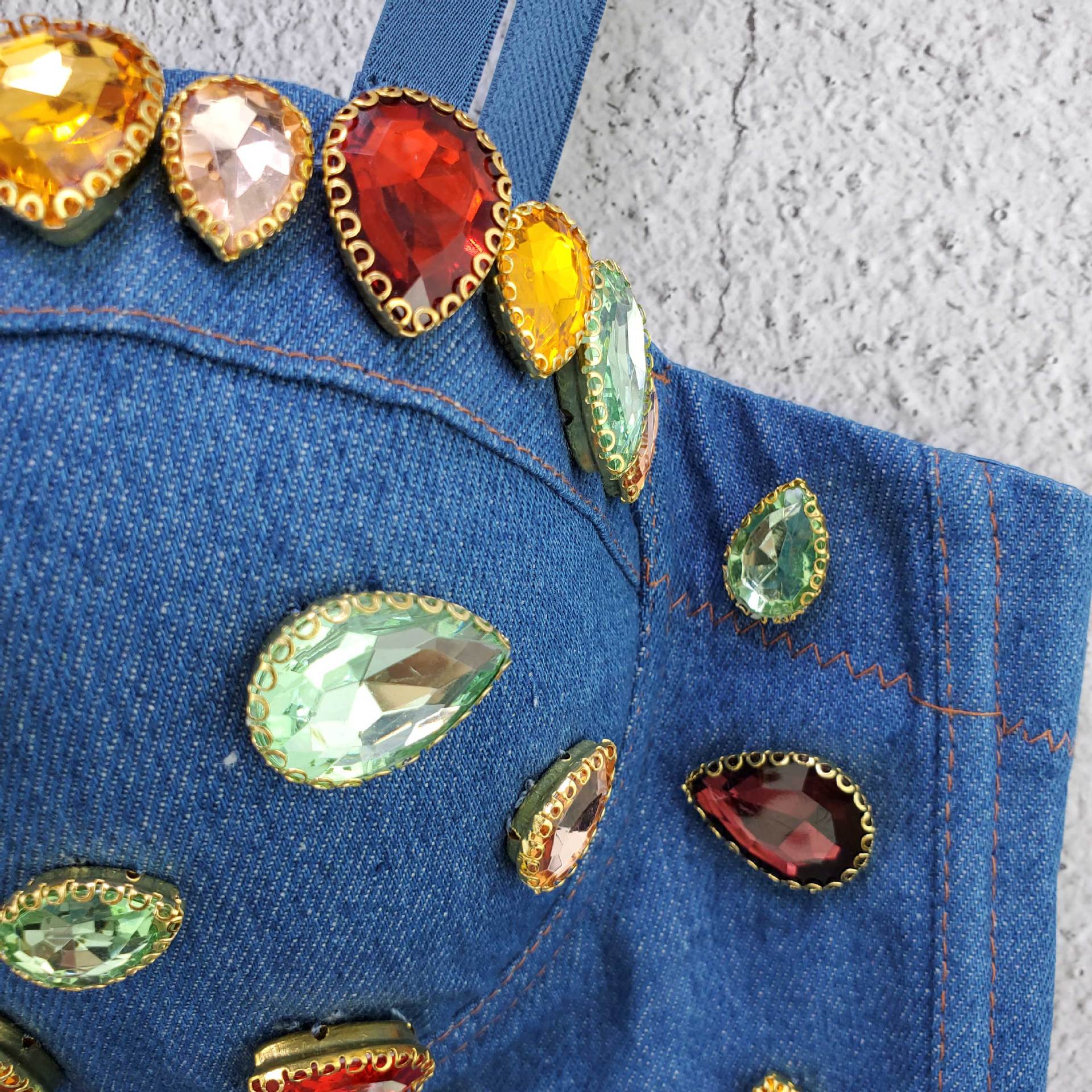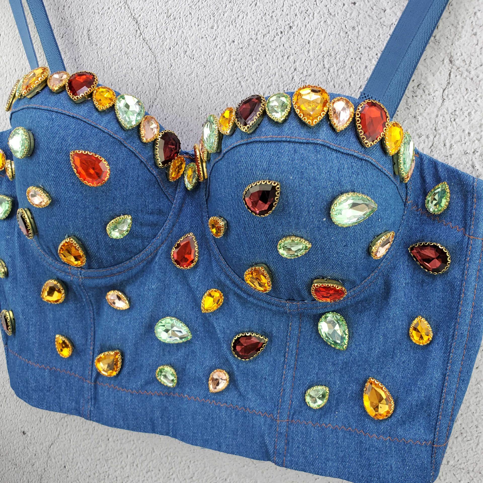 Áo thun dáng croptop kết hợp dây đeo cách điệu, điểm nhấn là những viên đá cắt mài lấp lánh được gắn tinh xảo. Chất liệu denim co giãn nhẹ tạo cảm giác thoải mái khi mặc. Kiểu dáng trẻ trung, phù hợp mix cùng quần jeans hoặc chân váy. Sản phẩm dễ dàng kết hợp với nhiều phụ kiện, mang đến vẻ năng động cho các buổi gặp gỡ hằng ngày. | Tên sản phẩm: Áo Hai Dây Nữ Chất Liệu Jean Bò Gắn Đá Hai Dây Hở Vai Hàng Mùa Xuân Thu Đông Phong Cách Âu Mỹ - Thời Trang Nữ | Mã sản phẩm: B8744 - Giá: 700.000đ | Mã nhà sản xuất: RUOUAI-G02Hình ảnh sản phẩm