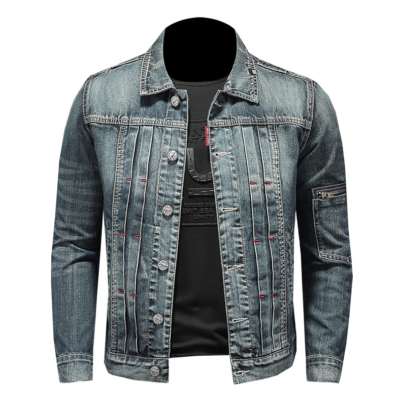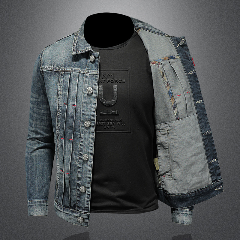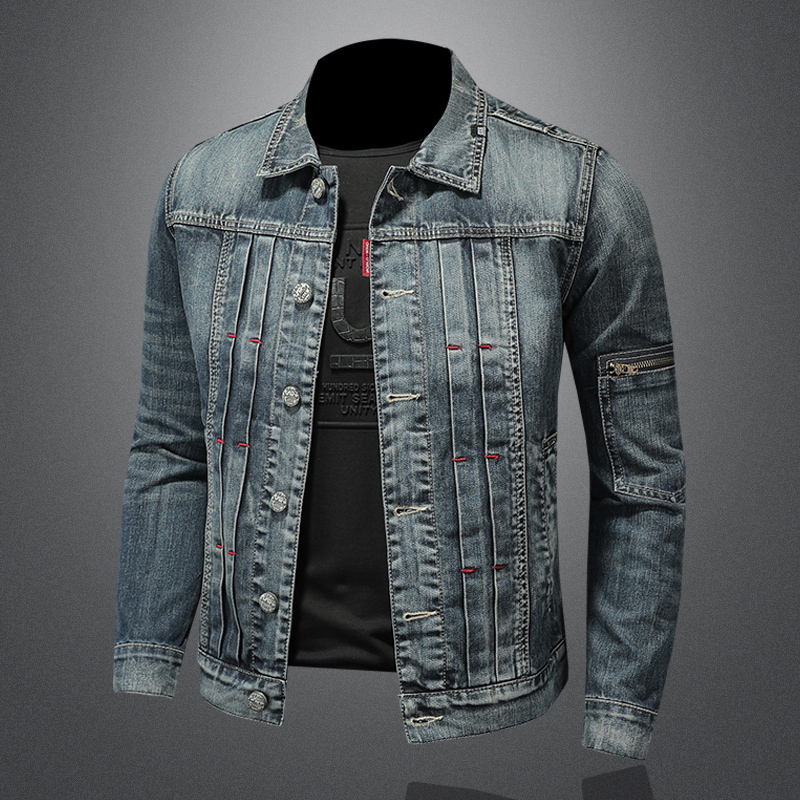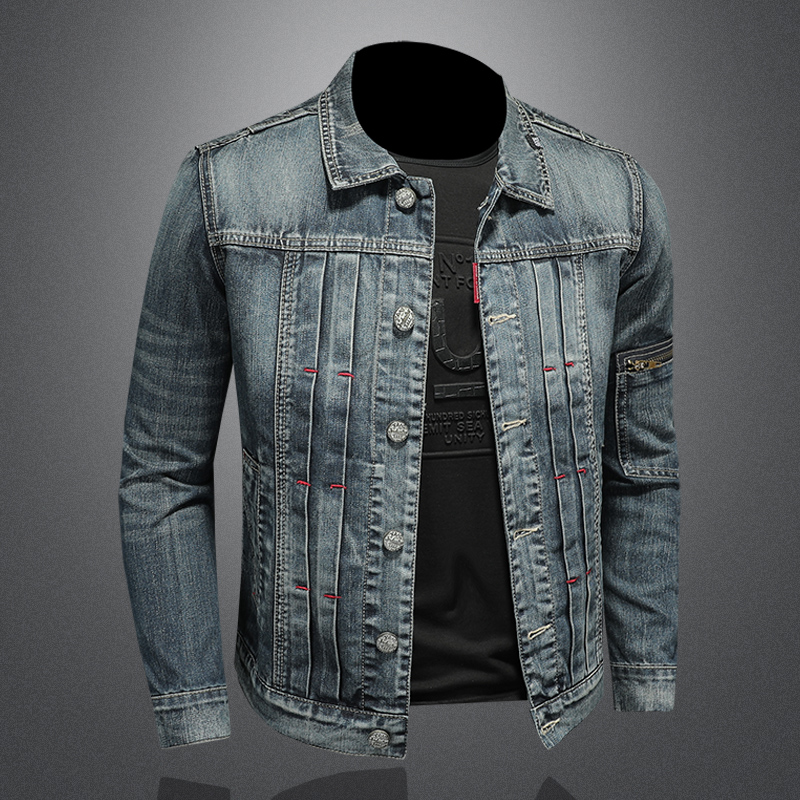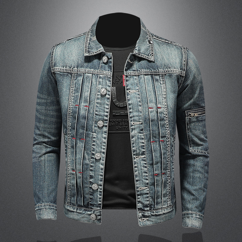 Áo khoác kiểu châu Âu với cổ bẻ và tay áo thiết kế nổi bật. Chất liệu vải bền chắc, phối khóa kéo và túi có khóa tiện lợi. Kiểu dáng phù hợp khi kết hợp với quần tây hoặc trang phục đơn giản hằng ngày. Mặc kèm áo thun bên trong để tạo vẻ tự nhiên, thoải mái. Dễ dàng phối đồ cho các dịp đi chơi, gặp gỡ bạn bè. | Tên sản phẩm: Áo Khoác Nam Chất Liệu Jean Bò Kín Cổ Phục Cổ Cổ Điển - Thời Trang Nam | Mã sản phẩm: C8432 - Giá: 1.830.000đ | Mã nhà sản xuất: QITYGF-G05Hình ảnh sản phẩm