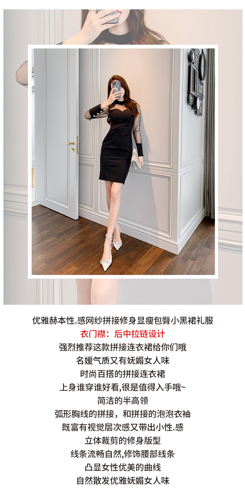 Đầm body dáng ôm tôn dáng, thiết kế cổ yếm cách điệu thanh lịch. Chất vải mềm mại kết hợp phần trang trí lưới tinh tế tạo điểm nhấn thu hút. Màu đen dễ dàng phối cùng nhiều loại phụ kiện khác nhau. Sản phẩm phù hợp cho những buổi gặp mặt bạn bè hay dự tiệc nhẹ. Có thể giặt máy và ủi ở nhiệt độ vừa phải để giữ form áo bền đẹp. | Tên sản phẩm: Váy Đầm Liền Thân Nữ Dáng Ôm Lưới Mỏng Hàng Mùa Xuân Thu Đông Phong Cách Hàn Quốc - Thời Trang Nữ | Mã sản phẩm: D0238 - Giá: 1.030.000đ | Mã nhà sản xuất: CHDG-G03Hình ảnh sản phẩm