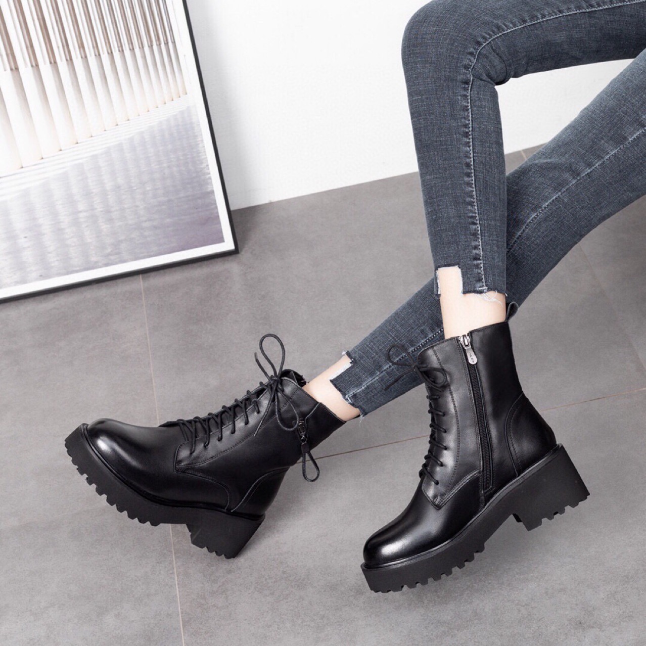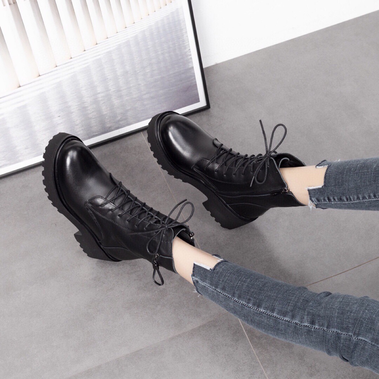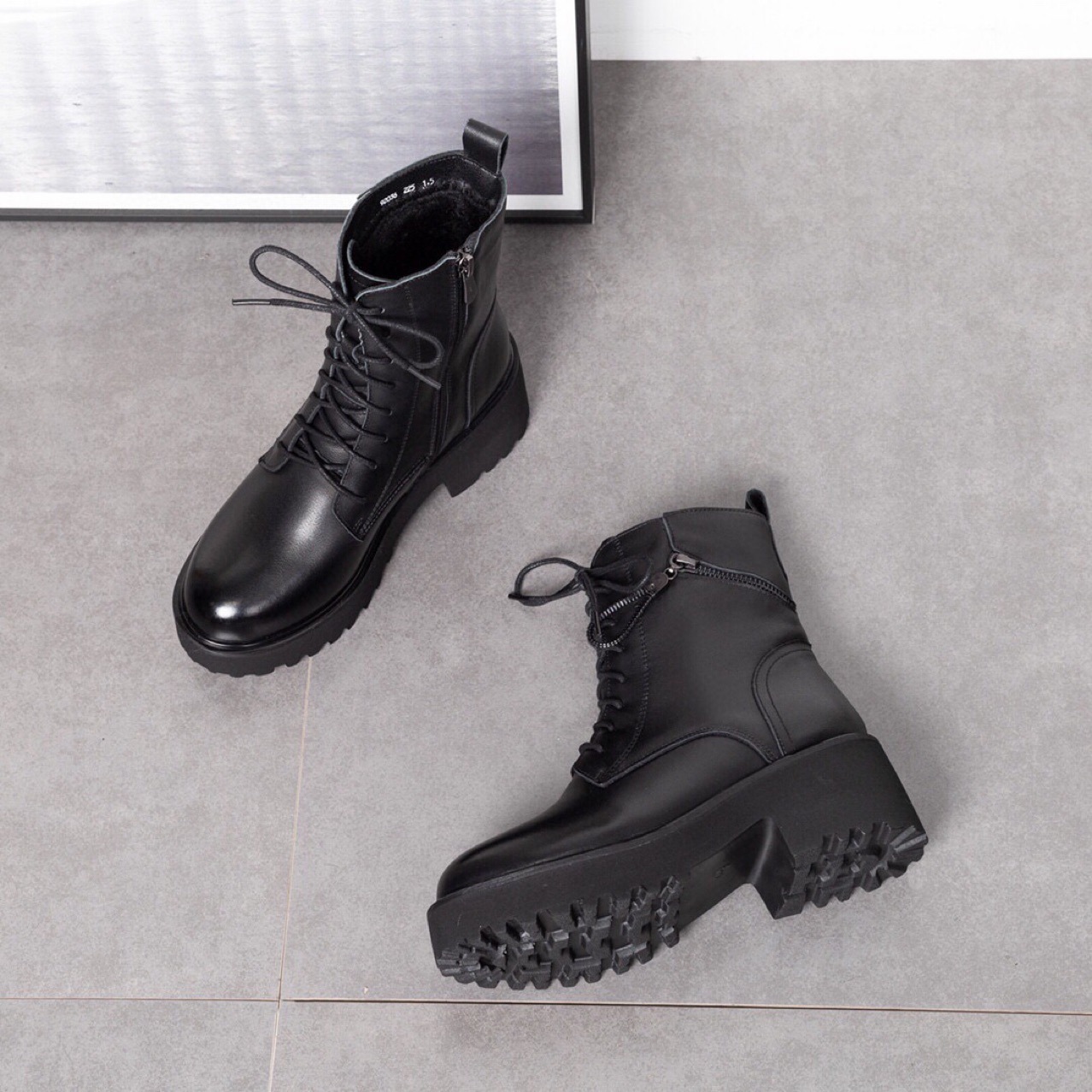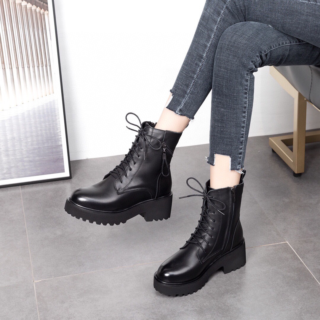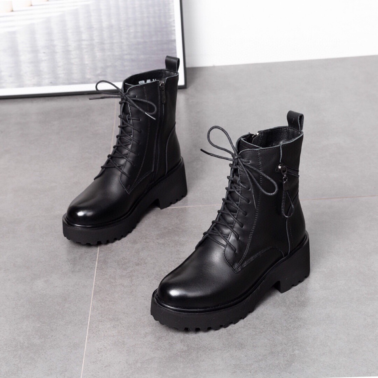 Đôi bốt cổ thấp này mang phong cách Anh cổ điển, phù hợp cho mùa thu đông. Sản phẩm được làm từ chất liệu da thật, bền đẹp theo thời gian. Đế bốt dày và chắc chắn với thiết kế gót trung bình, tạo cảm giác thoải mái khi di chuyển cả ngày. Kiểu dáng cứng cáp, dễ dàng phối hợp với nhiều trang phục như quần jean, váy hay quần tây. Bạn có thể sử dụng như một điểm nhấn thời trang hàng ngày. | Tên sản phẩm: Boot Cổ Thấp Nữ Chất Liệu Da Bò Gót Vuông Đế Cao Hàng Mùa Xuân Thu Đông - Giày Dép Nữ | Mã sản phẩm: D3705 - Giá: 1.390.000đ | Mã nhà sản xuất: TOREHU-G04Hình ảnh sản phẩm