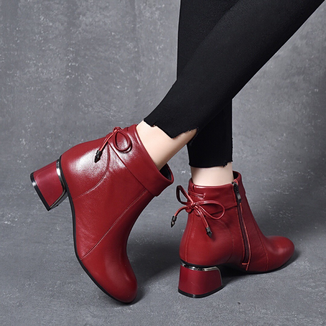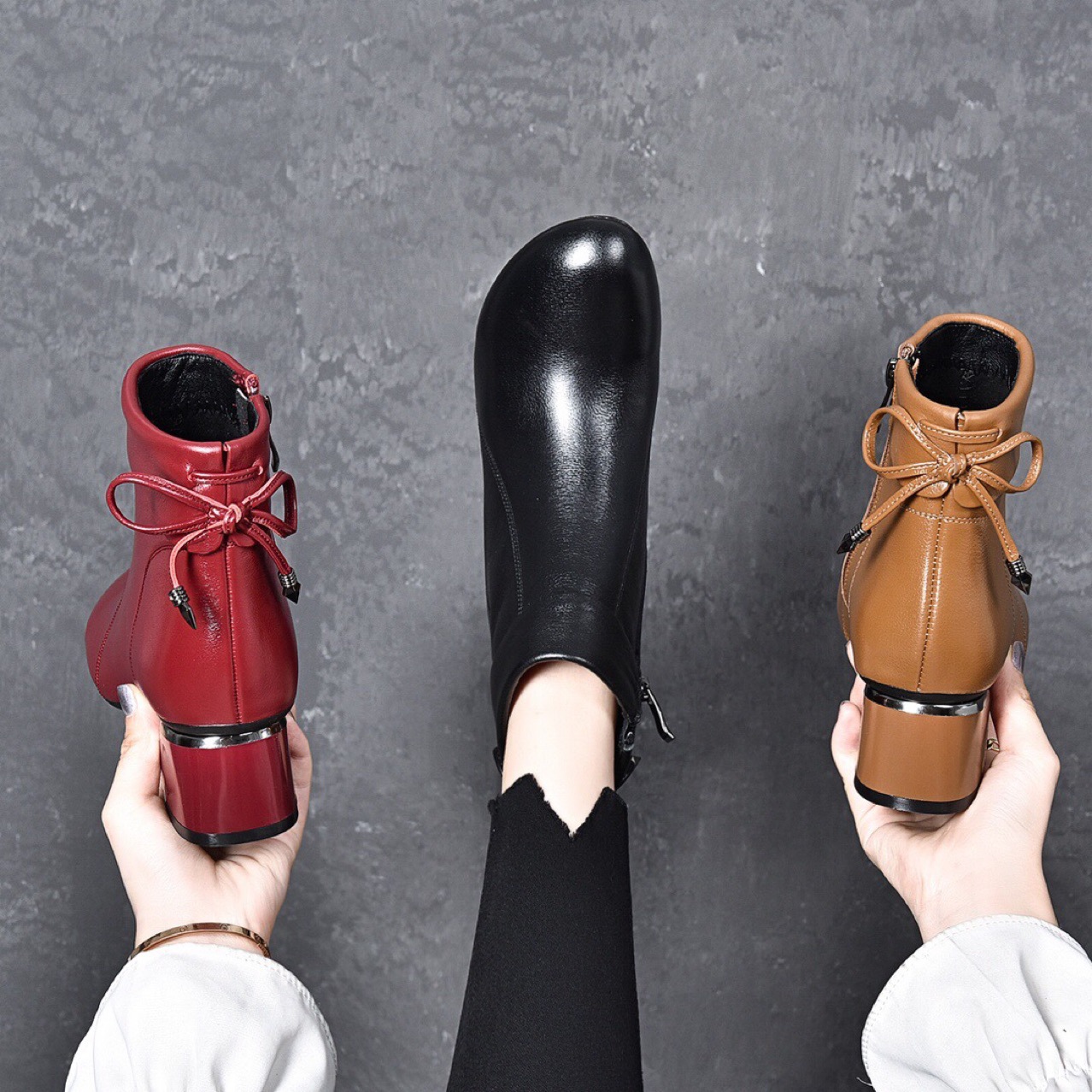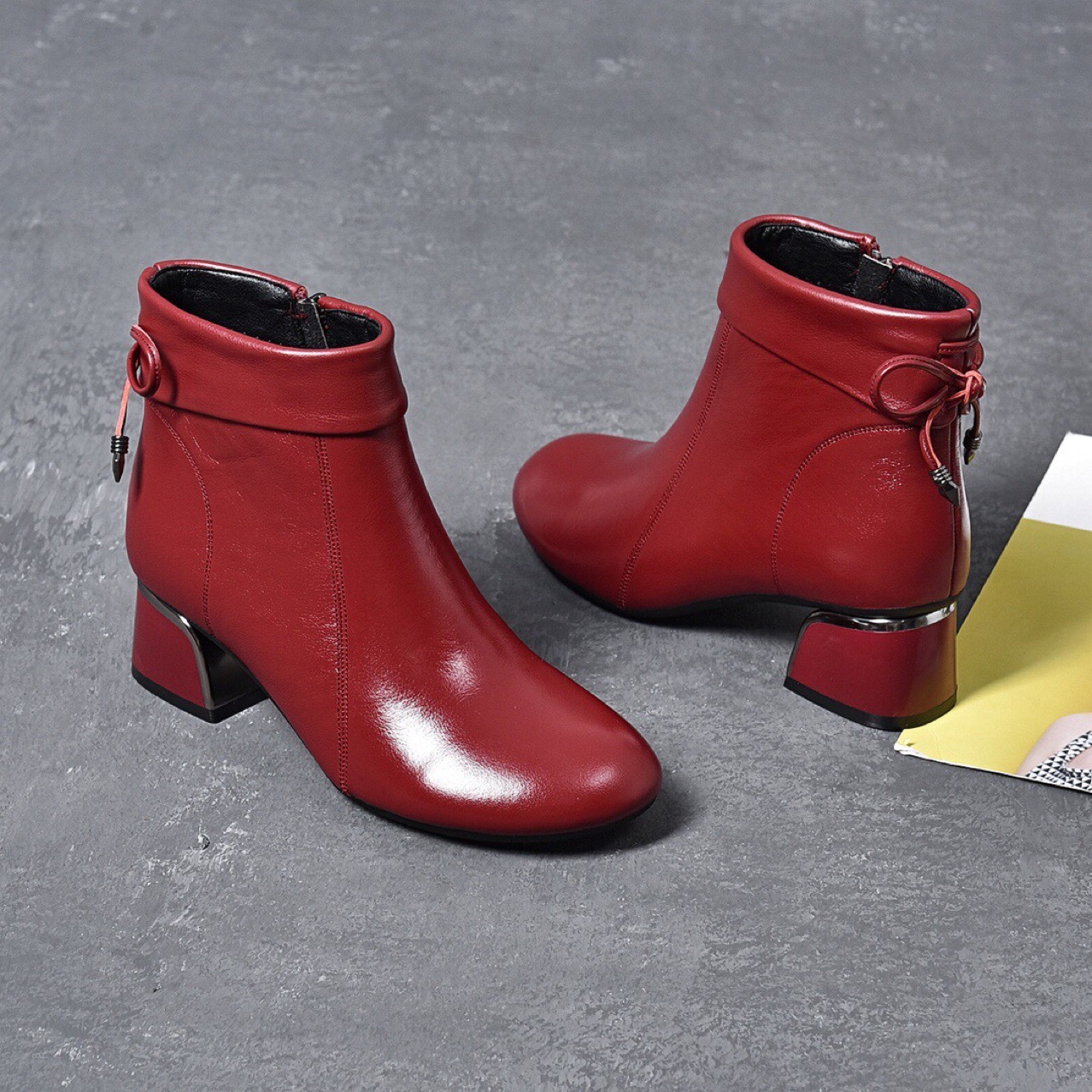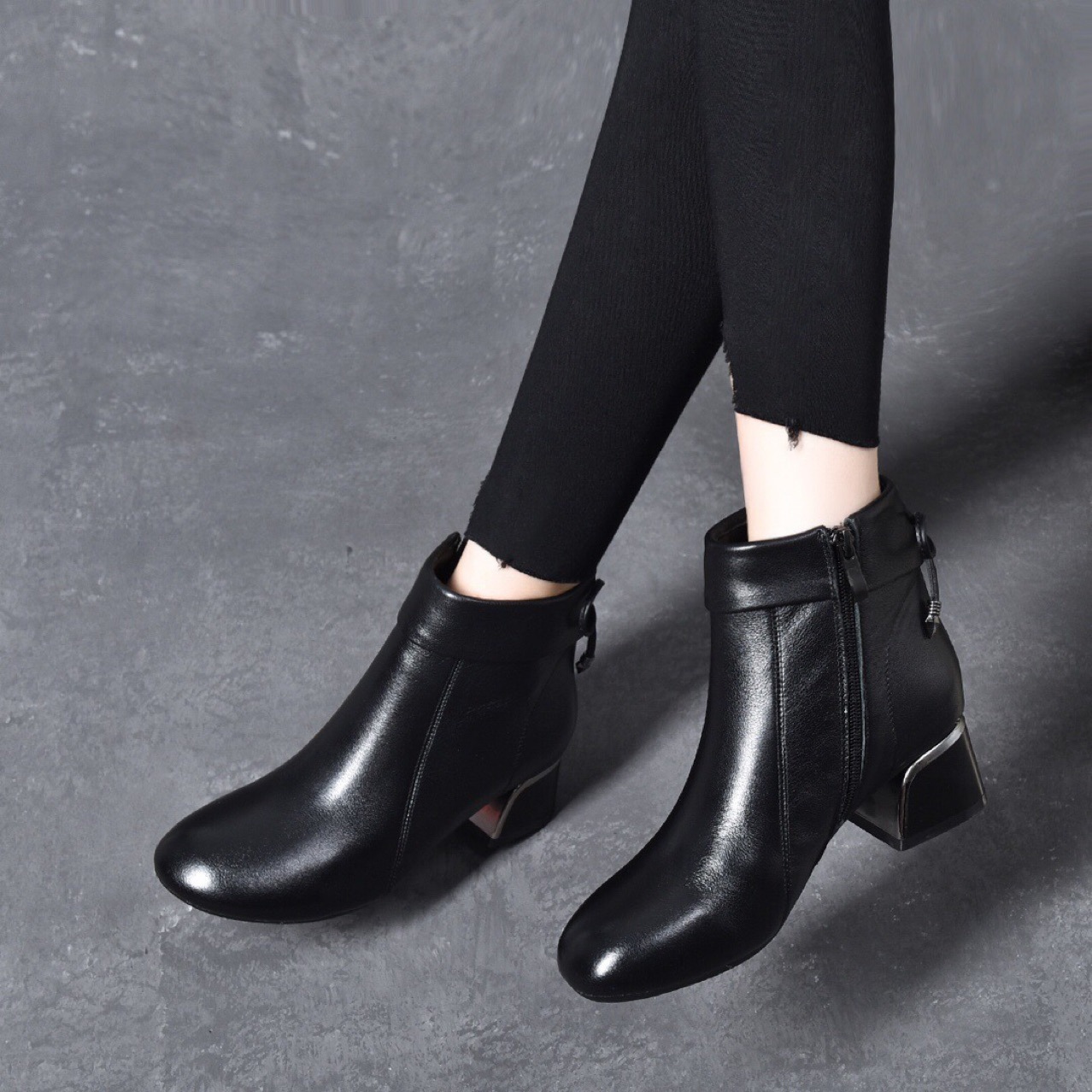 Đôi bốt cổ thấp này được làm từ chất liệu da mềm mại, mang lại cảm giác dễ chịu cho đôi chân. Kiểu dáng bốt thể thao kết hợp gót vuông vừa phải, tôn dáng nhưng vẫn đảm bảo sự thoải mái khi di chuyển. Đế giày mềm dẻo giúp các bước chân thêm nhẹ nhàng. Sản phẩm dễ dàng phối hợp với nhiều loại trang phục khác nhau như quần jeans hay váy, phù hợp cho những ngày thu mát mẻ. Bạn có thể sử dụng hàng ngày để đi làm, đi chơi hay dạo phố. | Tên sản phẩm: Boot Cổ Thấp Nữ Chất Liệu Da Bò Gót Vuông Hàng Mùa Xuân Thu Đông - Giày Dép Nữ | Mã sản phẩm: D3712 - Giá: 1.390.000đ | Mã nhà sản xuất: TOREHU-G04Hình ảnh sản phẩm