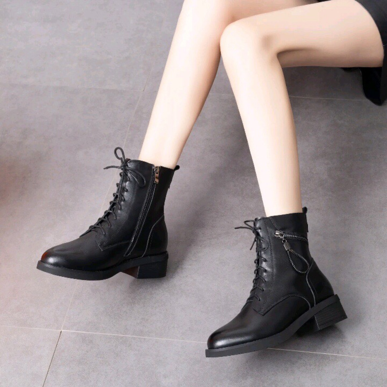 Đôi bốt cổ thấp dành cho nữ, được làm từ chất liệu da thật, mang phong cách Anh cổ điển. Mẫu giày này có phần đế dày vừa phải và độ cao gót hợp lý, giúp tôn dáng người mặc một cách tinh tế. Kiểu dáng phù hợp để đi trong những ngày thu đông. Bạn có thể dễ dàng phối cùng quần jeans, váy hay quần tây để tạo nên những phong cách khác nhau. Sản phẩm thiết kế dễ mang, ôm chân nhẹ nhàng. | Tên sản phẩm: Giày Boot Cổ Thấp Nữ Chất Liệu Da Bò Đế Cao Hàng Mùa Xuân Thu Đông - Giày Dép Nữ | Mã sản phẩm: D3724 - Giá: 1.520.000đ | Mã nhà sản xuất: TOREHU-G04Hình ảnh sản phẩm