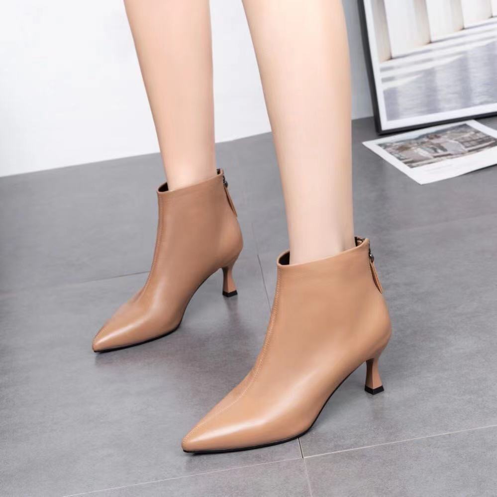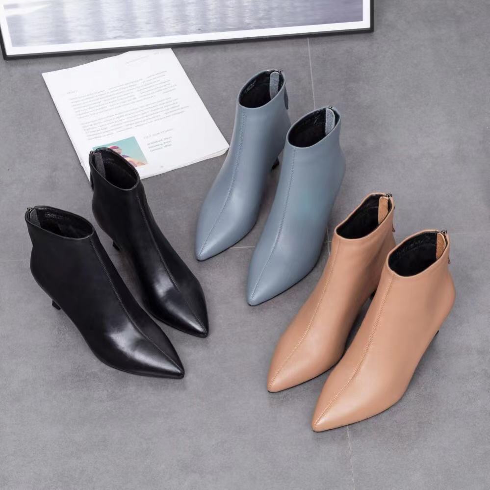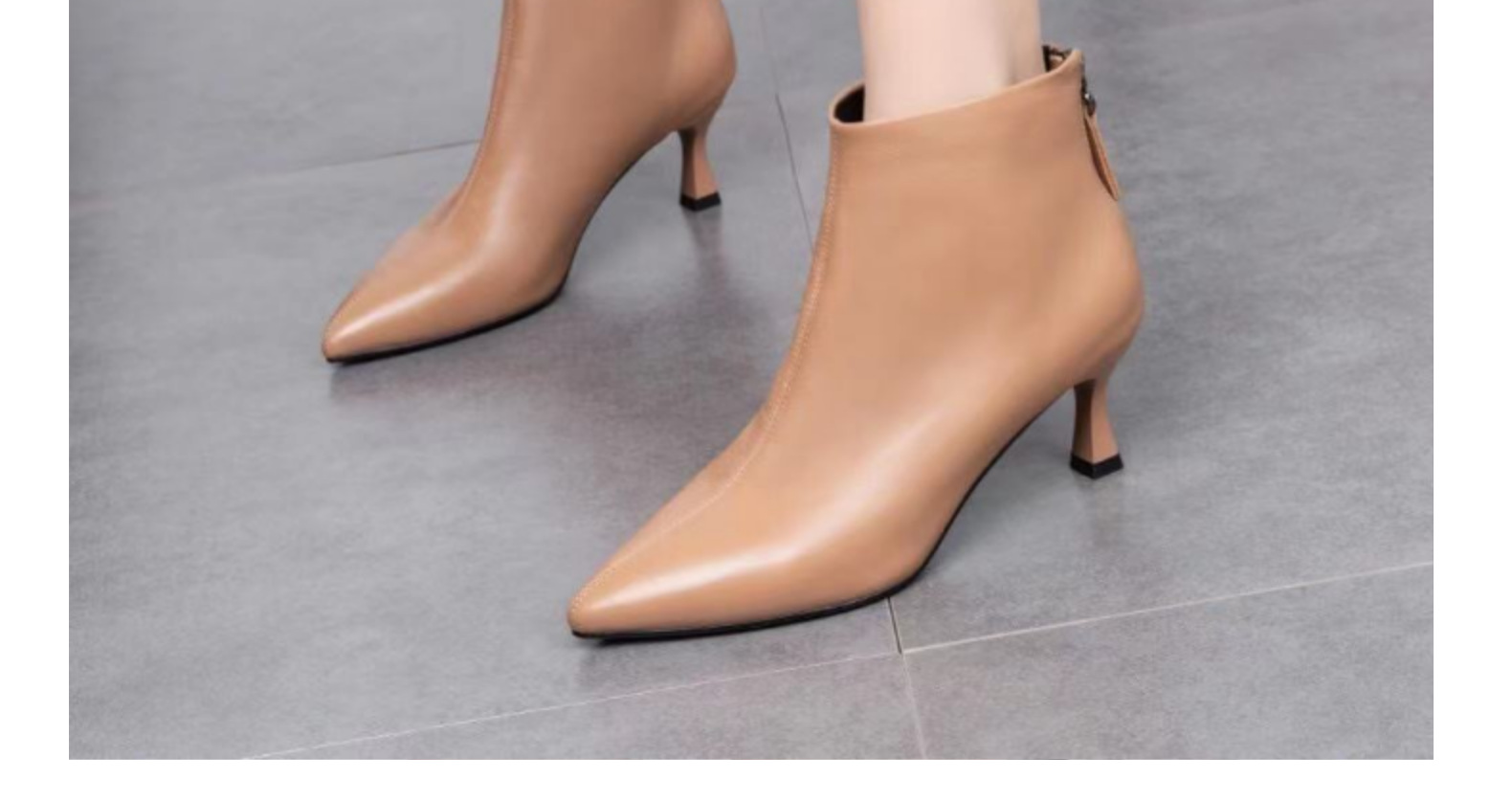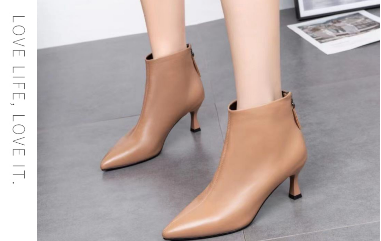 Đôi bốt cổ thấp này có mũi nhọn và gót nhọn thanh thoát, rất phù hợp cho mùa thu đông. Sản phẩm được làm từ chất liệu da mềm mại, mang lại cảm giác dễ chịu khi mang. Kiểu dáng ôm sát cổ chân một cách duyên dáng, dễ dàng kết hợp với nhiều loại trang phục khác nhau như quần dài hoặc váy. Bạn có thể sử dụng như một điểm nhấn thời trang hàng ngày. | Tên sản phẩm: Giày Boot Cổ Thấp Nữ Chất Liệu Da Bò Mũi Nhọn Gót Nhọn Hàng Mùa Xuân Thu Đông - Giày Dép Nữ | Mã sản phẩm: D3743 - Giá: 1.340.000đ | Mã nhà sản xuất: TOREHU-G04Hình ảnh sản phẩm
