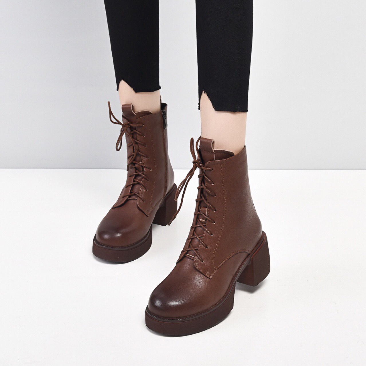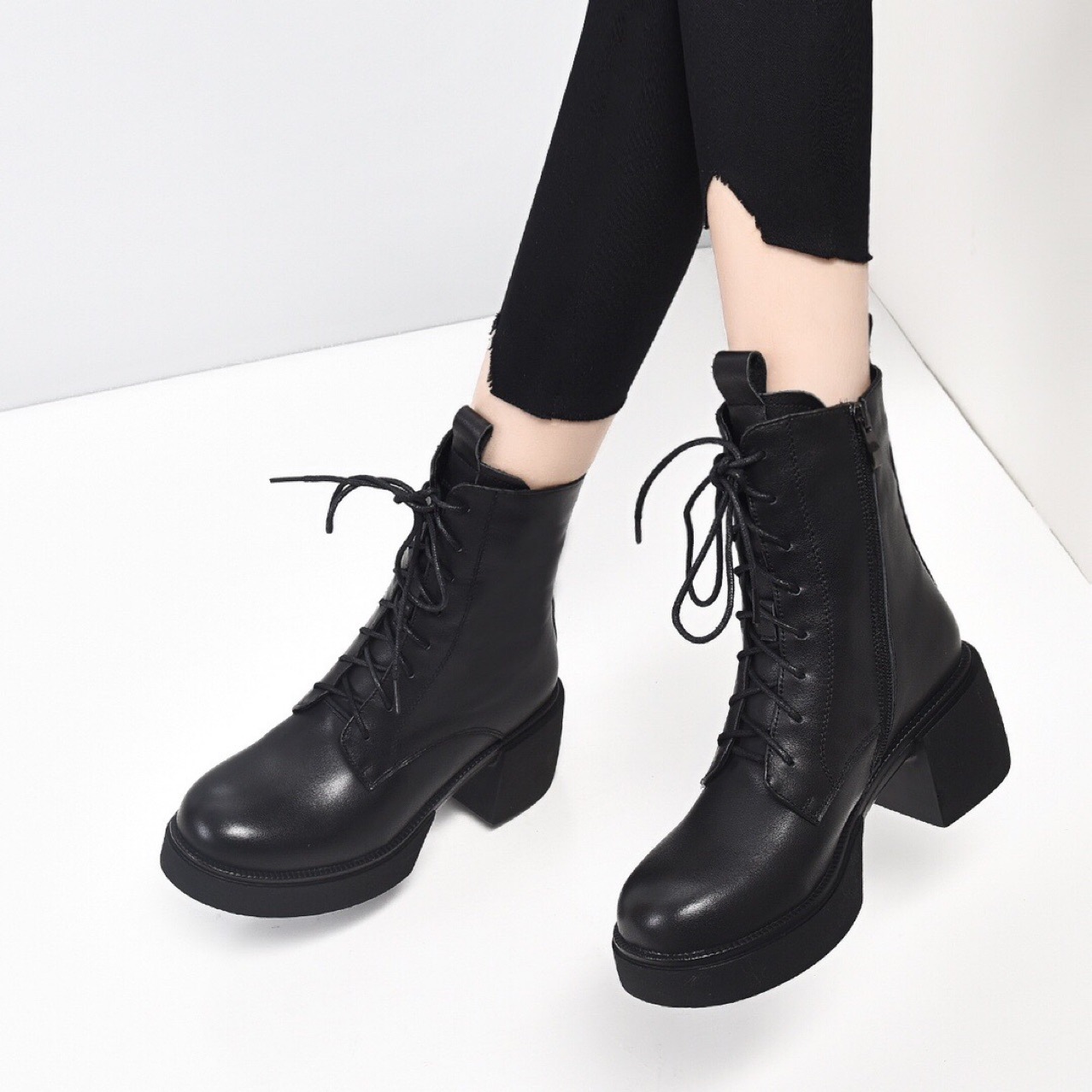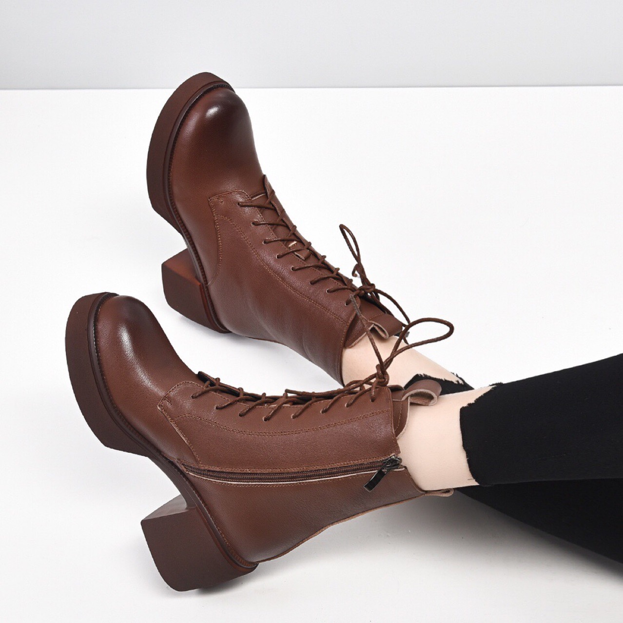 Đôi bốt cổ thấp này có phần đế lì chắc chắn cùng bệ đỡ chống nước, giúp bạn thoải mái và vững chãi khi di chuyển. Kiểu dáng mang phong cách cổ điển, với mũi giày tròn và dây buộc điều chỉnh linh hoạt. Sản phẩm được làm từ chất liệu da thật, mềm mại và bền đẹp. Bạn có thể dễ dàng phối cùng nhiều trang phục khác nhau để tạo điểm nhấn nổi bật. | Tên sản phẩm: Boot Cổ Thấp Nữ Chất Liệu Da Bò Mũi Tròn Gót Vuông Đế Cao Hàng Mùa Xuân Thu Đông - Giày Dép Nữ | Mã sản phẩm: D3756 - Giá: 1.430.000đ | Mã nhà sản xuất: TOREHU-G04Hình ảnh sản phẩm