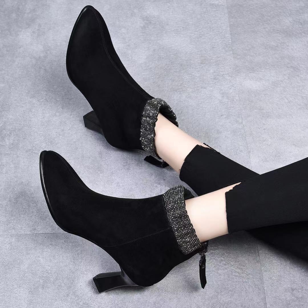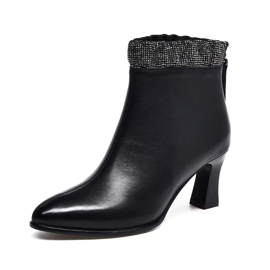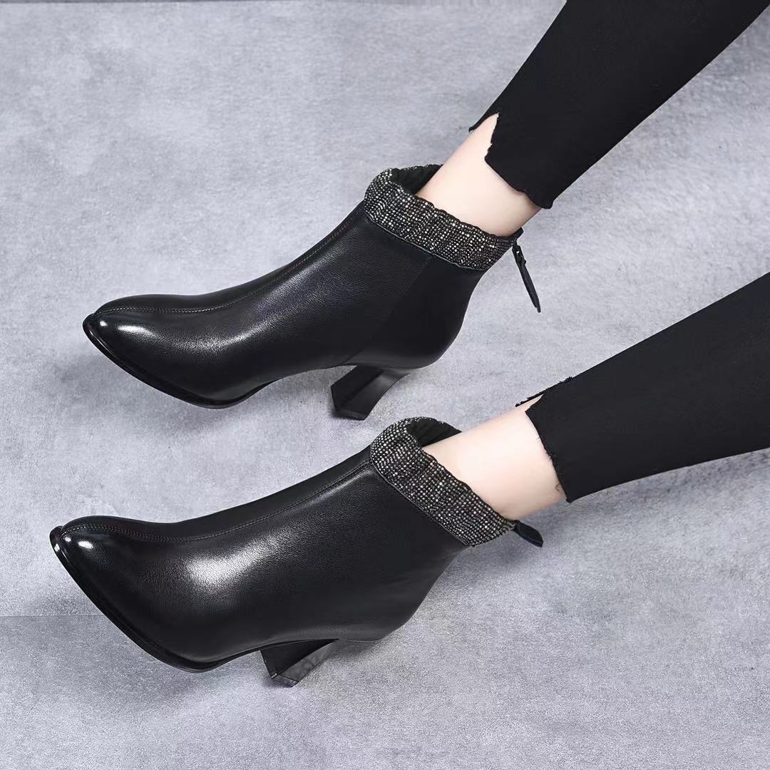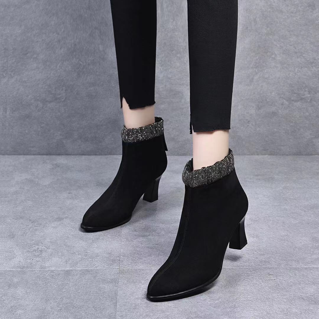 Đôi bốt cổ thấp này có phần mũi nhọn và gót thanhai mảnh, tạo dáng thanh lịch. Kiểu dáng bốt thể thao cổ điển với đường kéo hai bên giúp bạn mang vào và tháo ra dễ dàng. Sản phẩm được làm từ chất liệu da bò mềm mại, cho cảm giác thoải mái khi sử dụng. Bạn có thể phối cùng quần jeans, váy hay quần tây để tạo điểm nhấn nổi bật cho trang phục hằng ngày. | Tên sản phẩm: Boot Cổ Thấp Nữ Chất Liệu Da Bò Mũi Nhọn Gót Nhọn Hàng Mùa Xuân Thu Đông Phong Cách Âu Mỹ - Giày Dép Nữ | Mã sản phẩm: D3775 - Giá: 1.390.000đ | Mã nhà sản xuất: TOREHU-G04Hình ảnh sản phẩm
